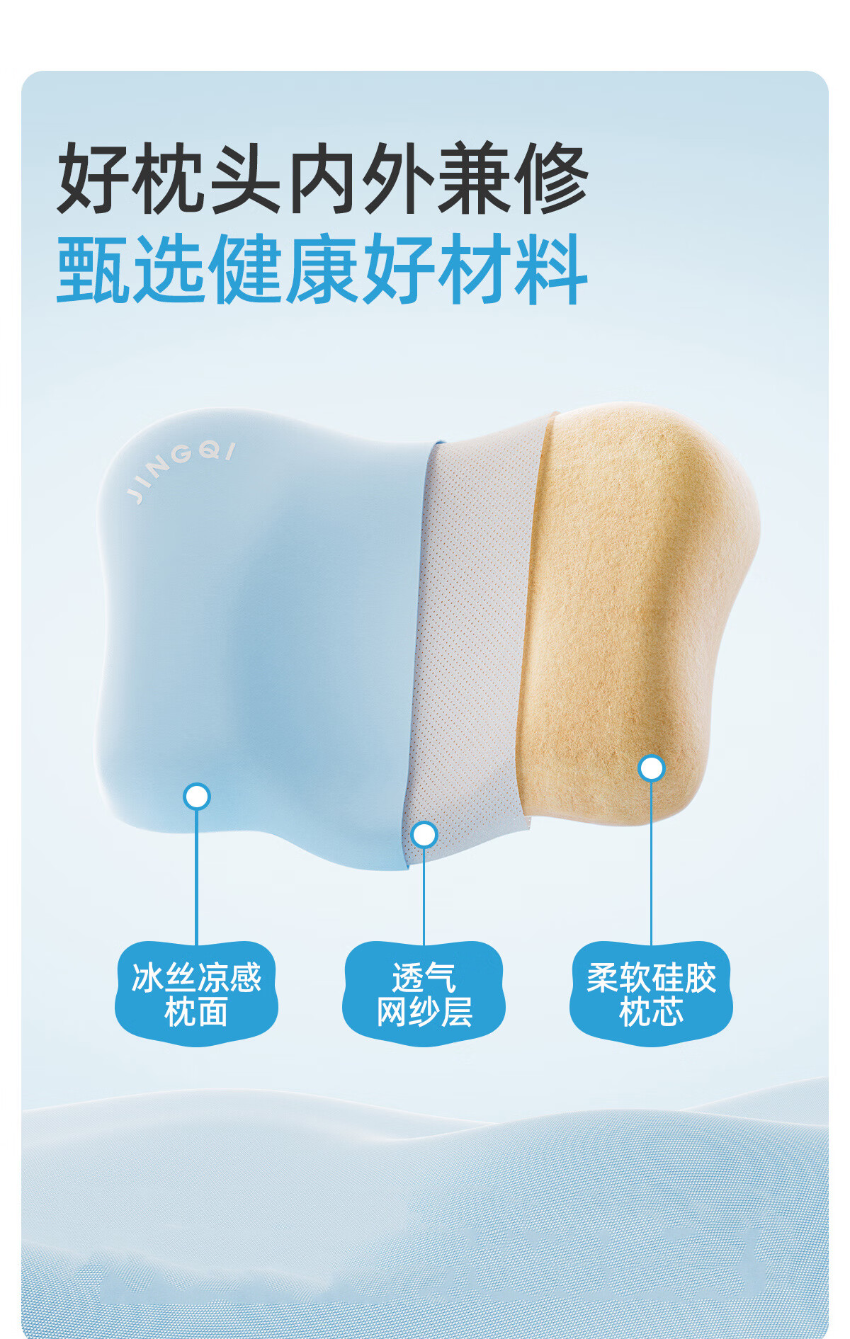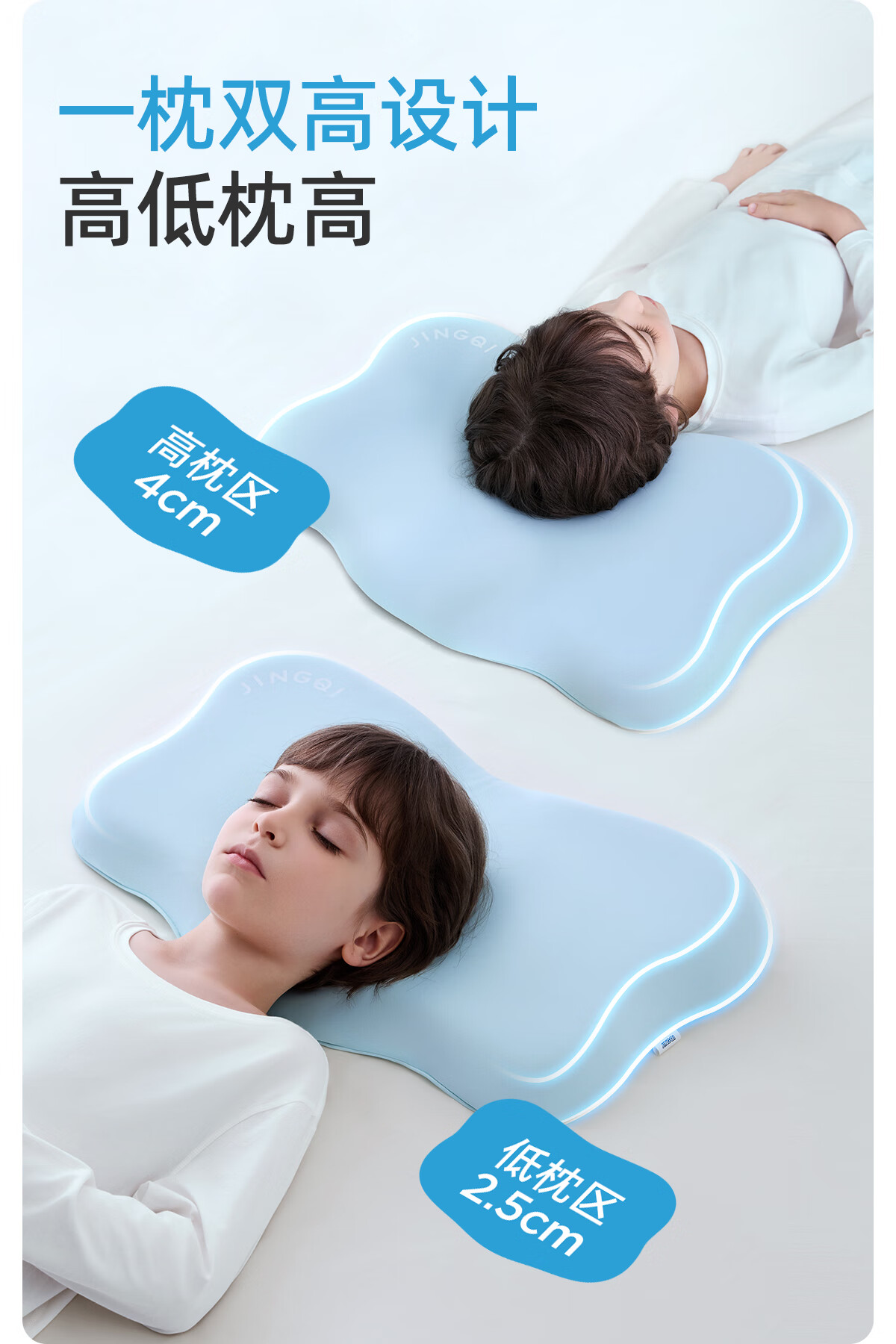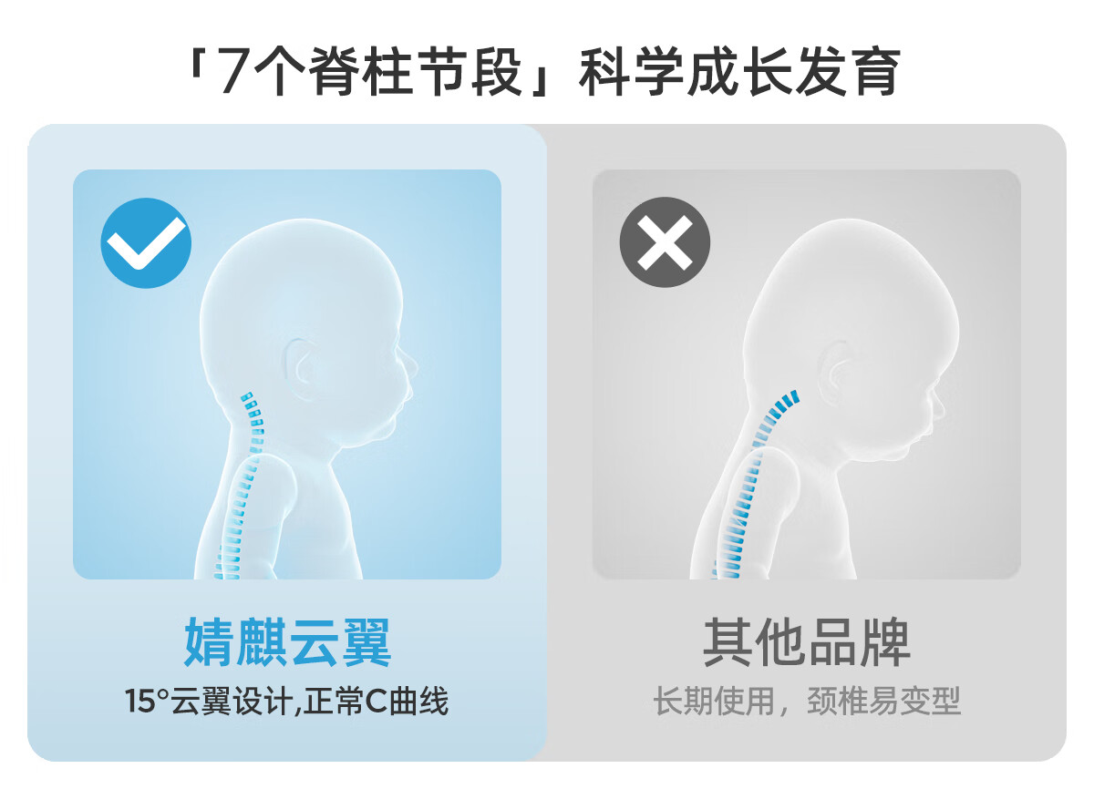 婧麒(JOYNCLEON)婴儿枕头儿童硅胶枕1-3岁宝宝幼儿园专用分区护颈脊 粉 Jzt198256