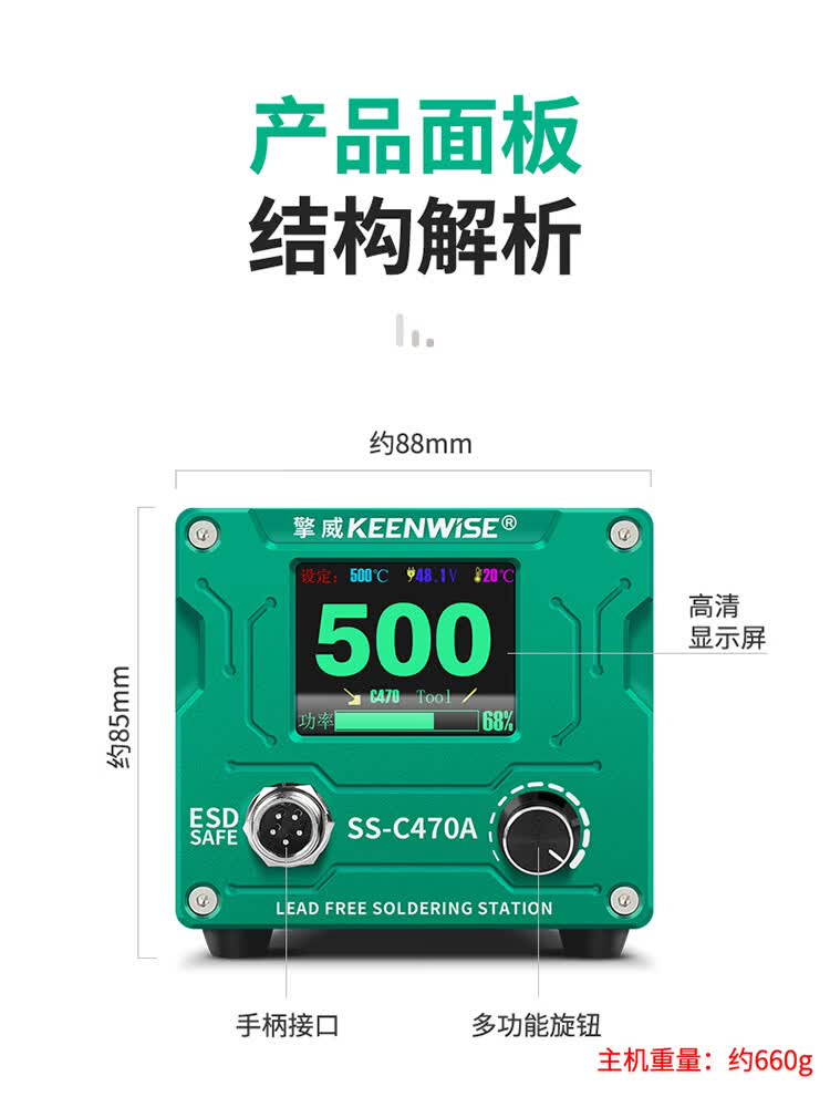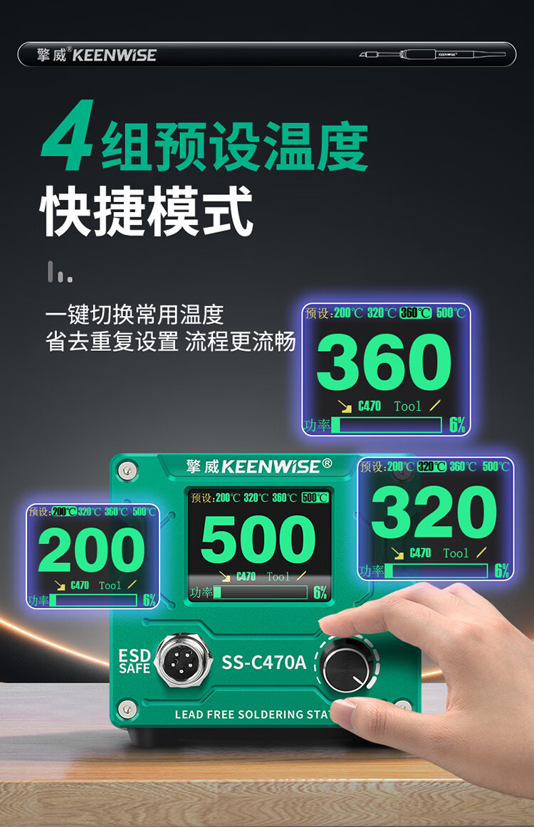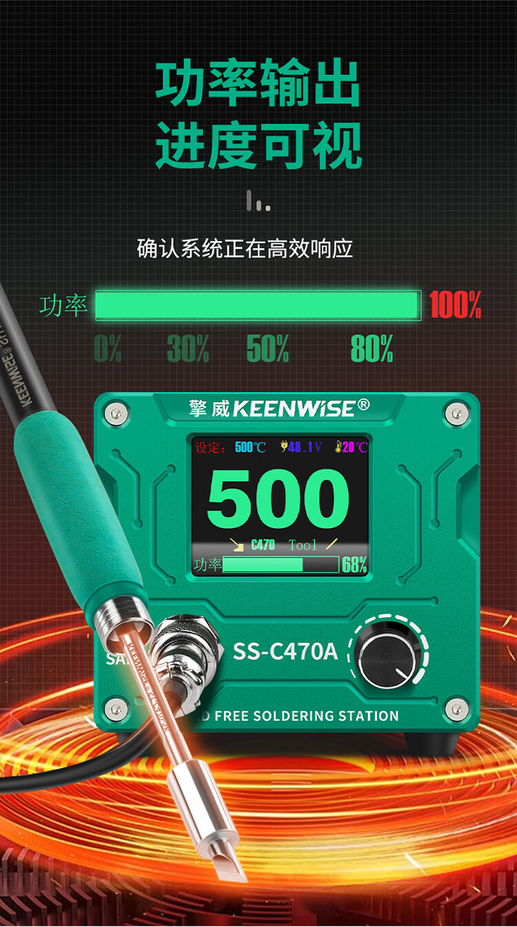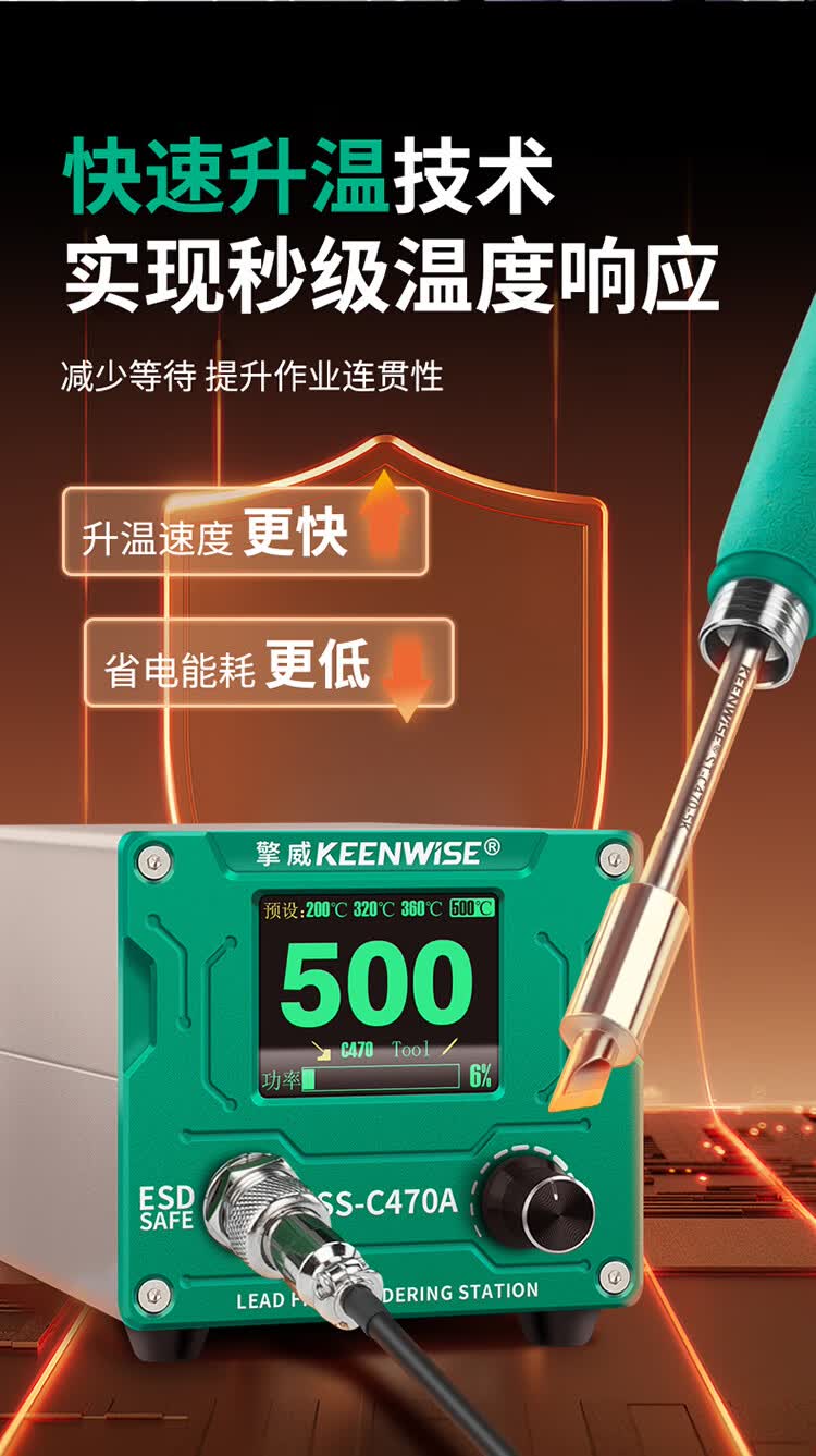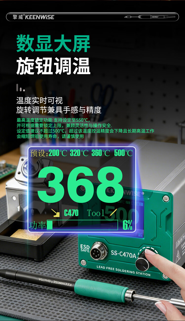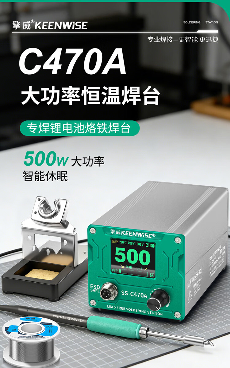 擎威C470焊台数显恒温大功率500W电烙铁急速升温带休眠工业锂电池锡焊 【大面积端子用】500W焊台+470一字10D