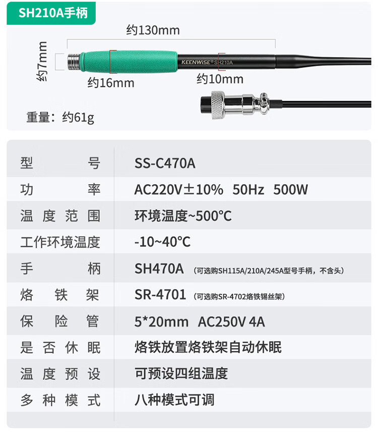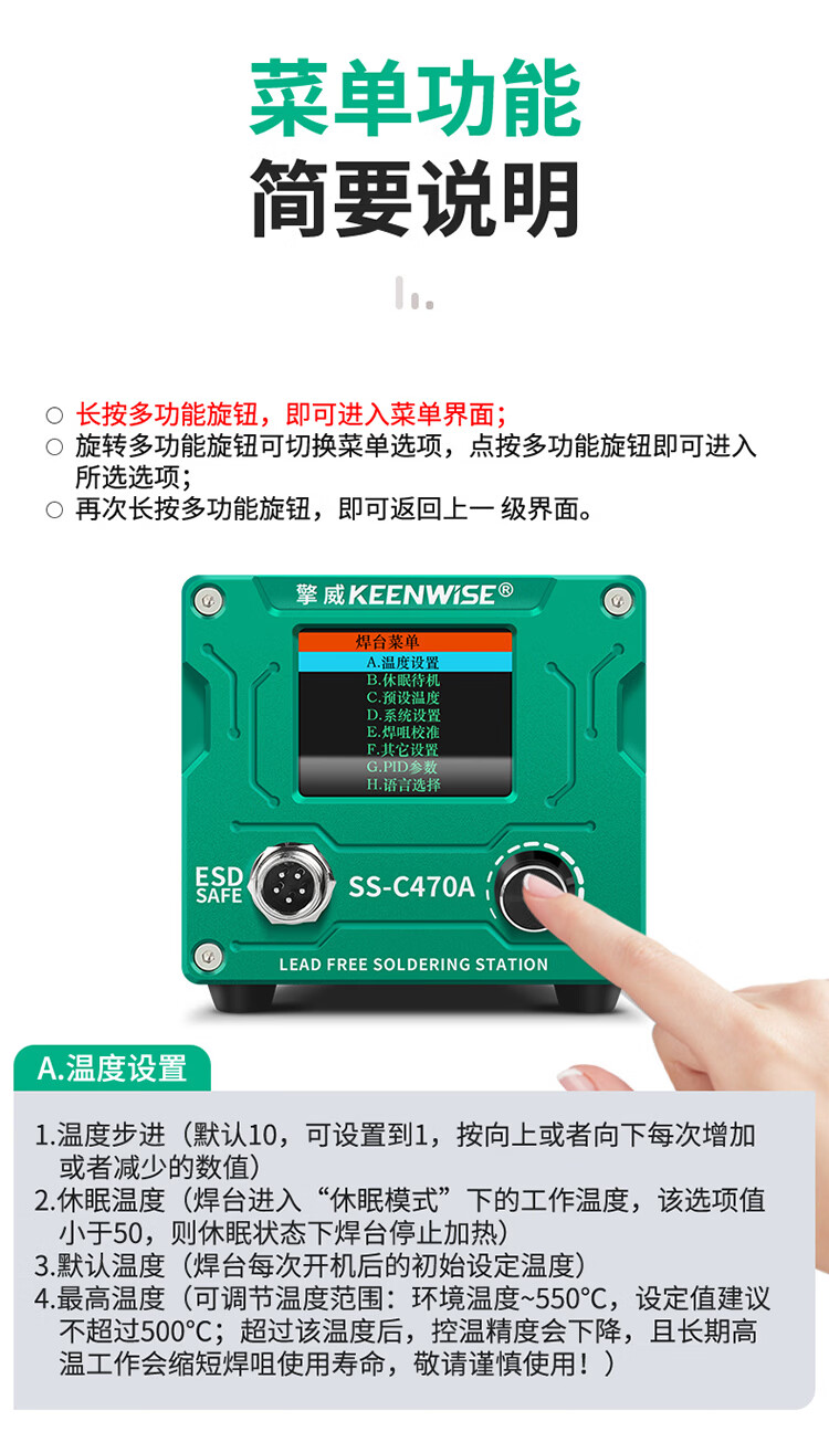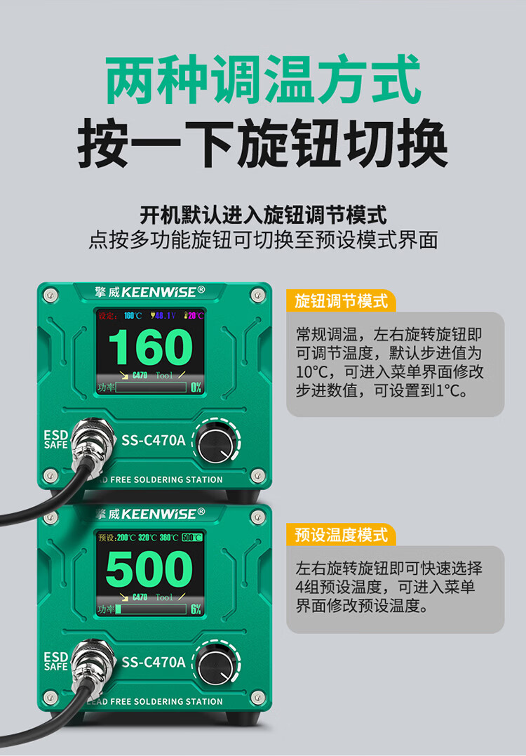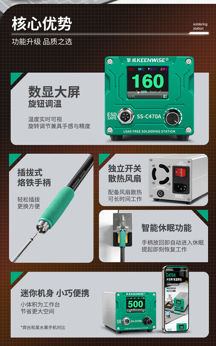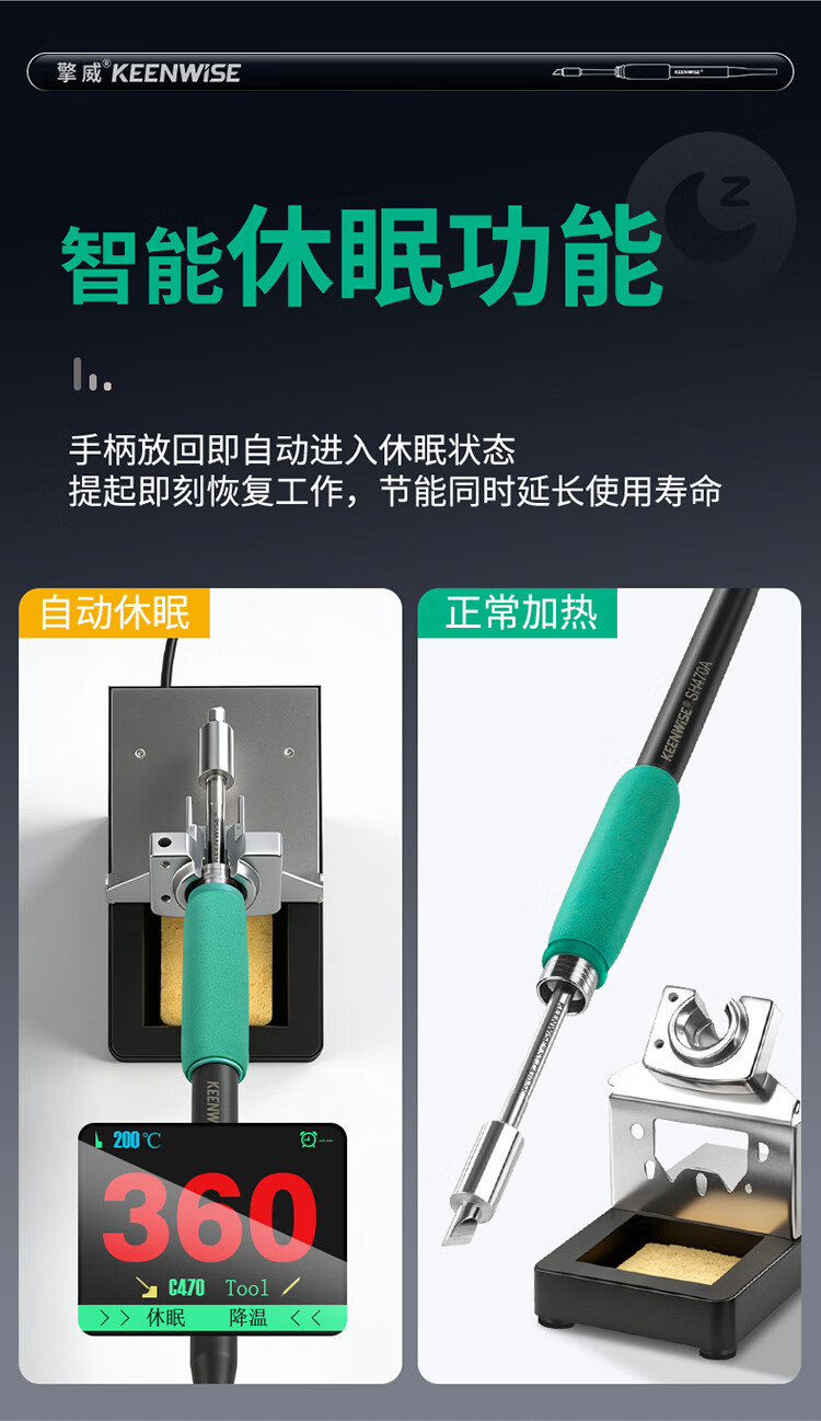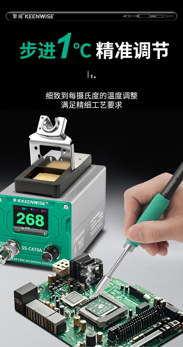擎威C470焊台数显恒温大功率500W电烙铁急速升温带休眠工业锂电池锡焊 【大面积端子用】500W焊台+470一字10D