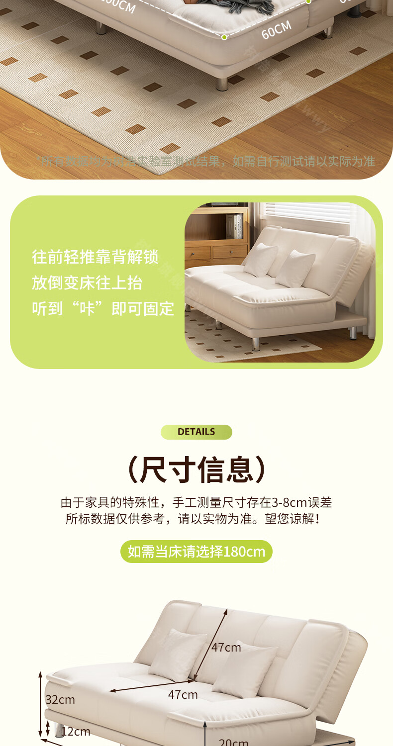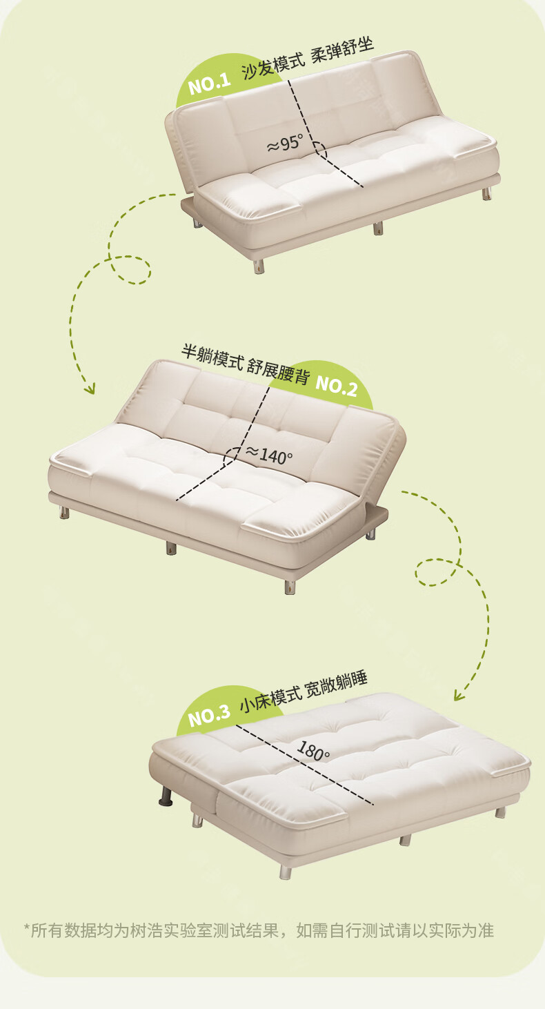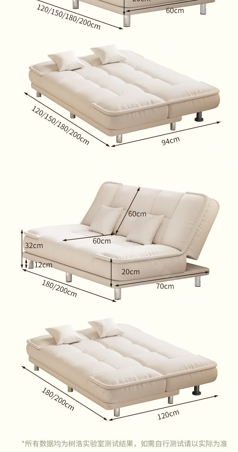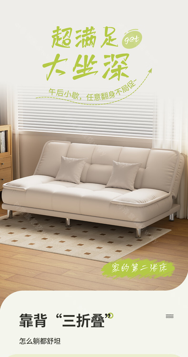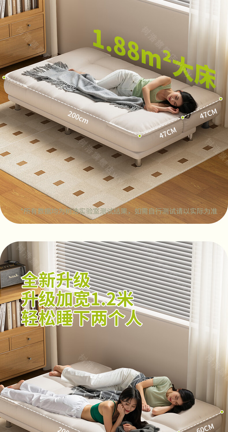 树浩小户型客厅懒人沙发两用折叠沙发床出租房卧室可躺可睡懒人小沙发 浅灰色【乳胶+海绵款】抱枕*2-靠背3档可调 加宽版小三人位180cm