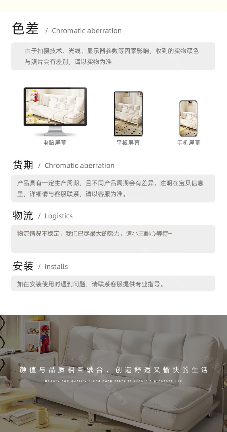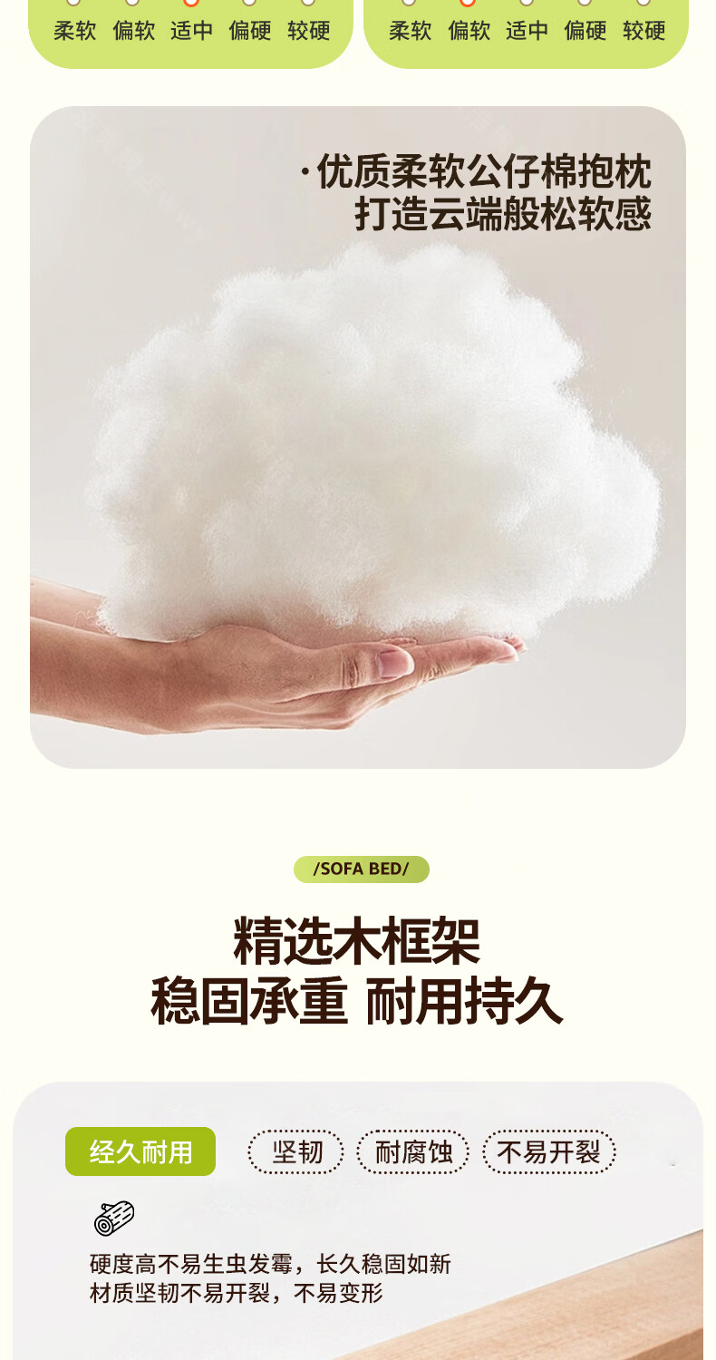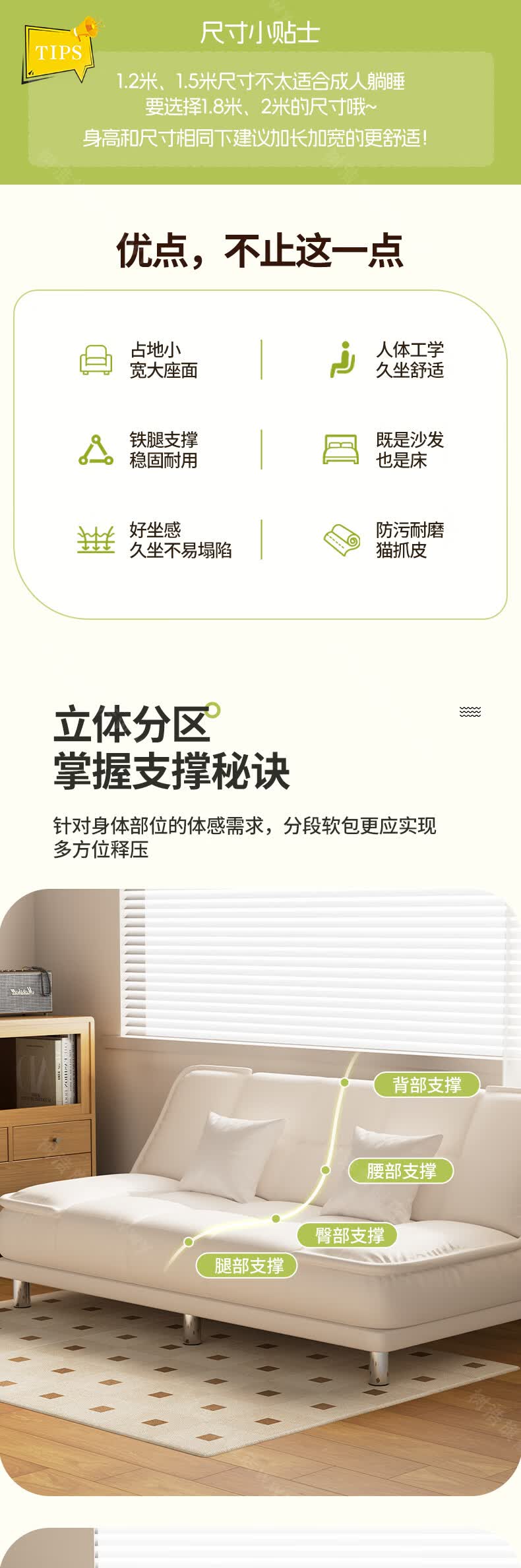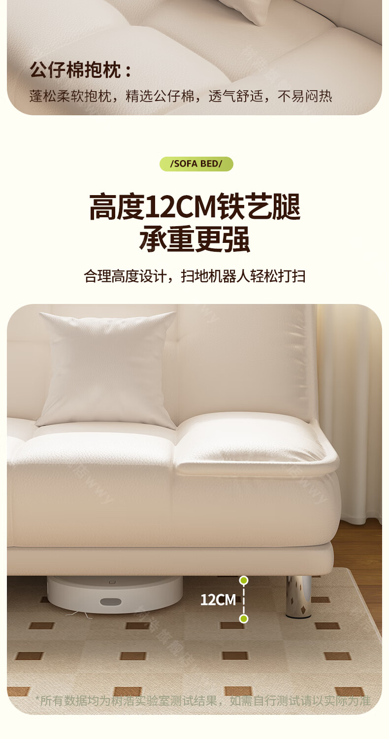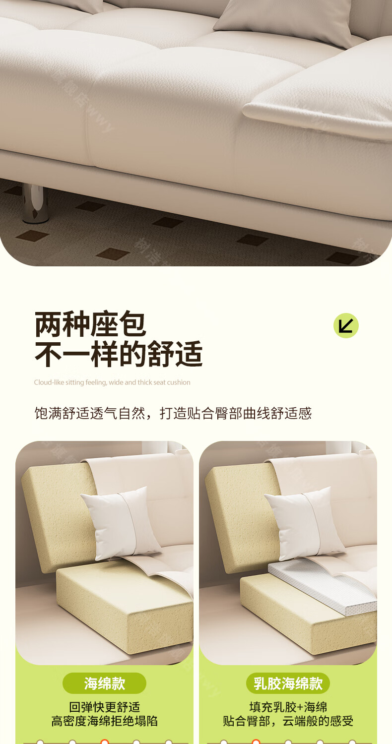 树浩小户型客厅懒人沙发两用折叠沙发床出租房卧室可躺可睡懒人小沙发 浅灰色【乳胶+海绵款】抱枕*2-靠背3档可调 加宽版小三人位180cm
