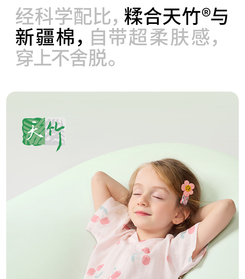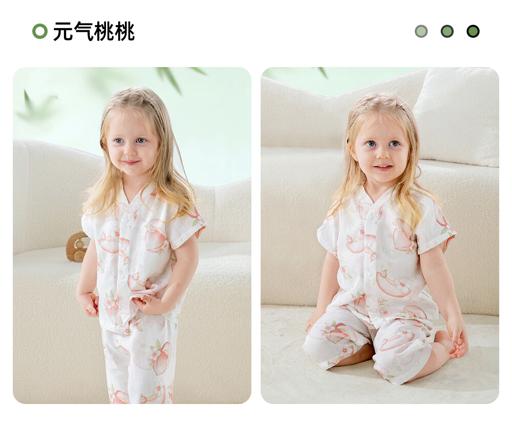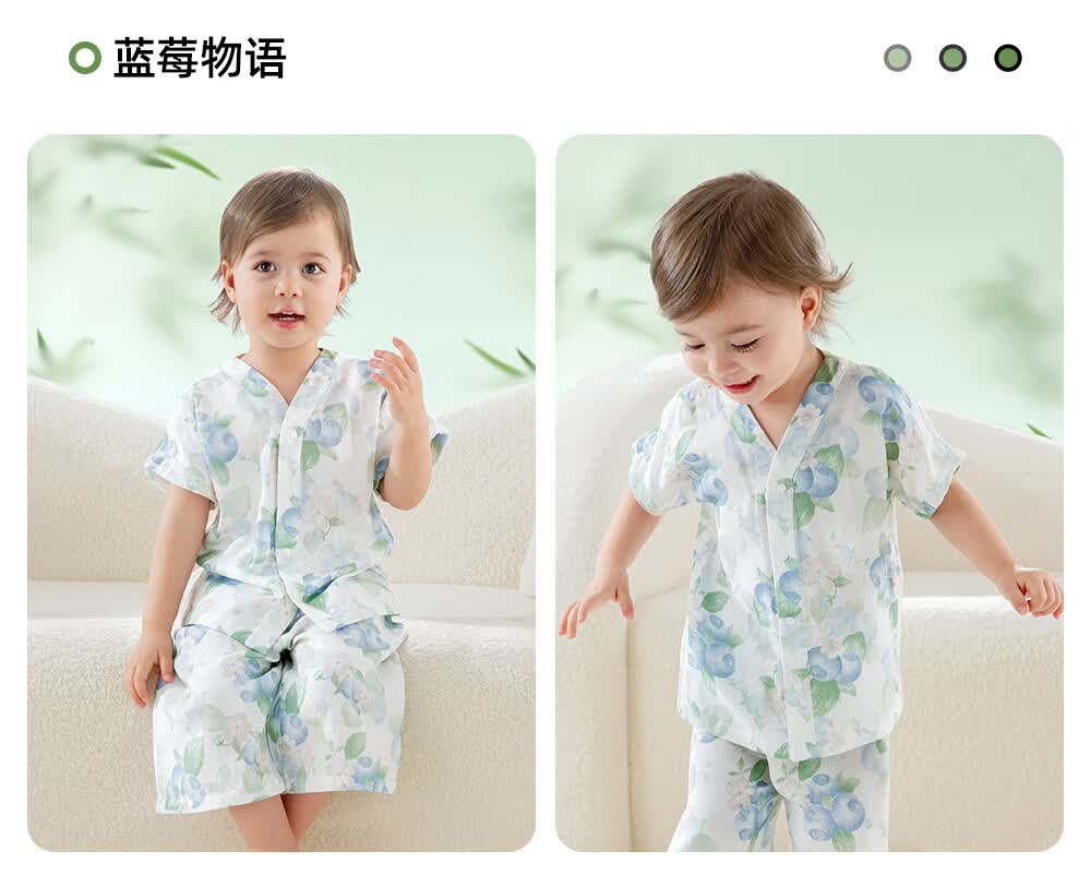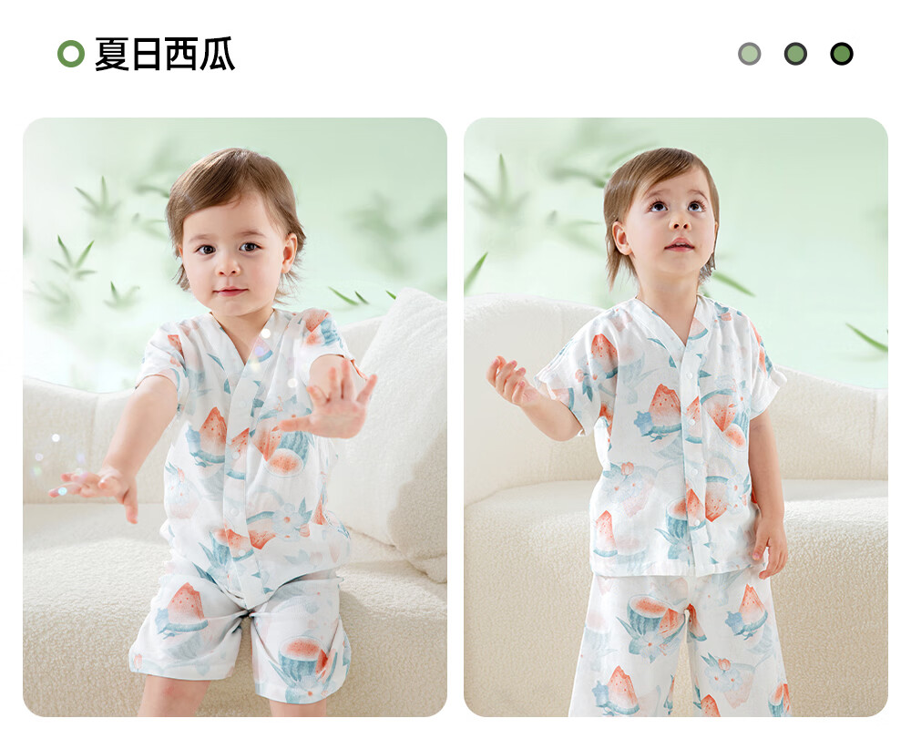 贝肽斯儿童睡衣女童男童夏季薄款透气家居服套装宝宝亲子睡衣短袖