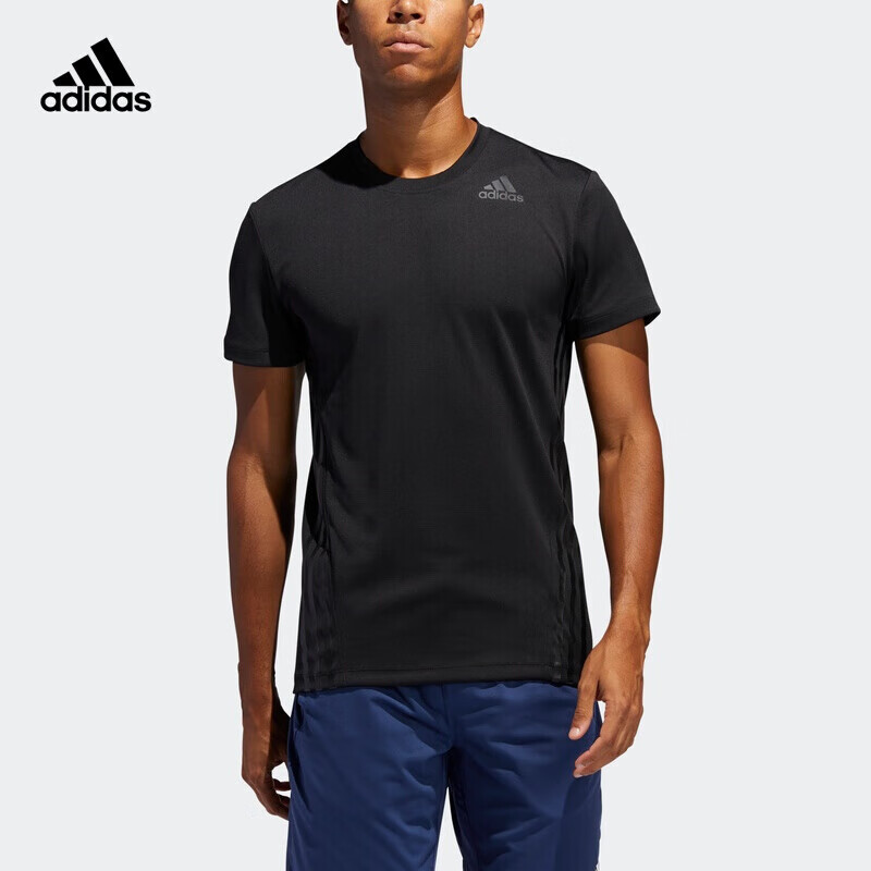 阿迪达斯(adidas)【京东奥莱】短袖男款夏季新款运动服透气吸汗速干T恤衫跑步训练 黑色 M