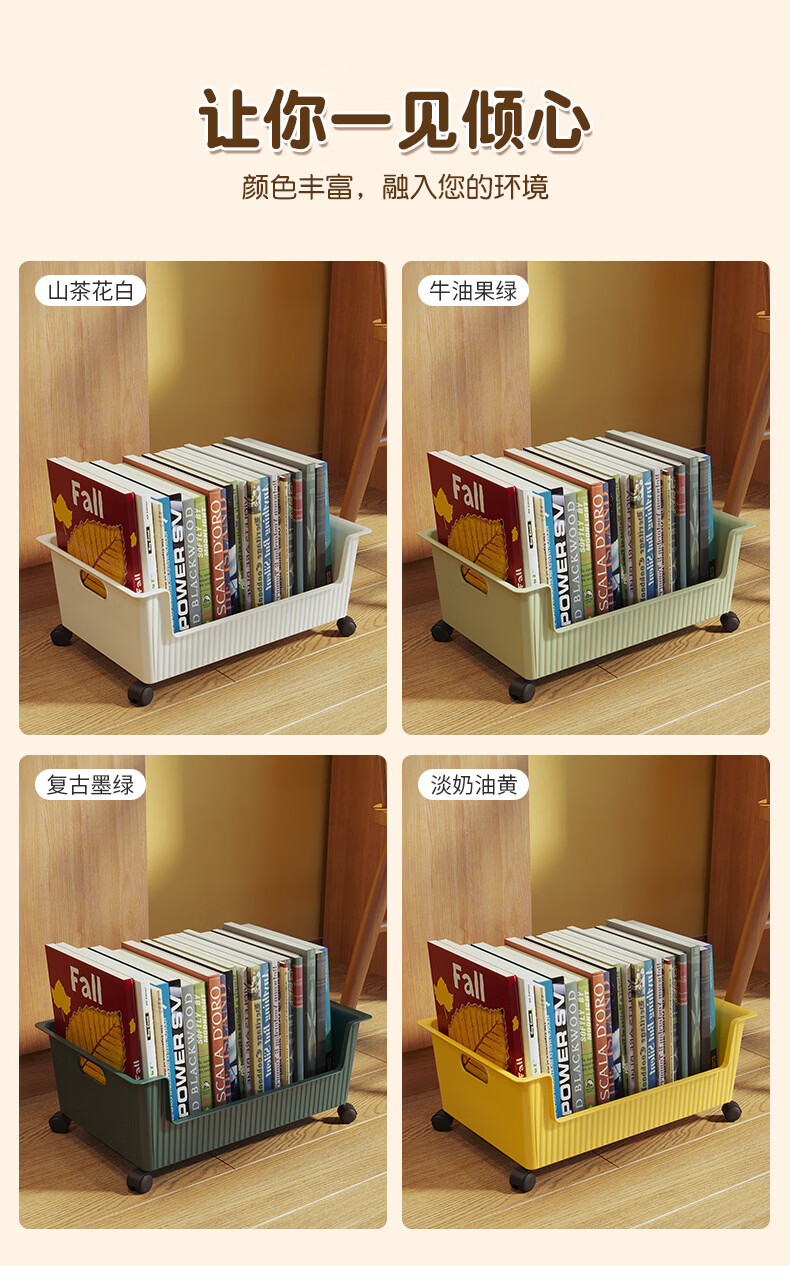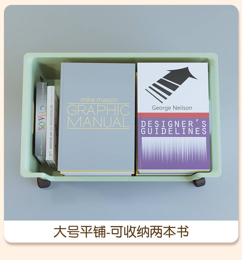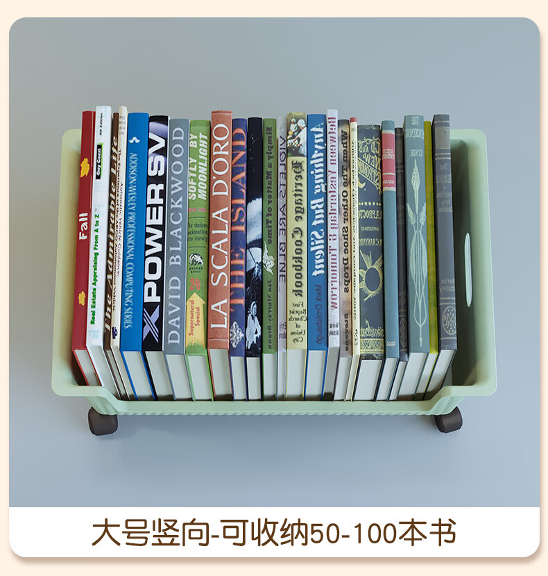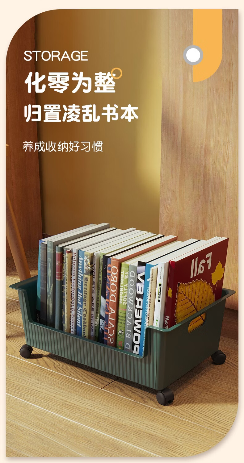 带滑轮书本收纳盒学生宿舍桌下书包收纳箱 抹茶绿大号【无轮】