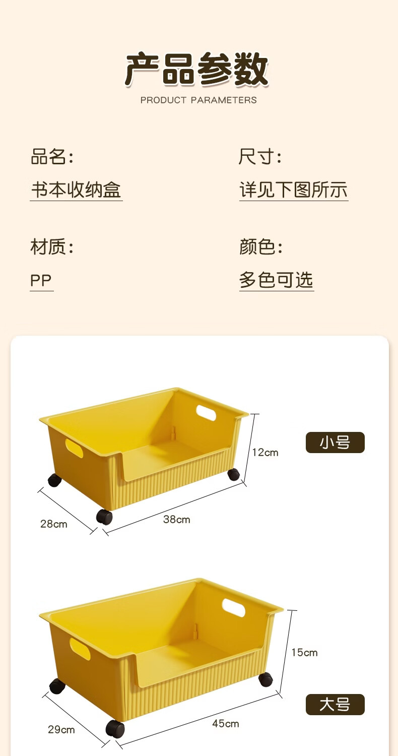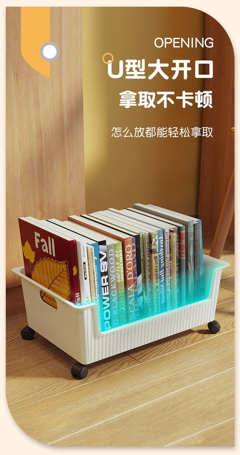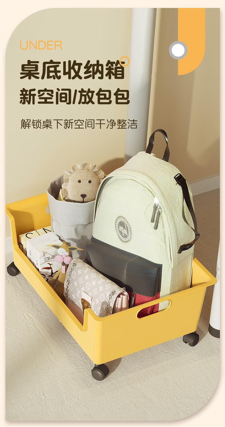 带滑轮书本收纳盒学生宿舍桌下书包收纳箱 抹茶绿大号【无轮】
