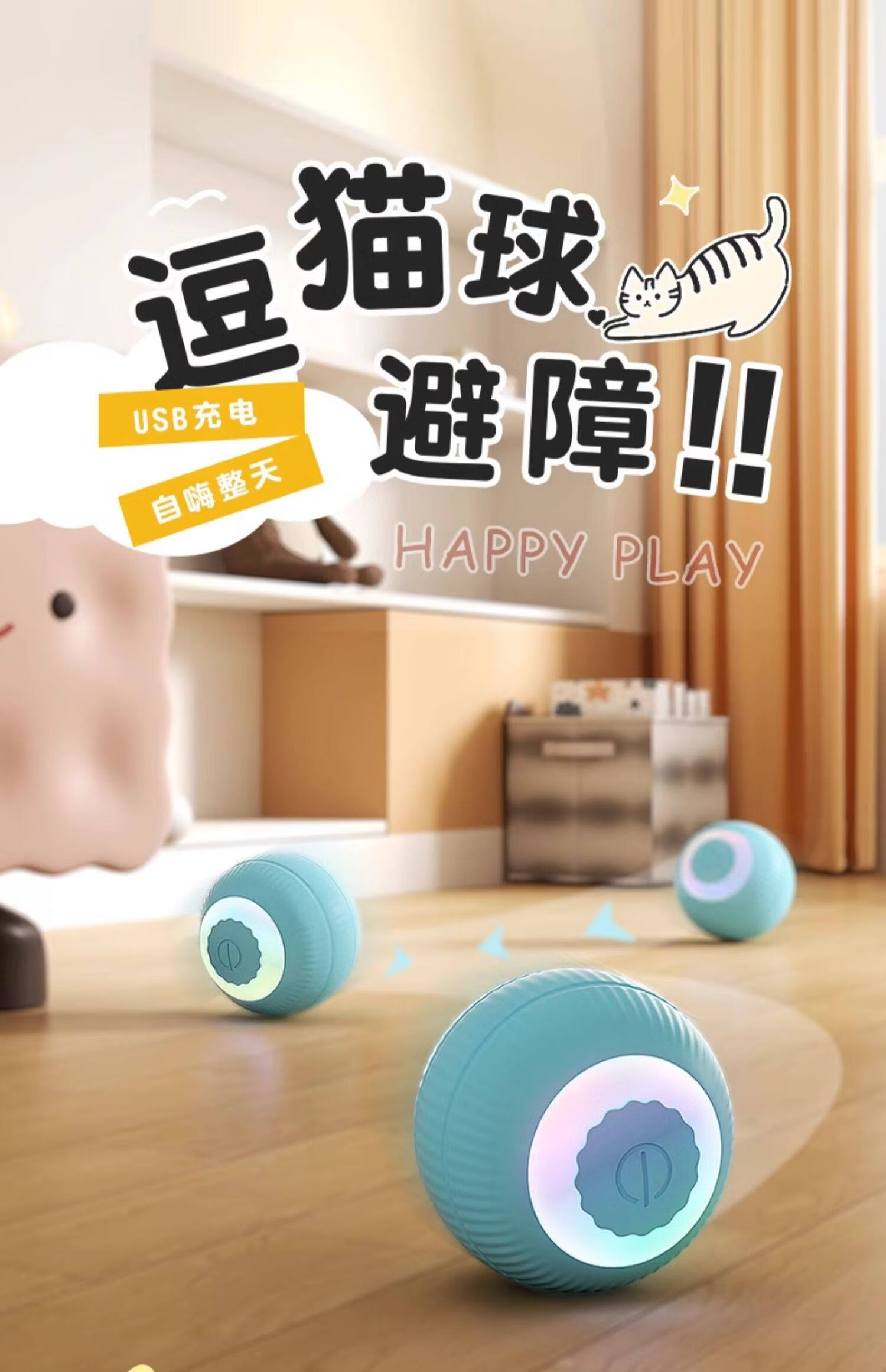 皓依猫咪狗狗玩具自嗨解闷自动逗狗逗猫球器棒电动引力滚滚球宠物用品 【天空蓝+超强续航】智能电动逗猫球