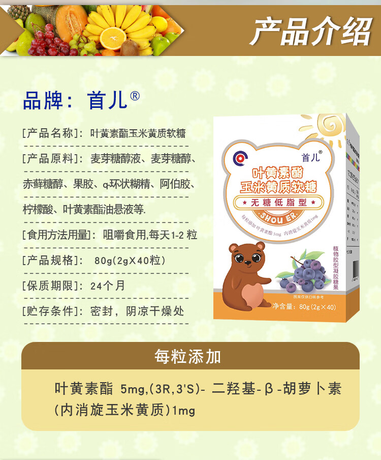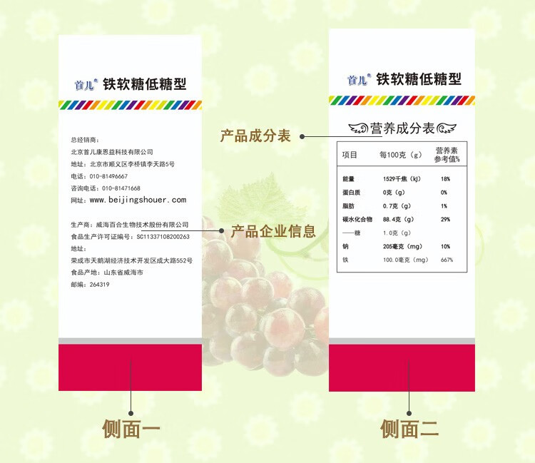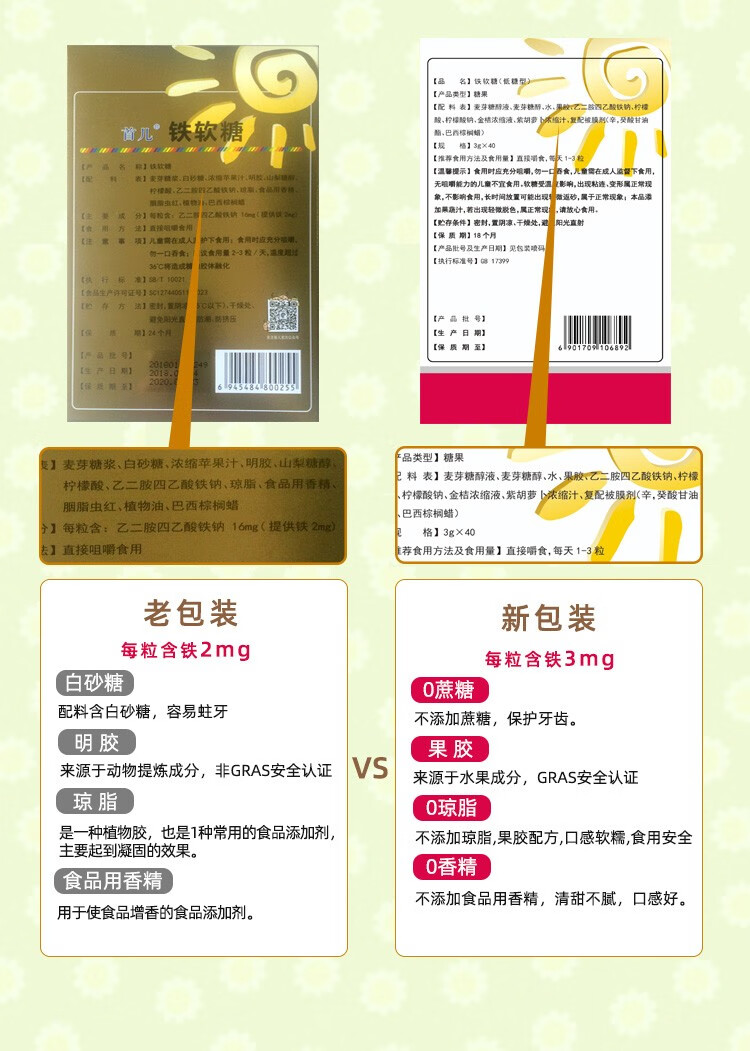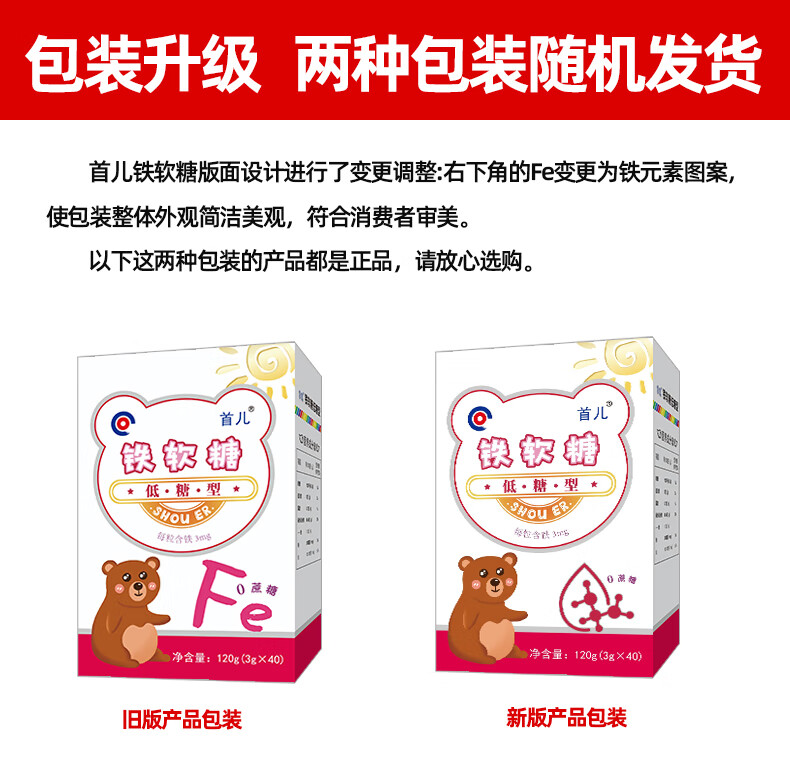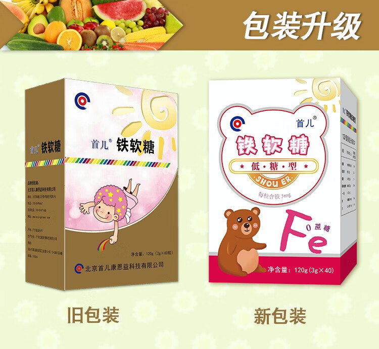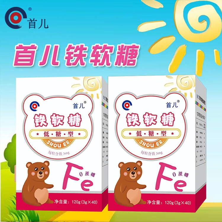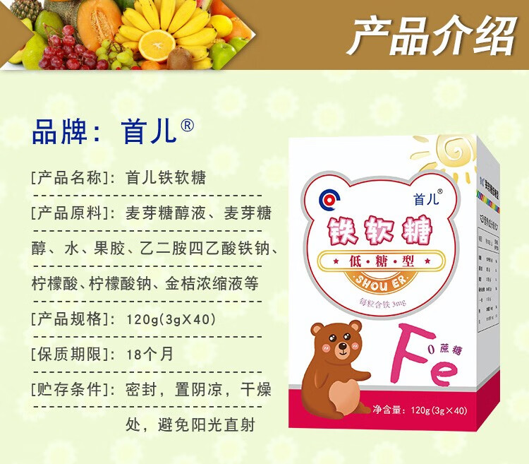 首儿铁软糖低糖型0蔗糖儿童营养零食软糖补充铁软糖果40粒 铁软糖