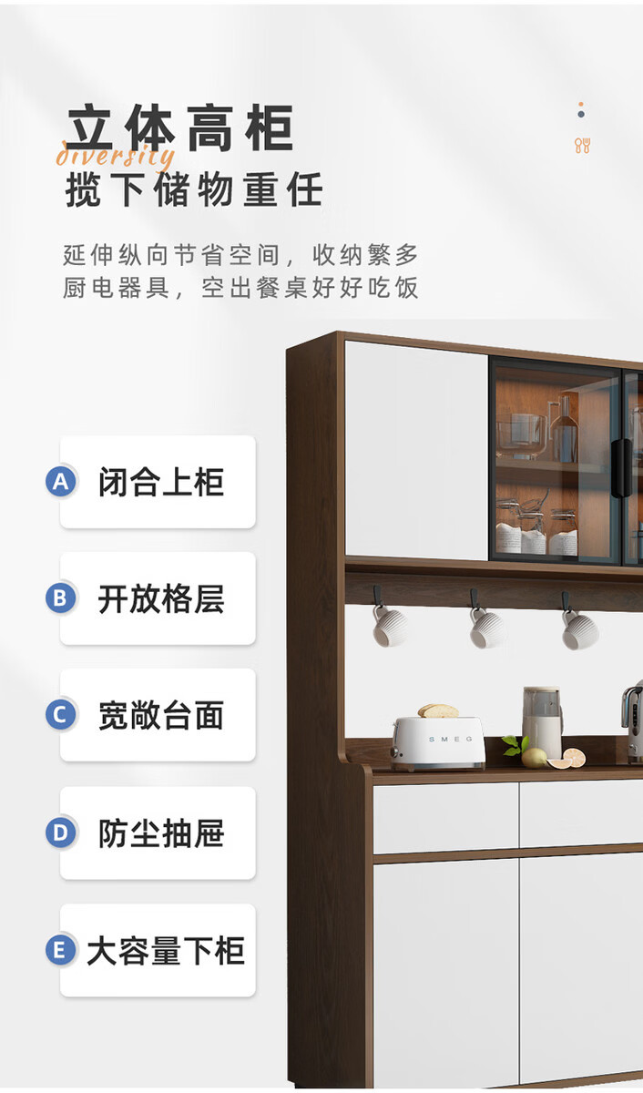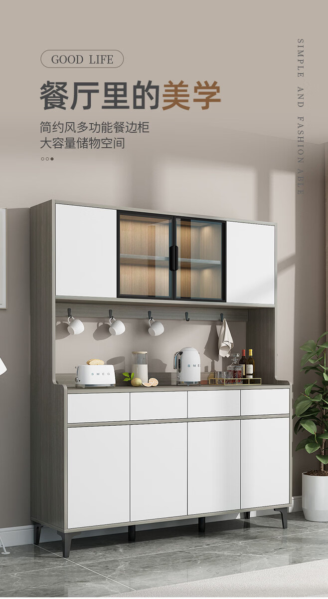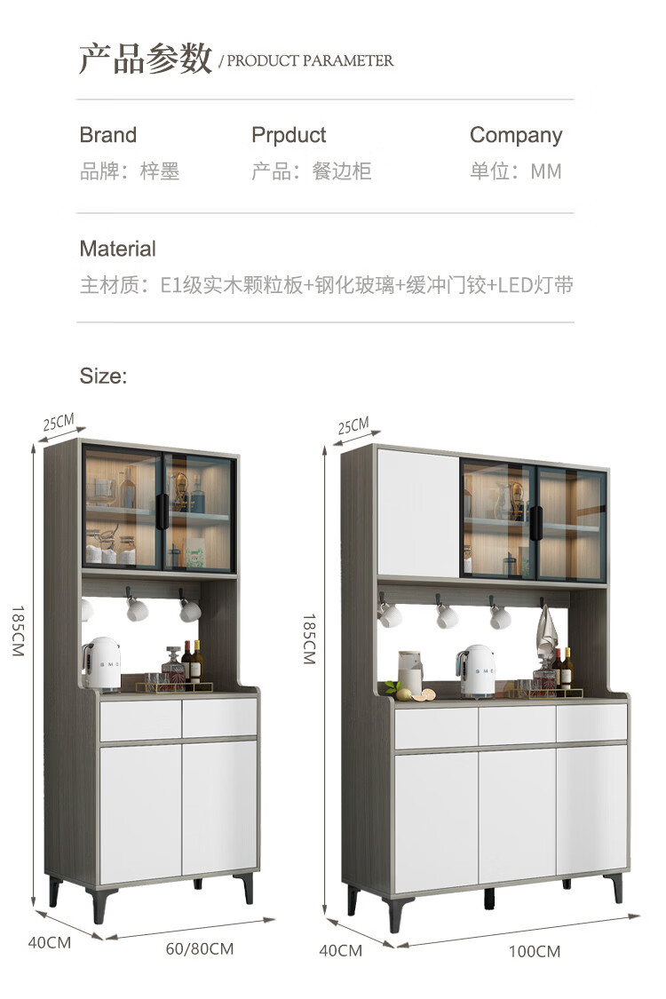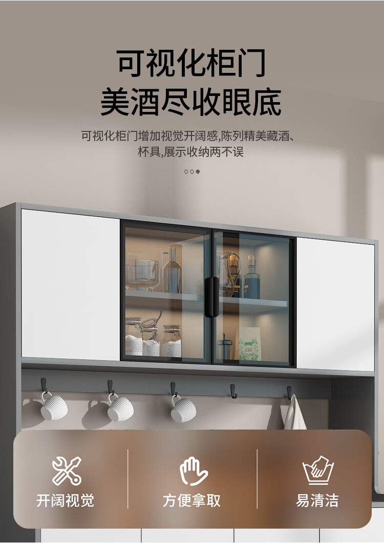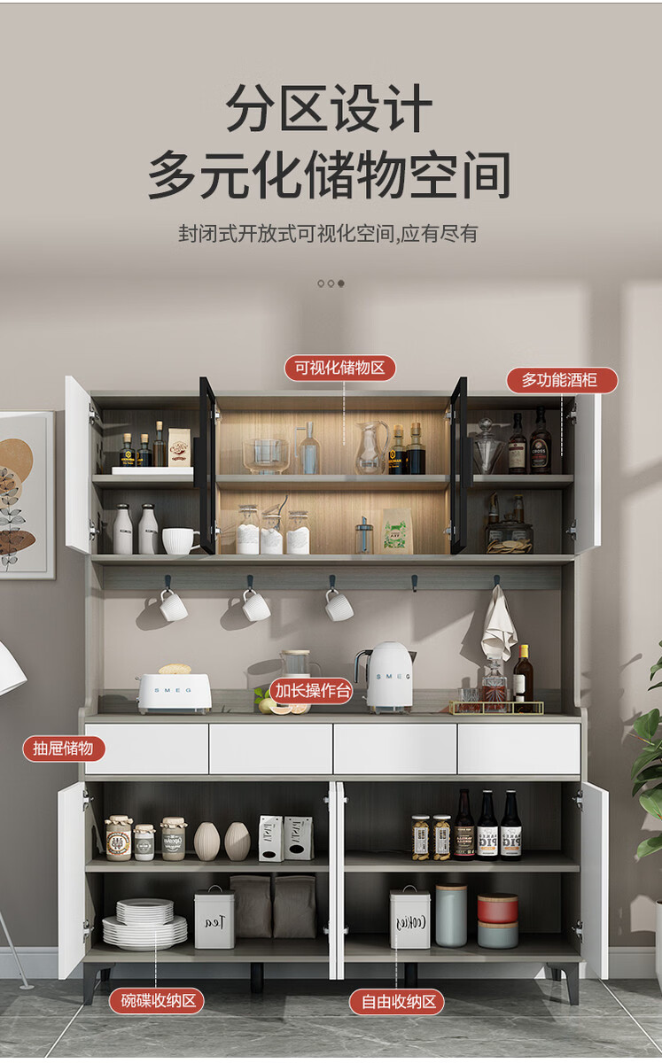 溥畔轻奢餐边柜现代简约酒柜 靠墙家用高款储物柜 厨房橱柜置物架 定制尺寸联系客服