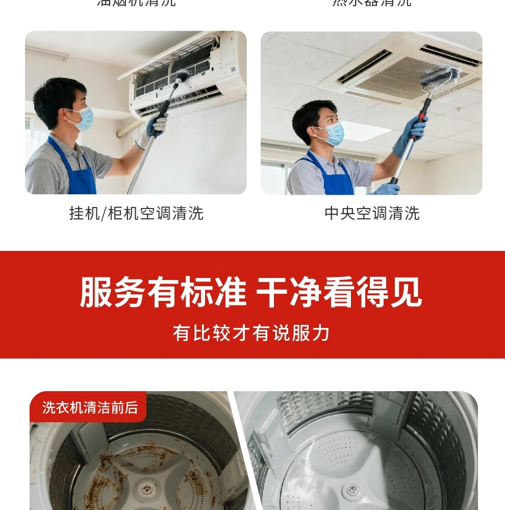 【鲸洁邦】极速同城上门服务家电清洗专业 空调清洁本地生活服务 高温蒸汽除菌除尘告别异味细菌 中央空调风口全拆洗3组