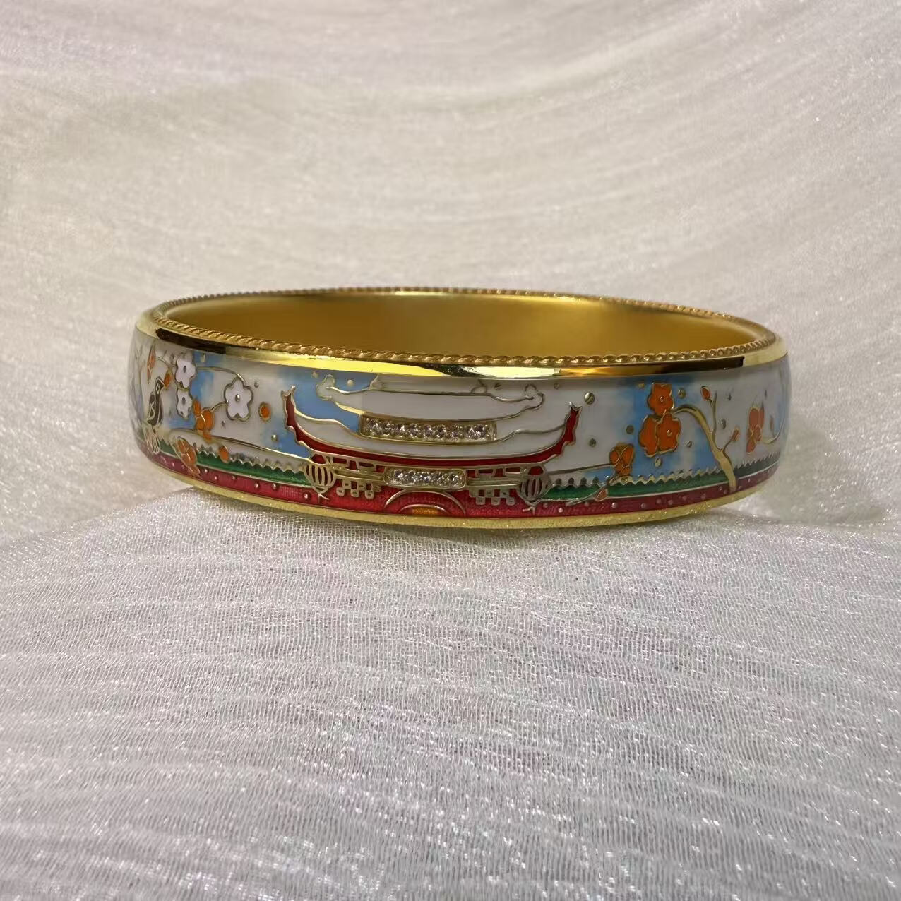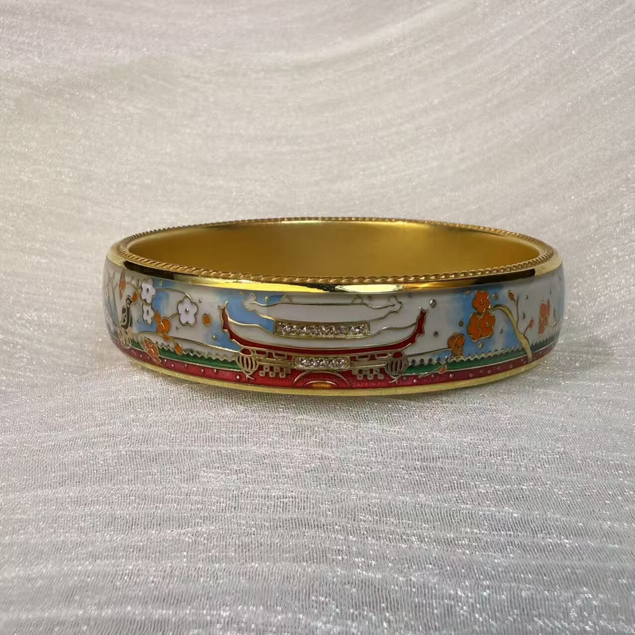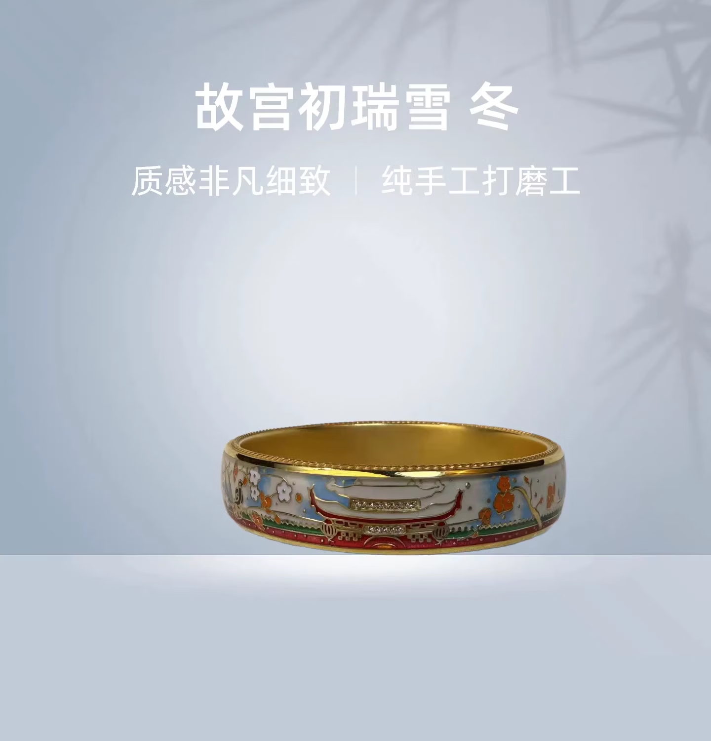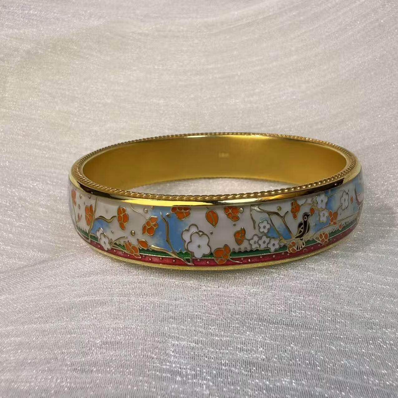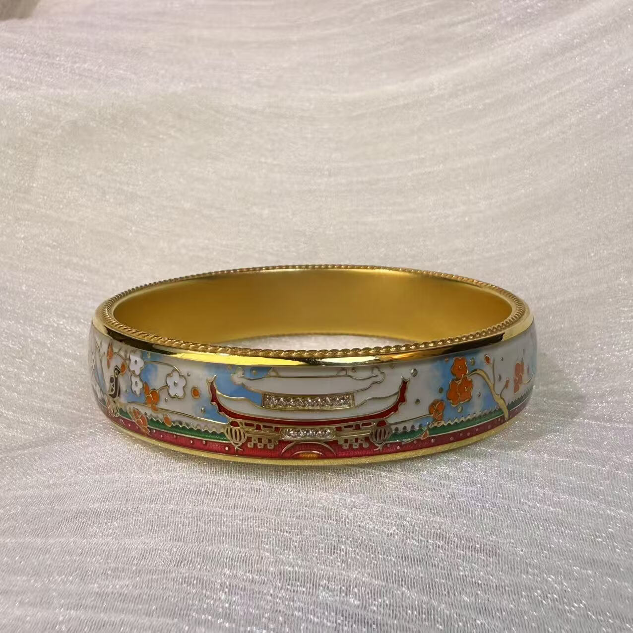钻之银民族风珐琅彩手镯足银999鎏金拍平工艺 黄色 60圈口约60克