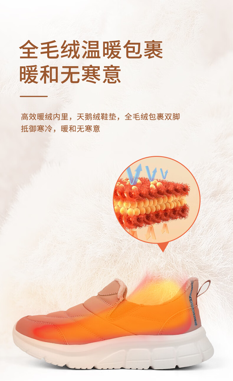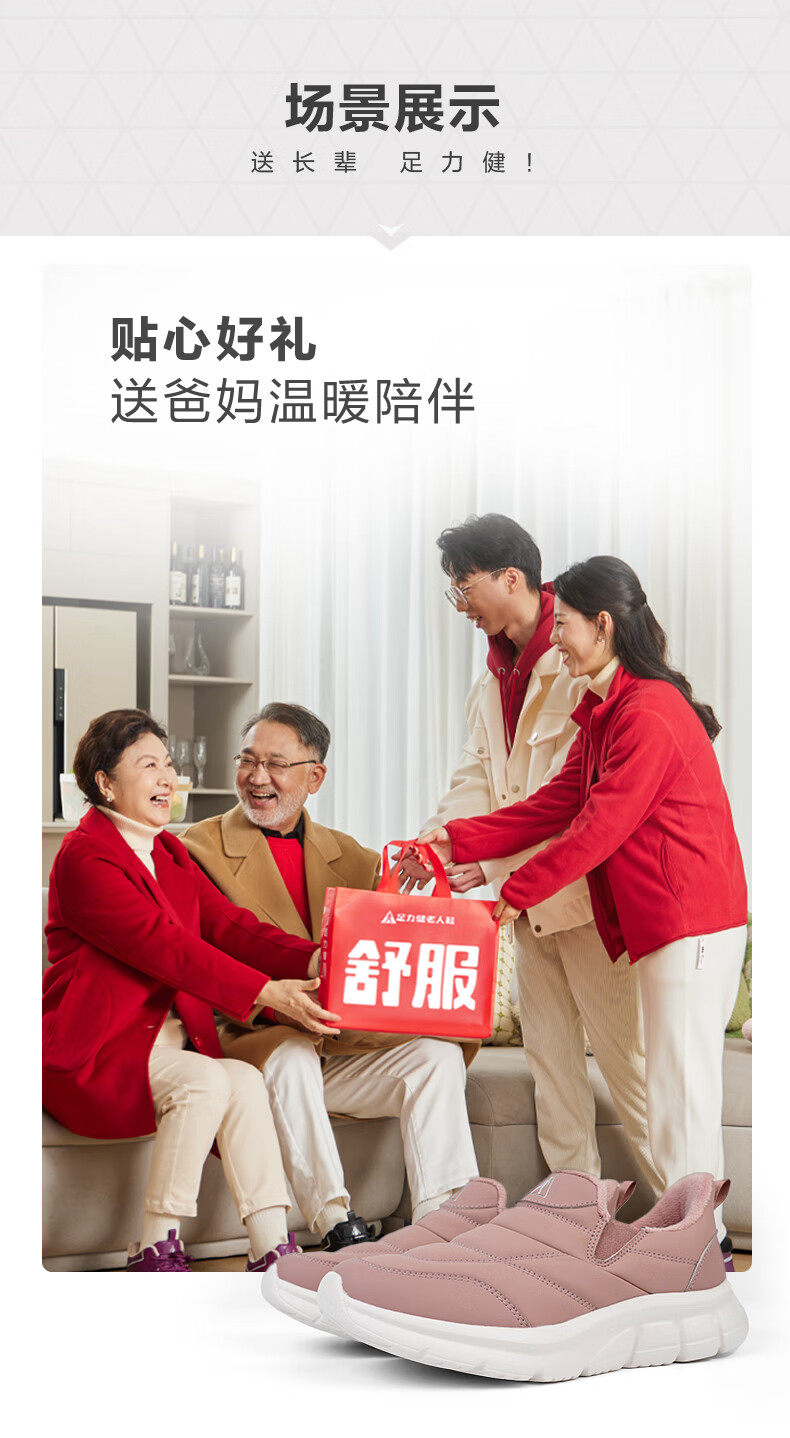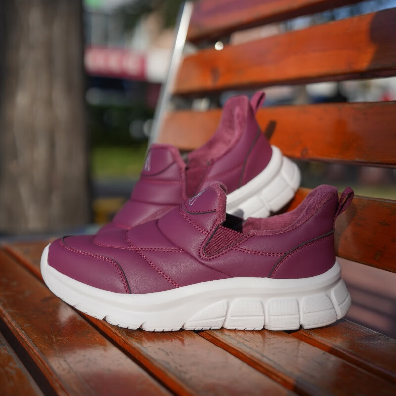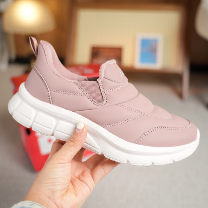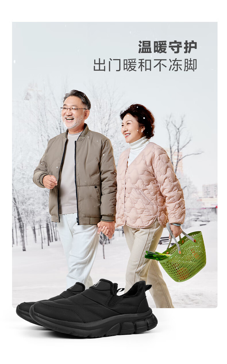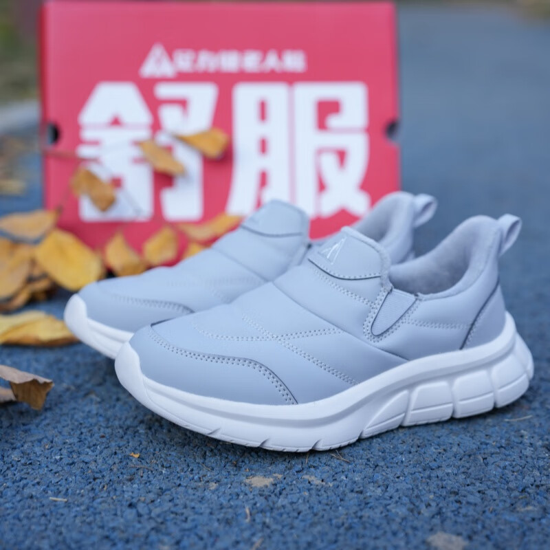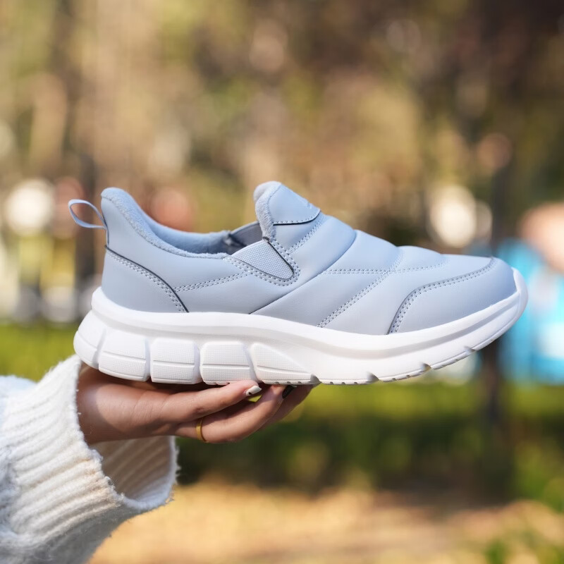 足力健老人鞋雪地靴冬季保暖防滑一脚蹬轻便保暖鞋棉鞋男女鞋 女灰蓝色 36