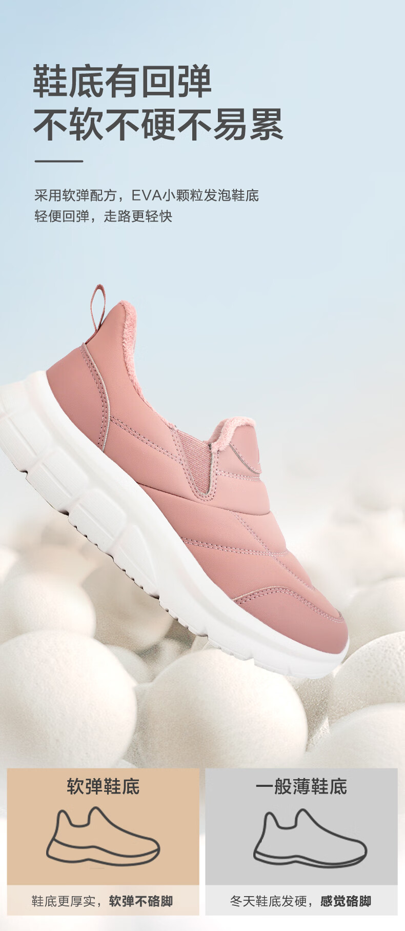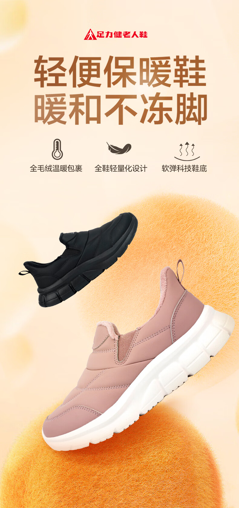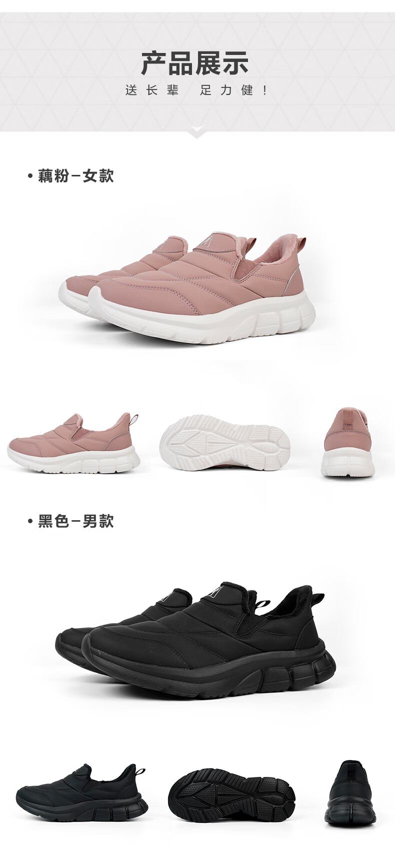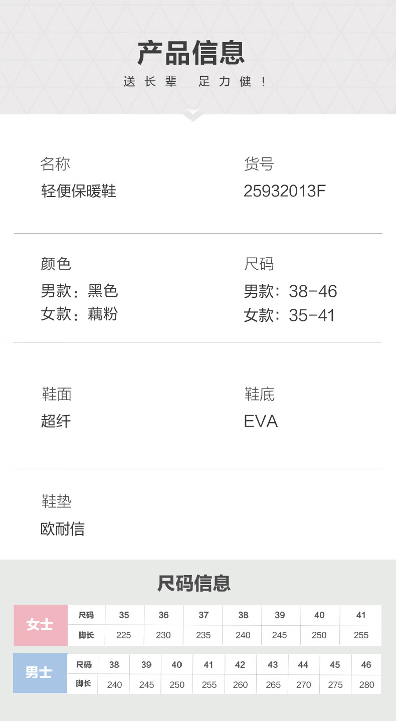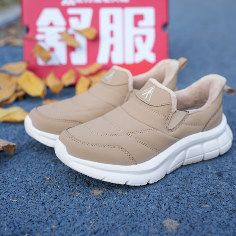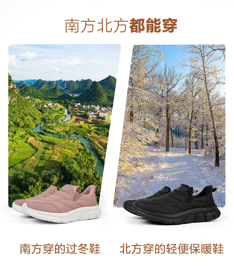 足力健老人鞋雪地靴冬季保暖防滑一脚蹬轻便保暖鞋棉鞋男女鞋 女灰蓝色 36