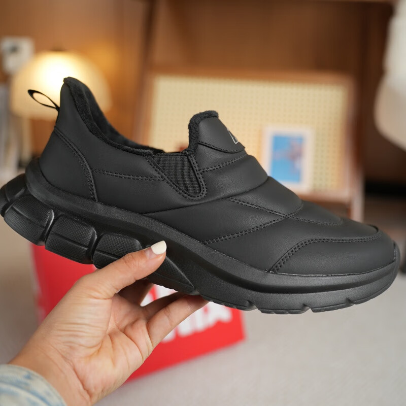 回力皮鞋加绒保暖真皮2025新款商务正装男鞋休闲结婚软底舒适新郎鞋子 黑色【加绒款】 44