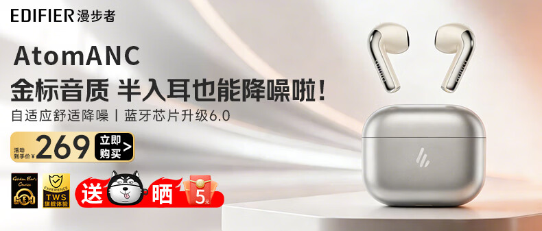 漫步者(EDIFIER)AtomEvo入耳式原子豆Evo深度降噪 适配华为小米苹果 真无线蓝牙耳机2026新款 云白