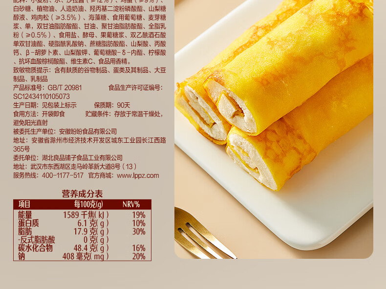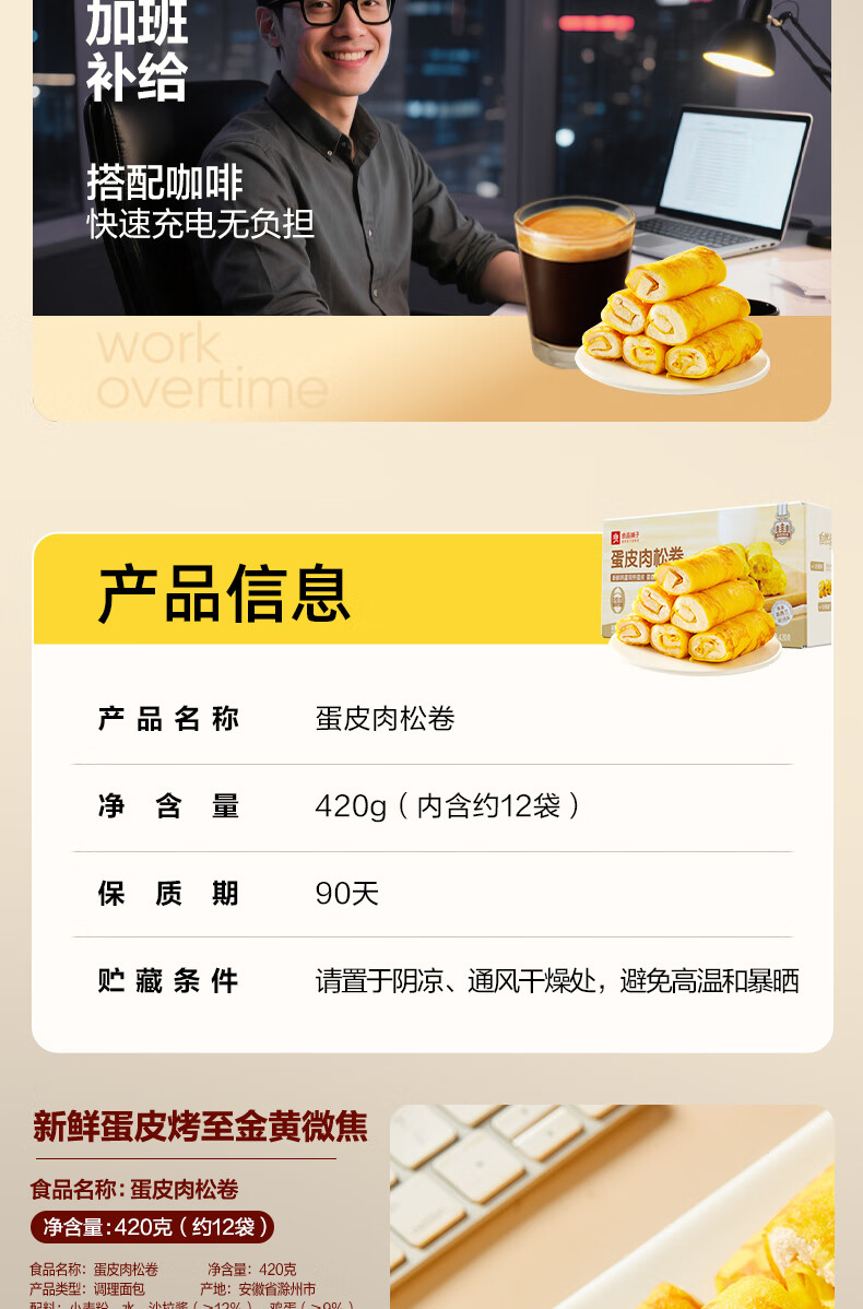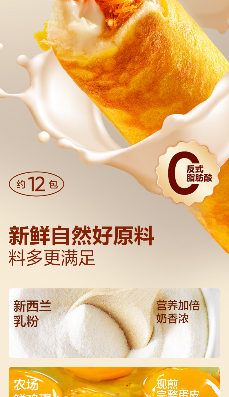 良品铺子蛋皮吐司面包早餐休闲零食肉松虎皮卷糕点心下午茶摩洛哥面包420g