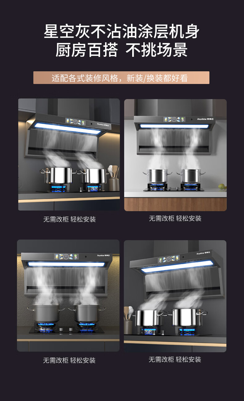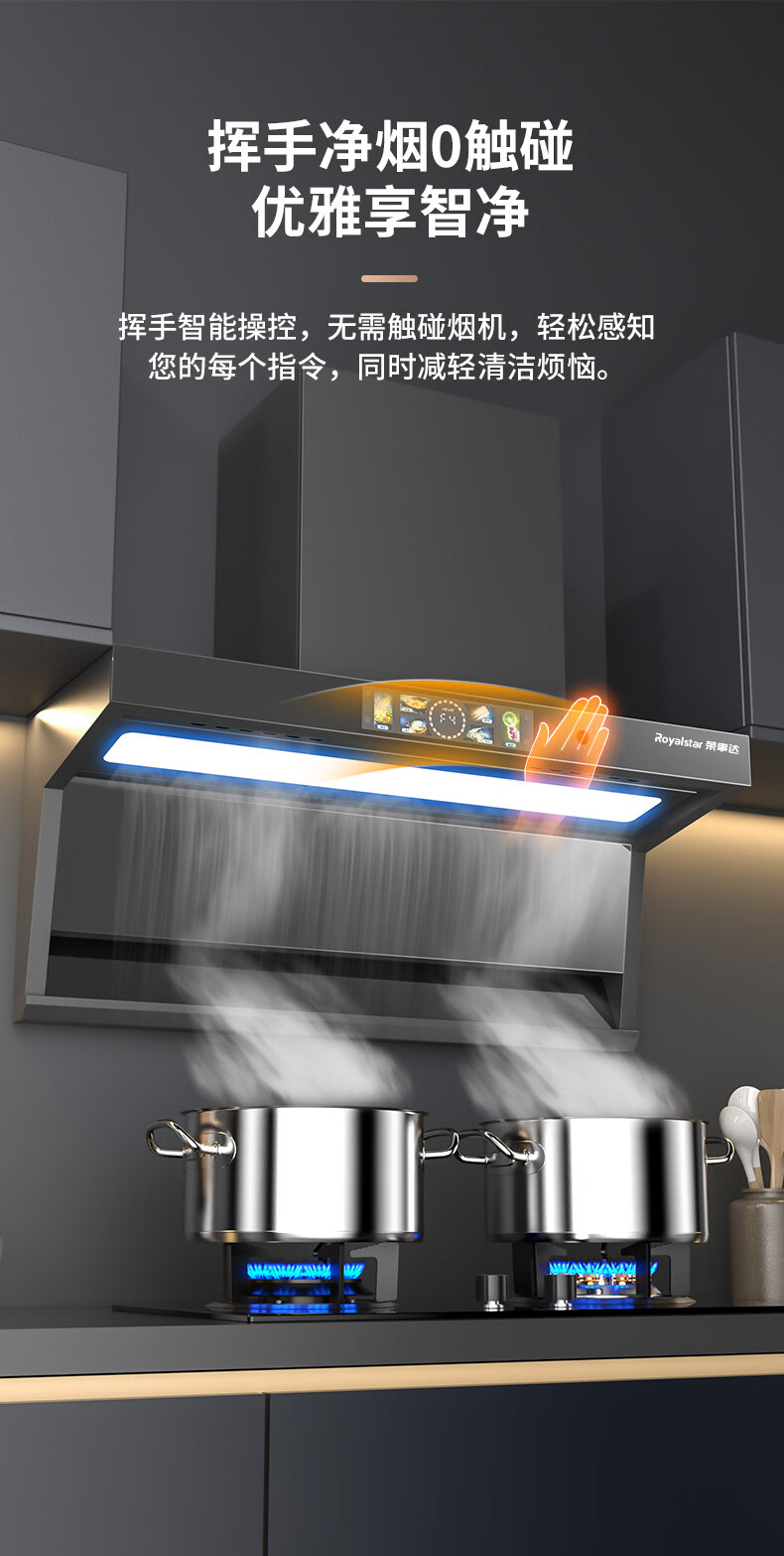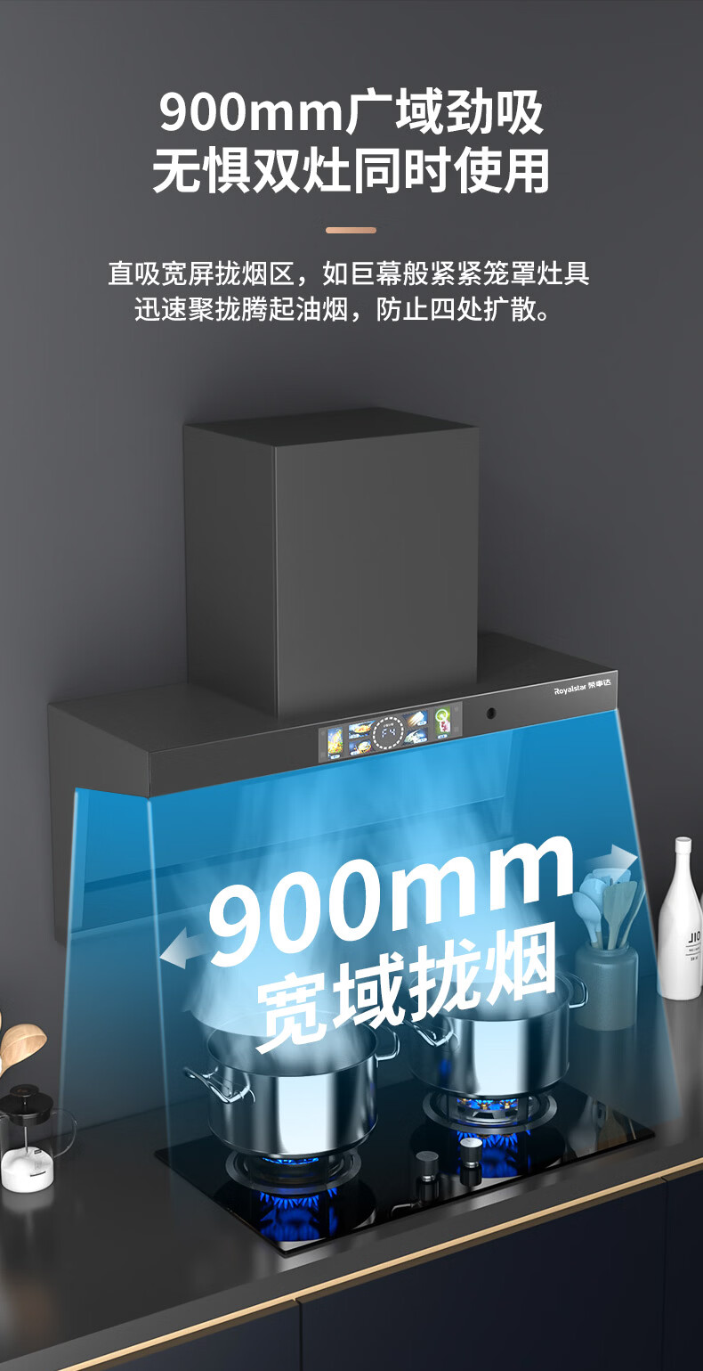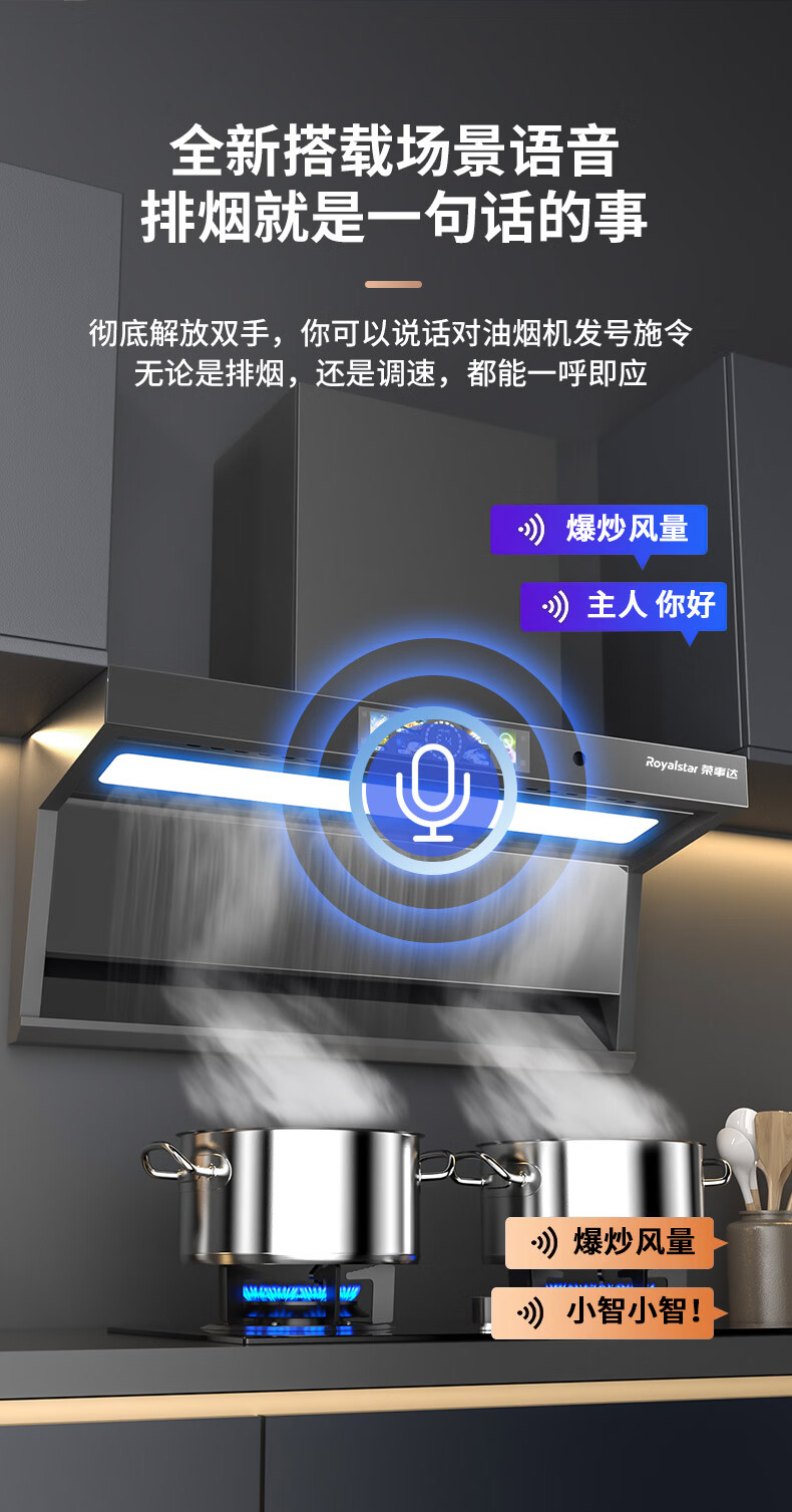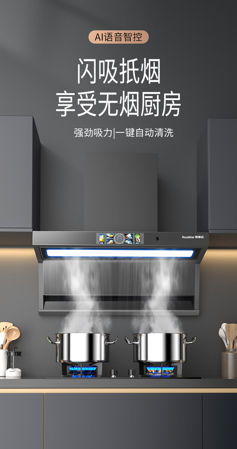 荣事达油烟机28m³【免费安装】超薄顶侧双吸抽油烟机家用厨房大吸力一级能效脱排吸油烟机燃气灶二件套 【顶侧双吸】28m³语音声控+体感+自动清洗