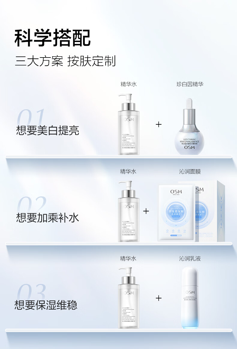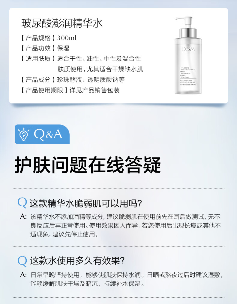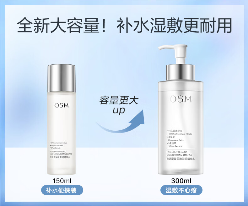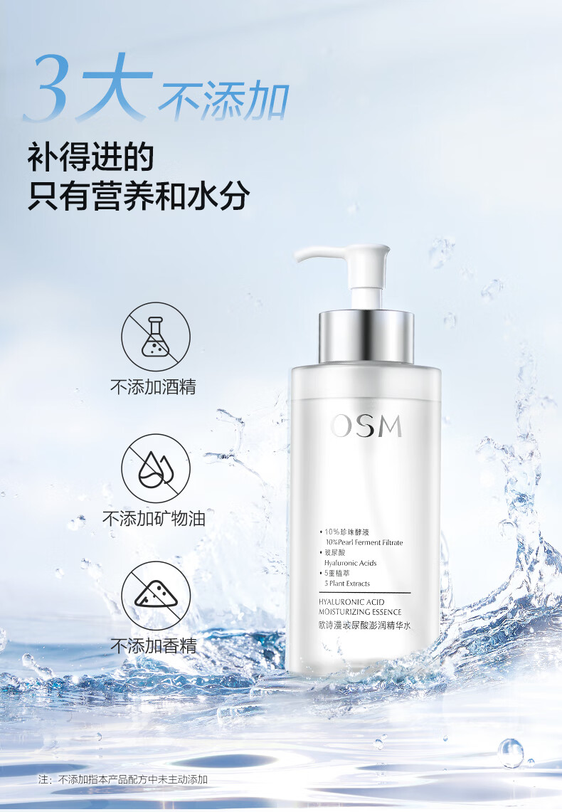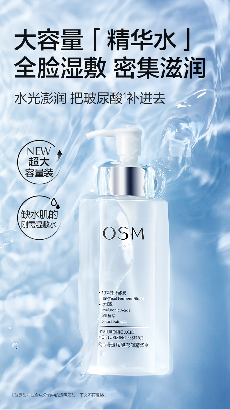 欧诗漫(OSM)玻尿酸爽肤水保湿精华水300ml大容量护肤品生日礼物