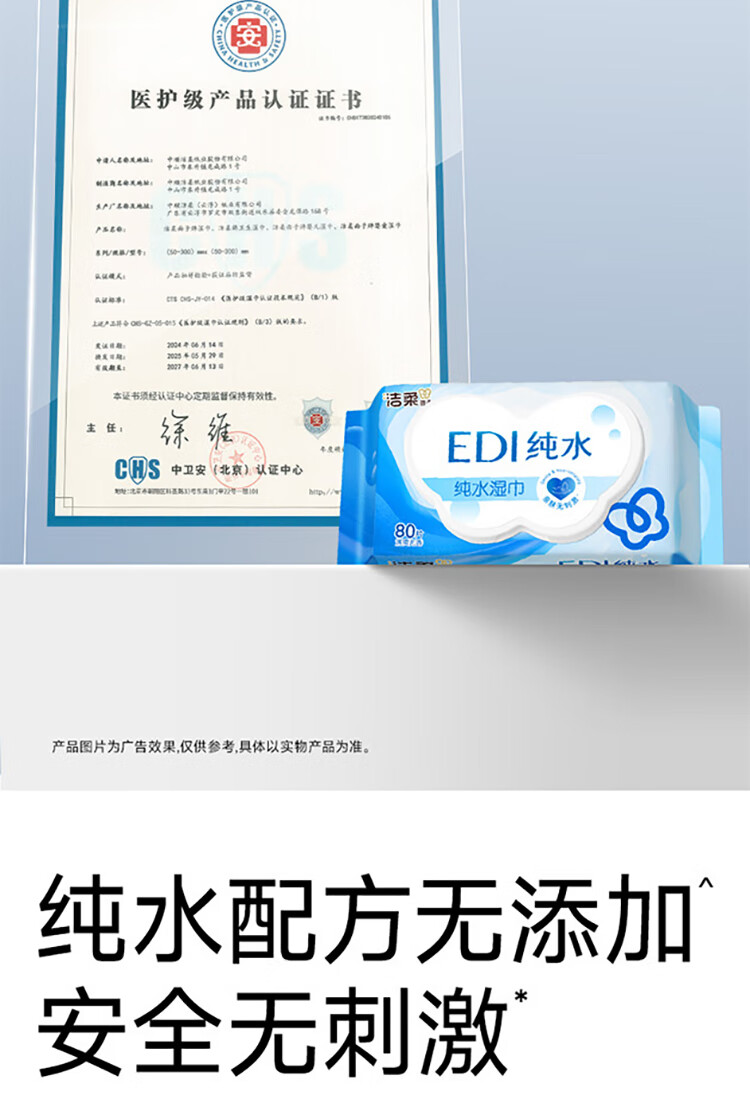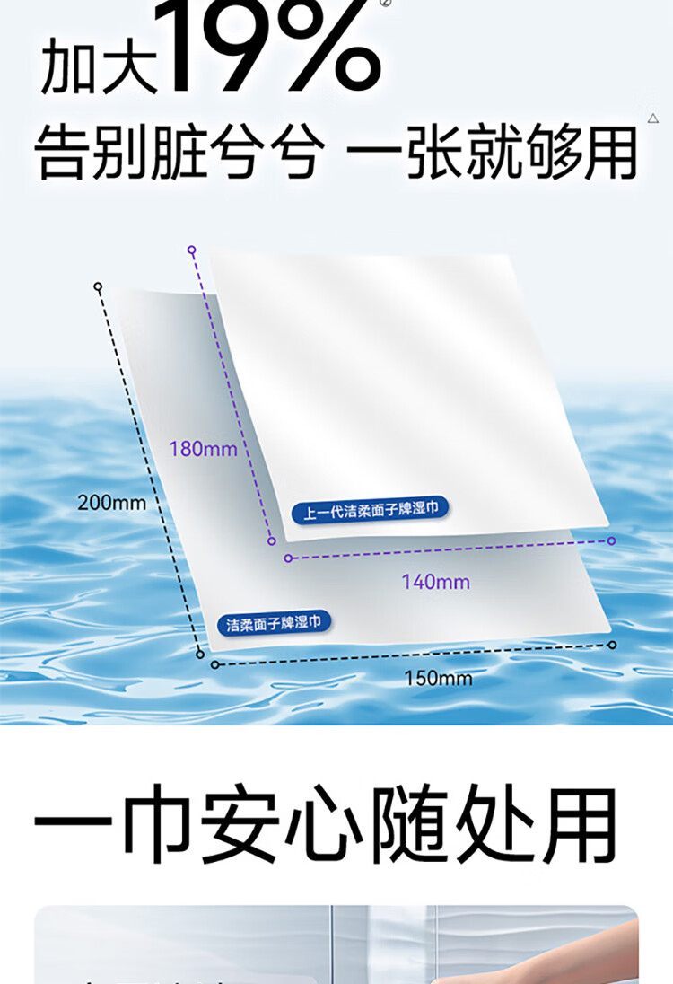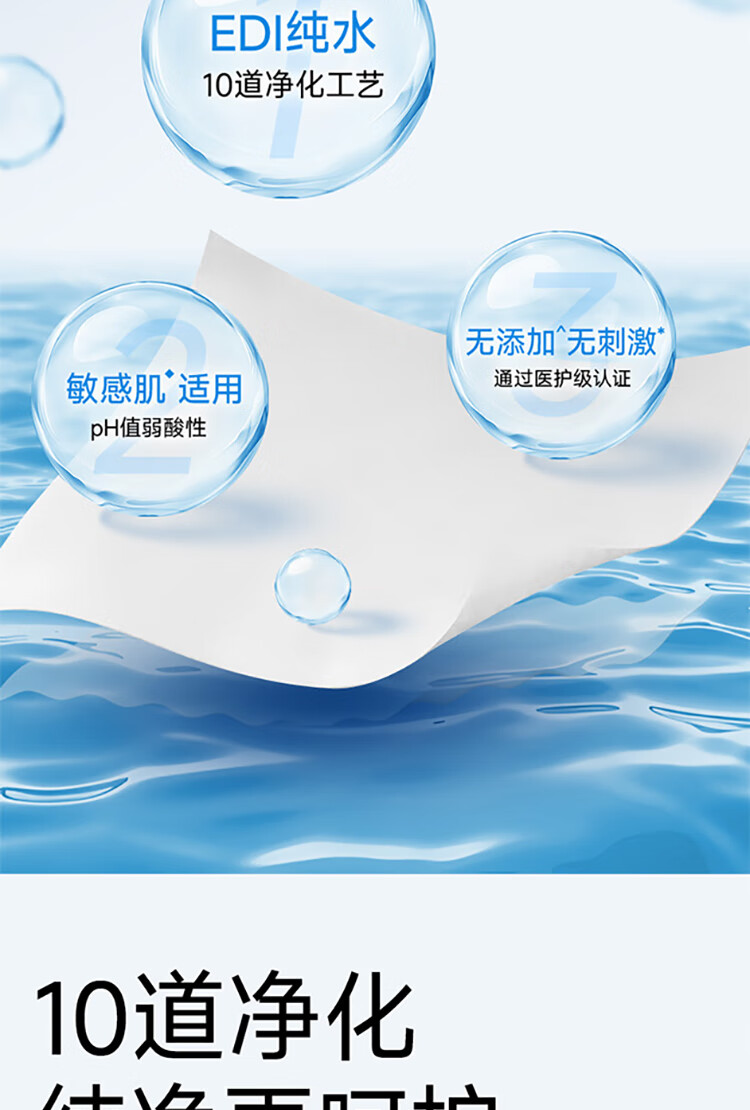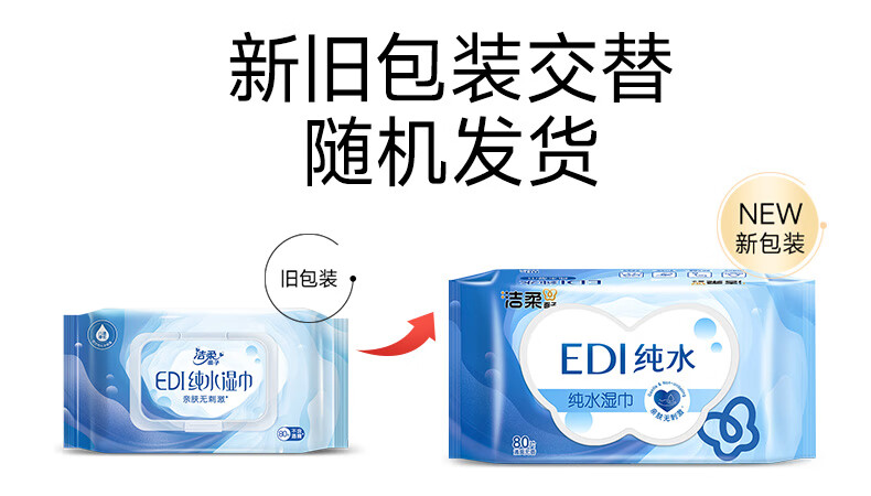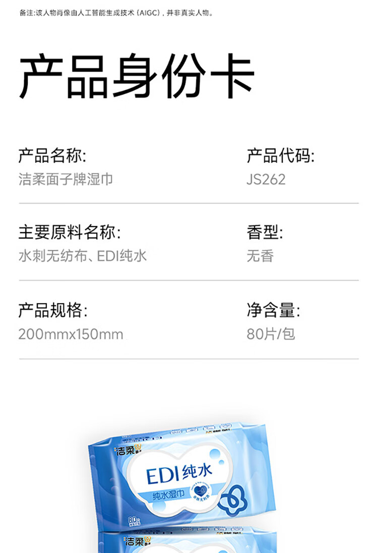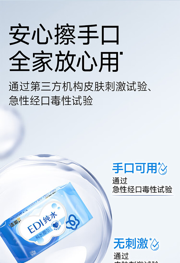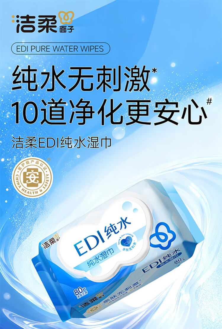 洁柔EDI纯水湿巾80抽*6包大码200*150八道净化洁肤柔婴儿湿纸巾无酒精