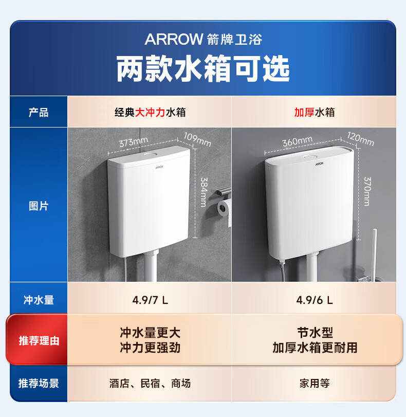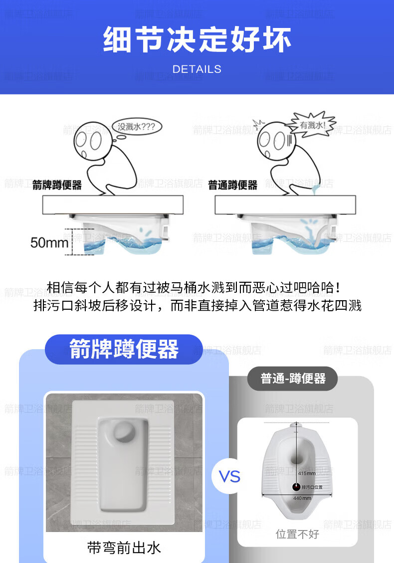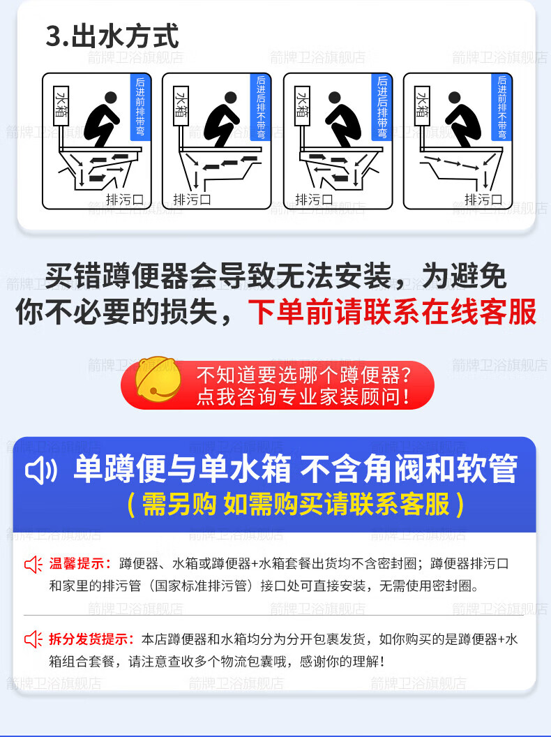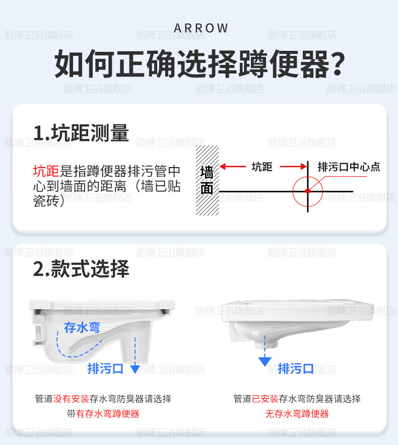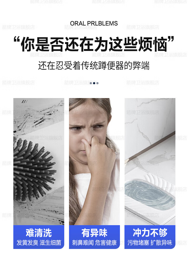 箭牌(ARROW)蹲便器蹲坑家用蹲厕水箱便池蹲坑卫生间大冲力大便器套装 高度256mm带存水弯前排+大冲力水箱
