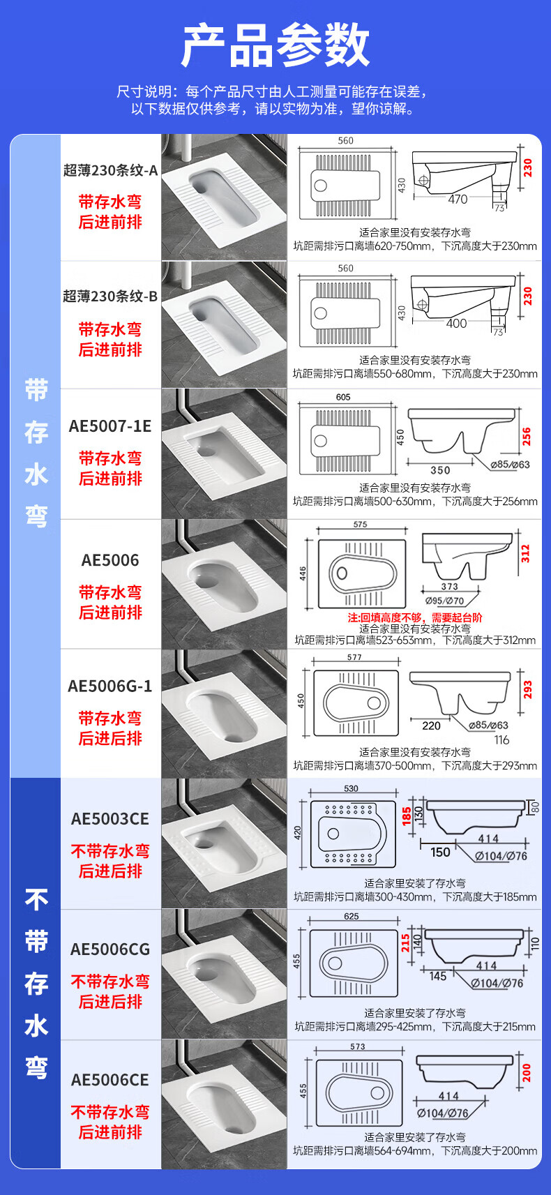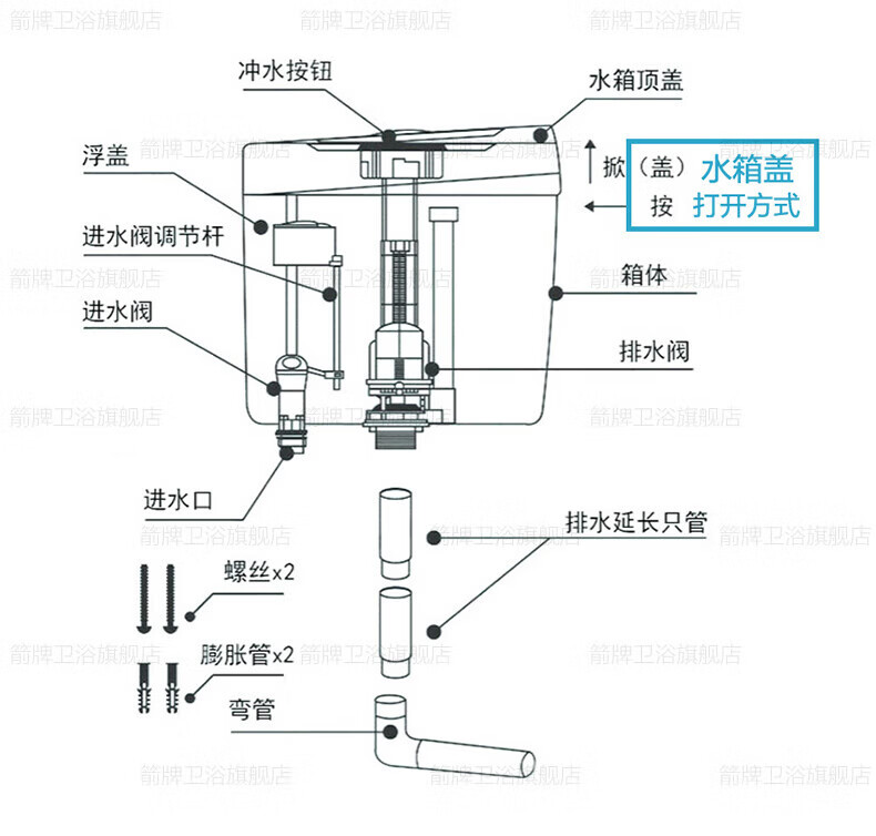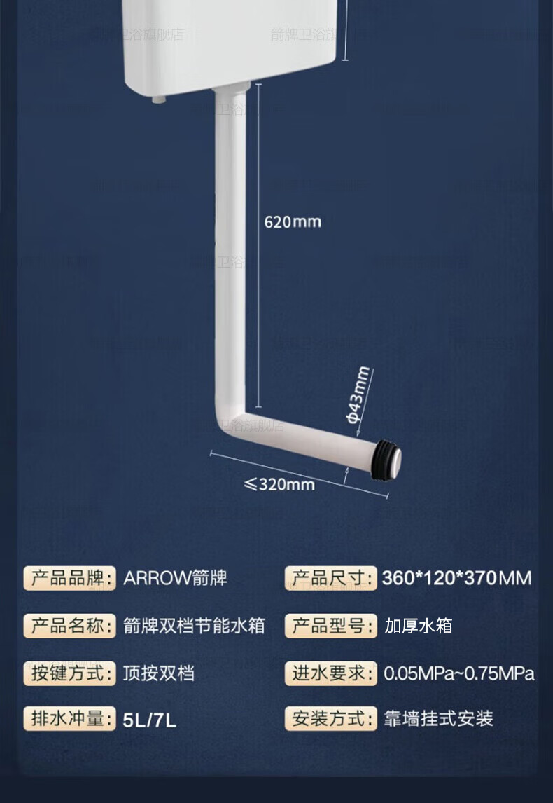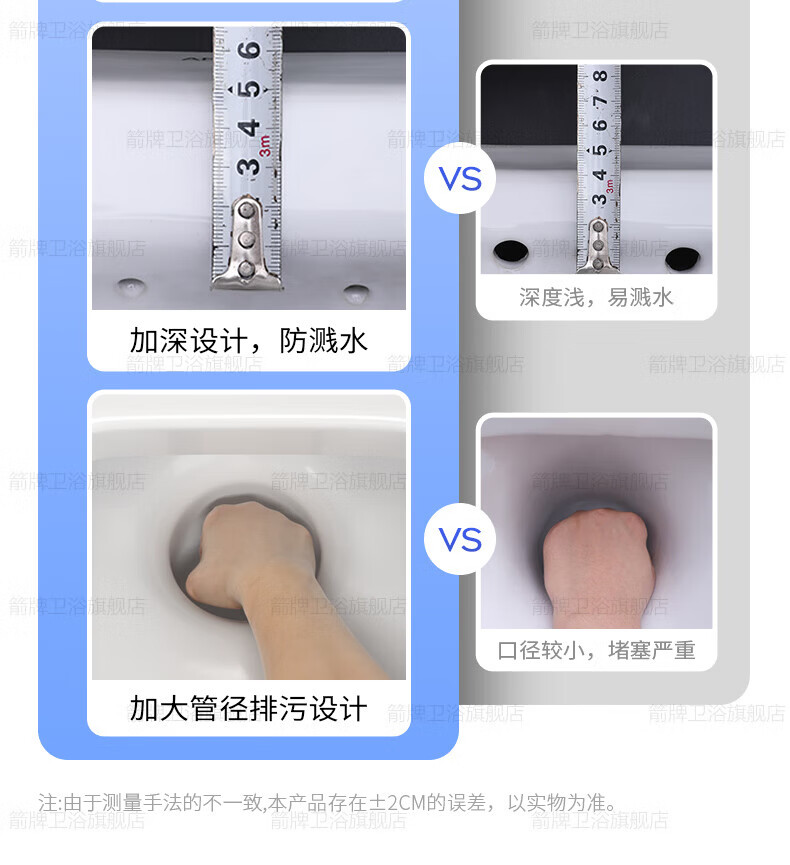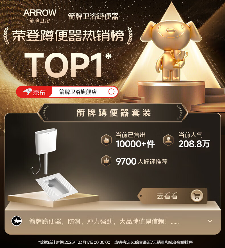 箭牌(ARROW)蹲便器蹲坑家用蹲厕水箱便池蹲坑卫生间大冲力大便器套装 高度256mm带存水弯前排+大冲力水箱