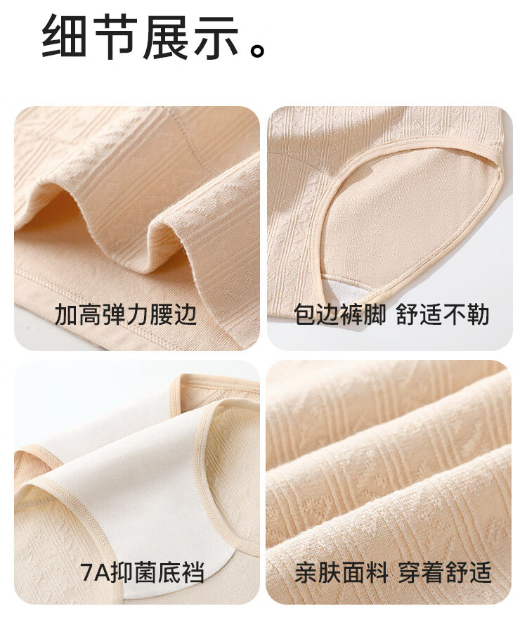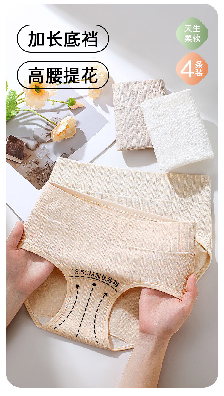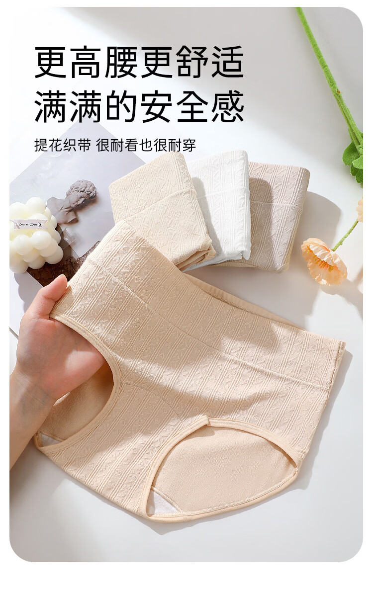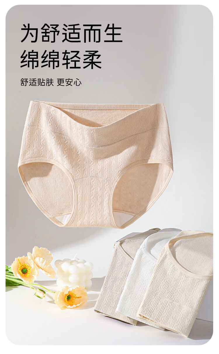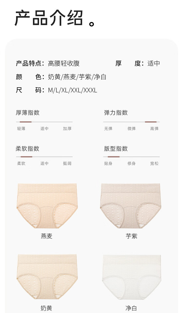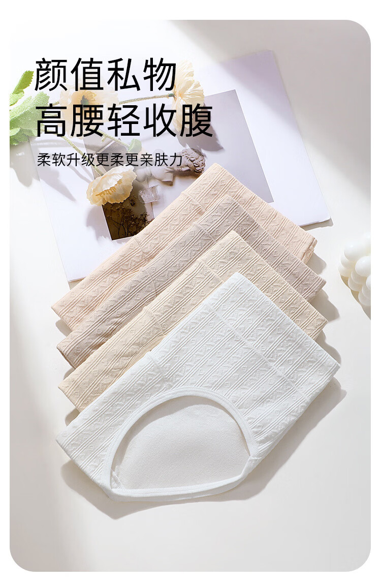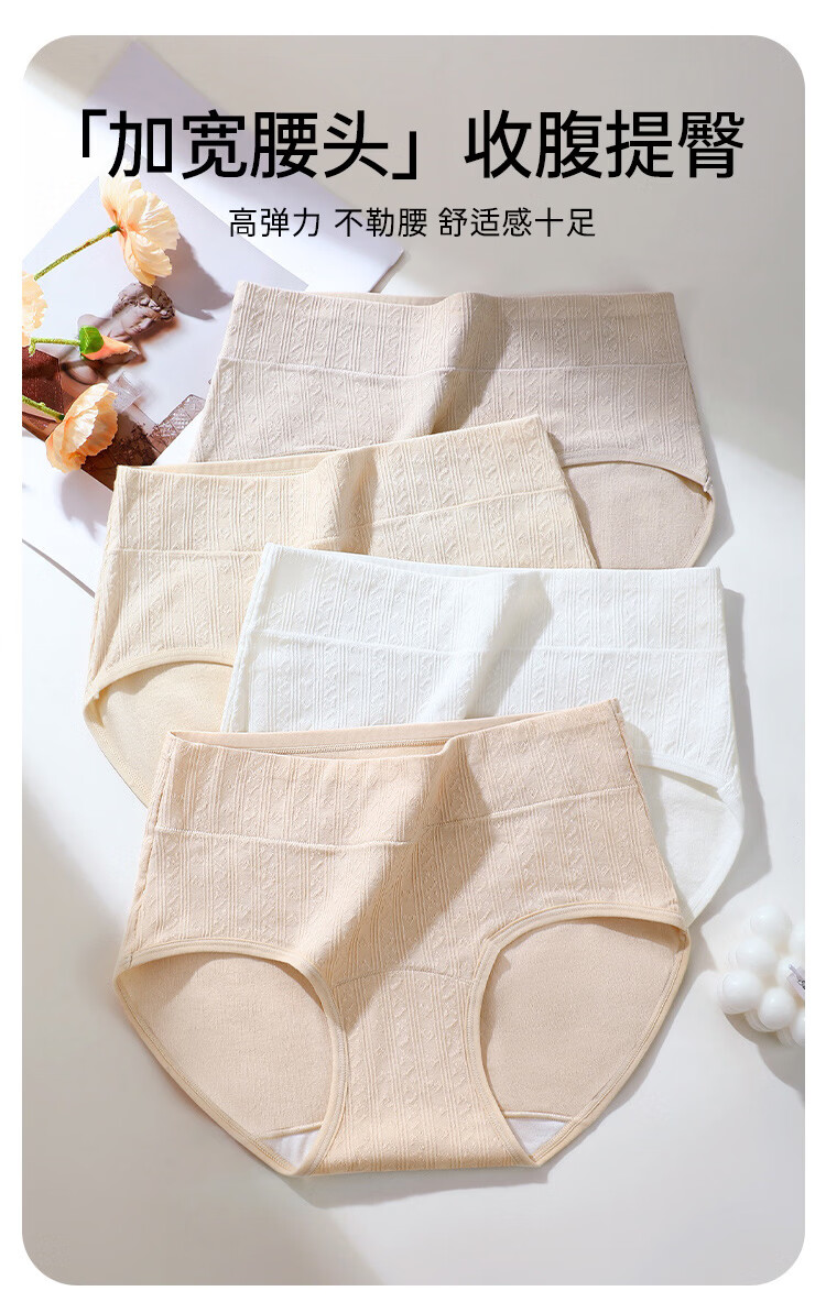 润微【轻束高腰收腹 100%棉抑菌裆】4条薄款透气女士内裤女 奶黄/燕麦/芋紫/净白 M