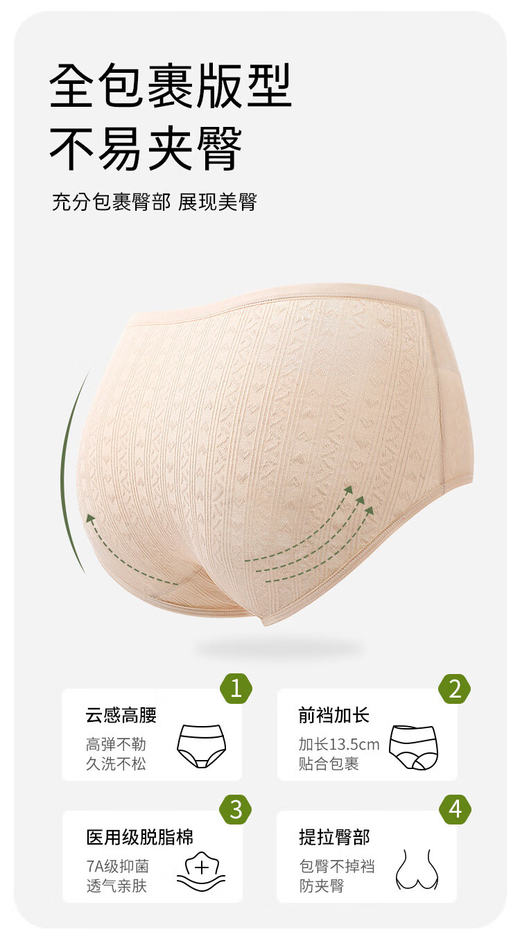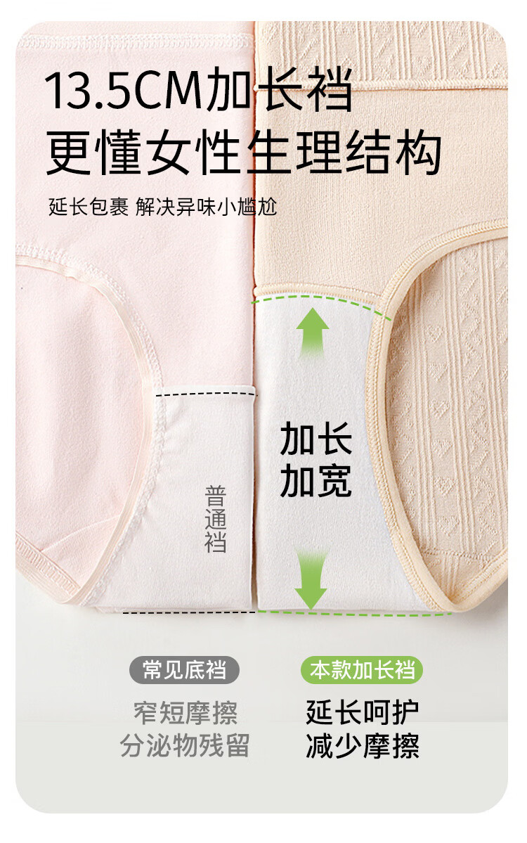 真维斯(Jeanswest)女士内裤女长绒棉抗菌加长裆大码宽松透气短裤女中腰三角裤 【3条】浅肤色+浅绿+米杏色 M 80-100斤