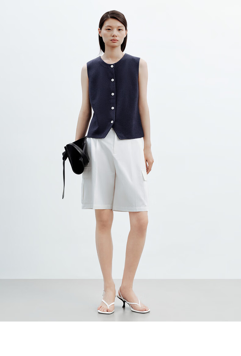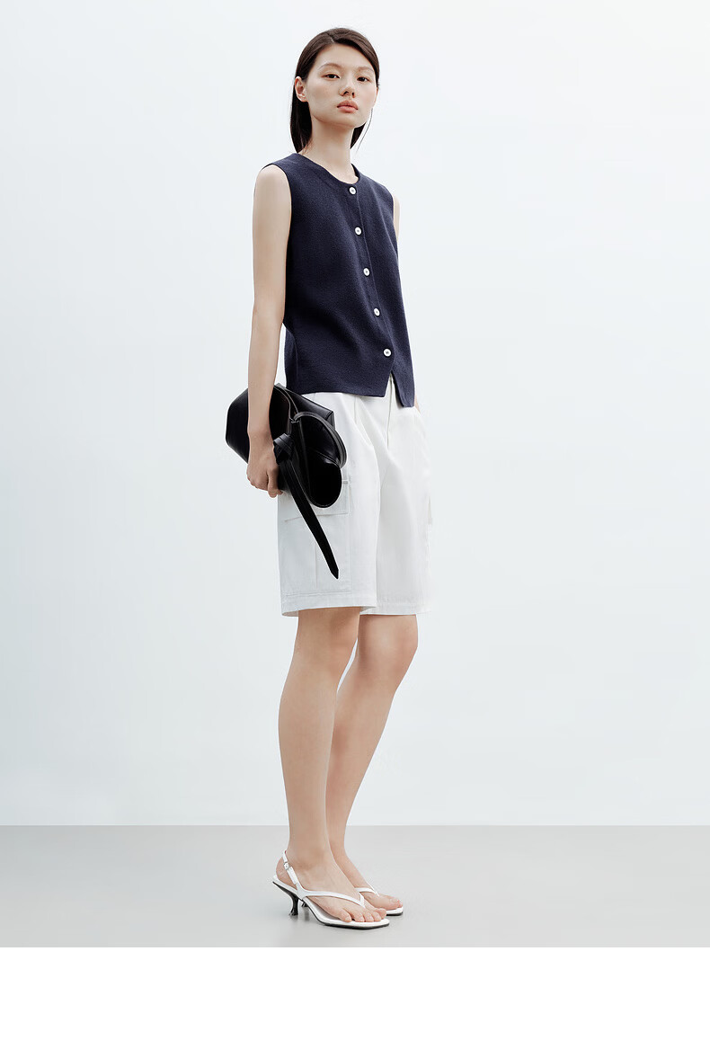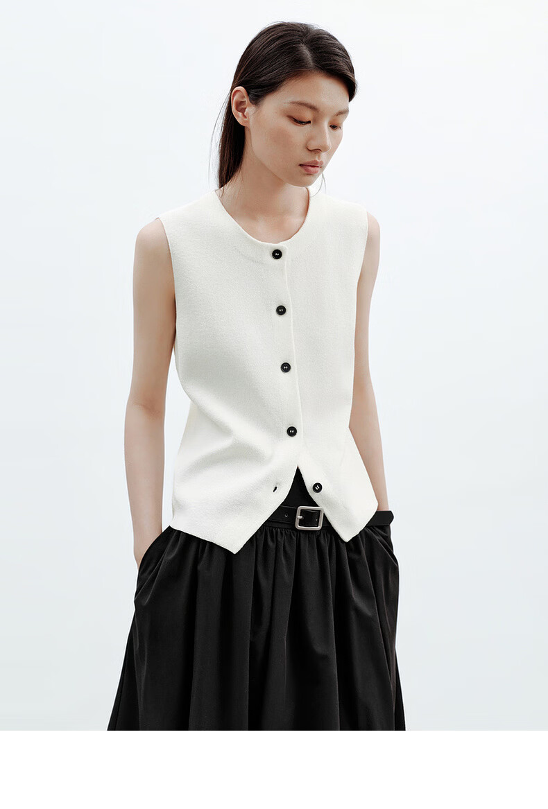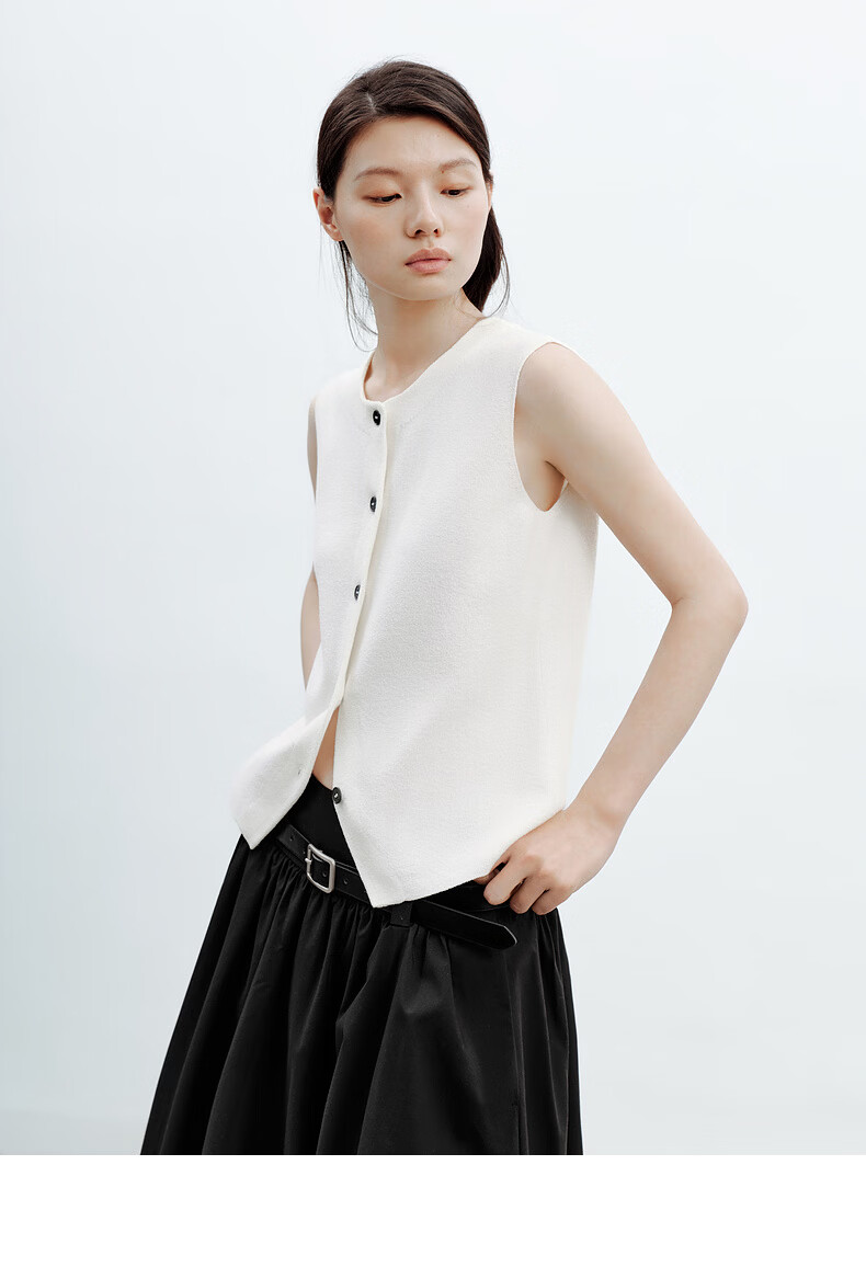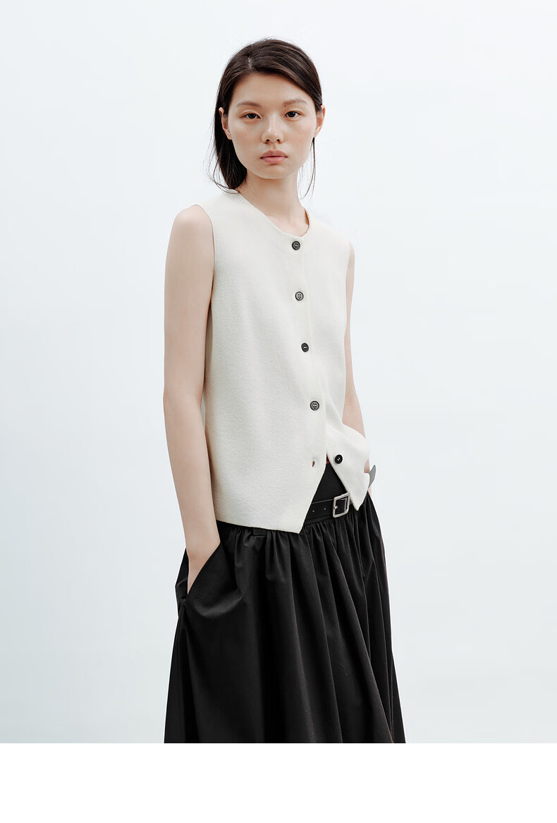H's白色短款西装马夹女26夏季新款高智感微收腰廓形外穿马甲背心 本白 S