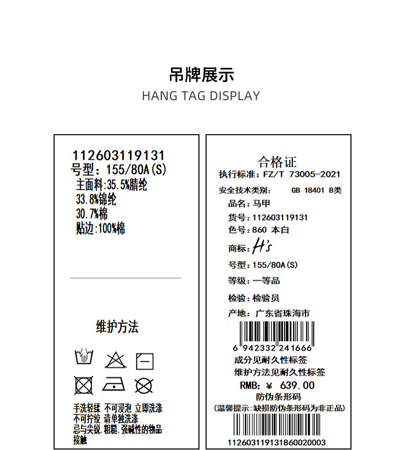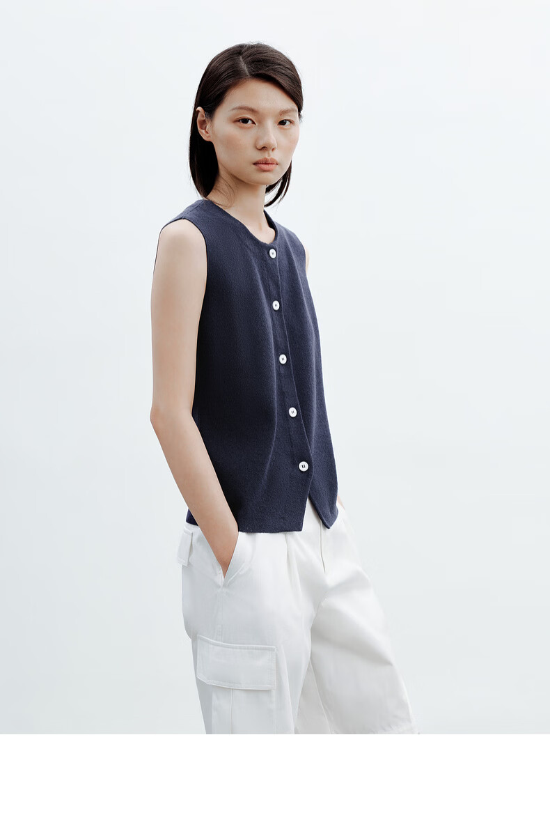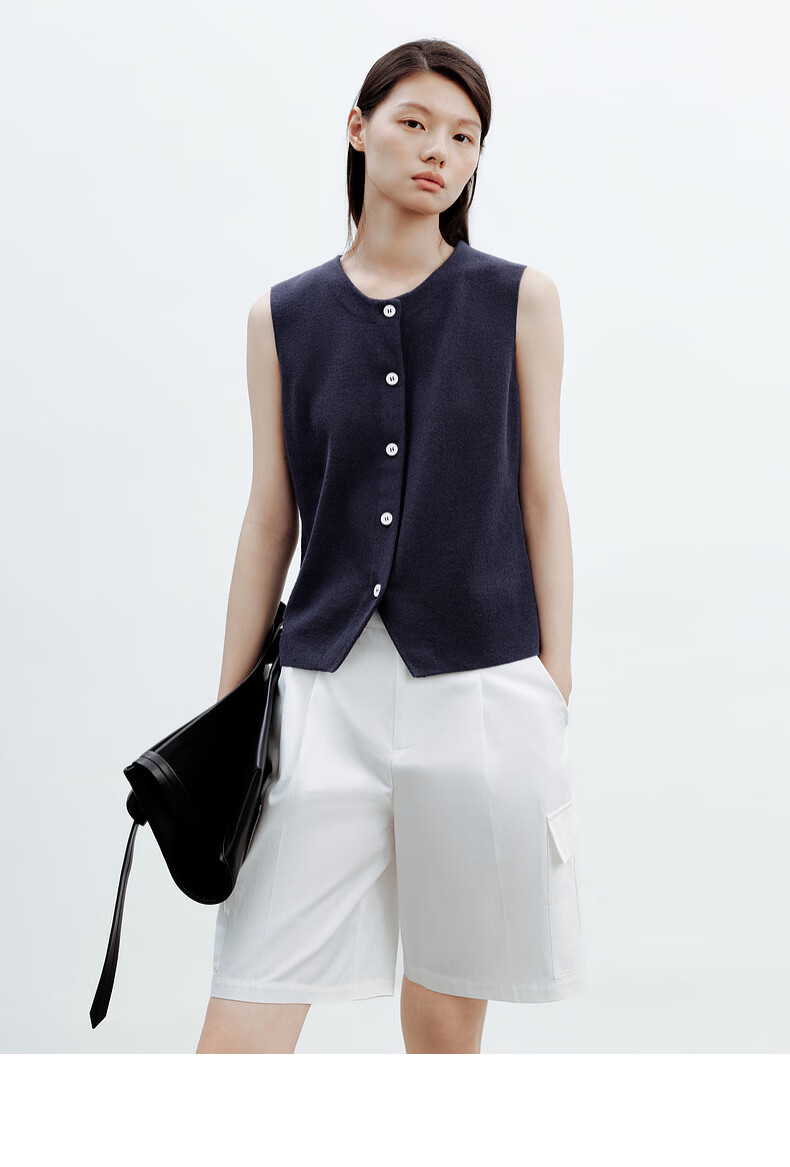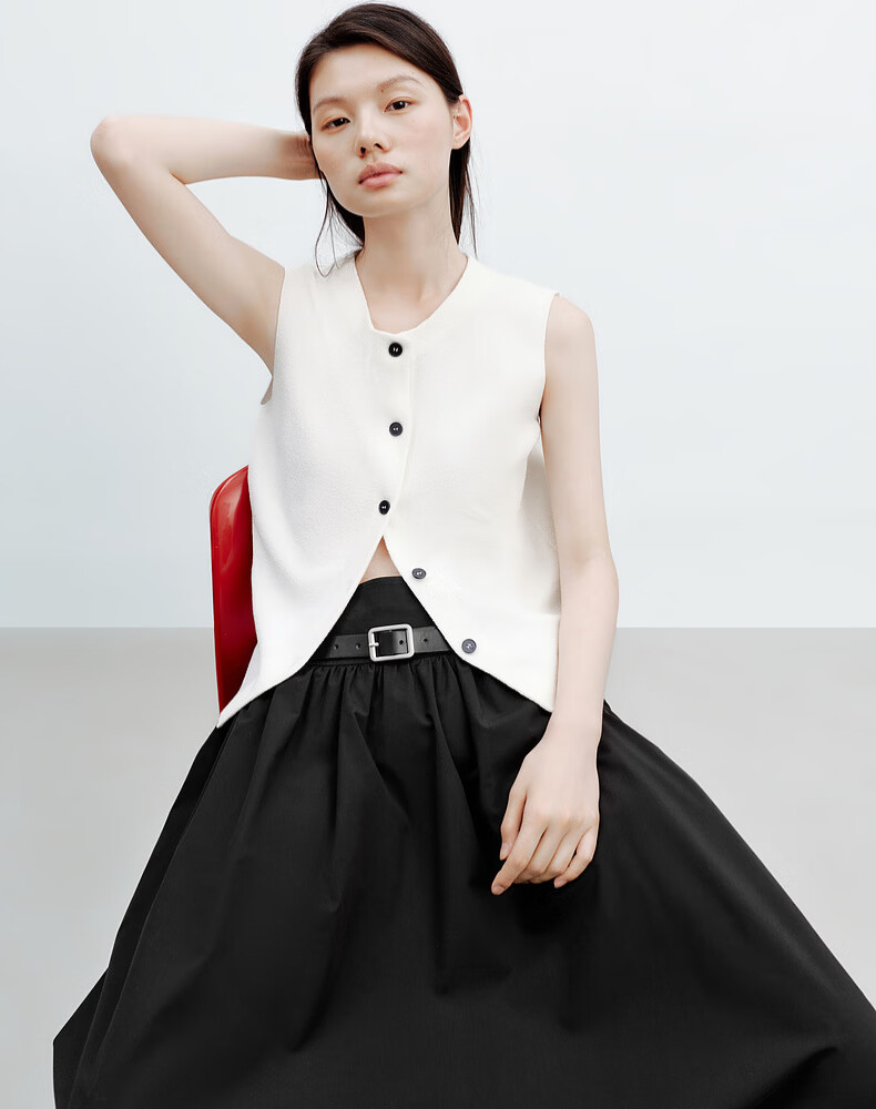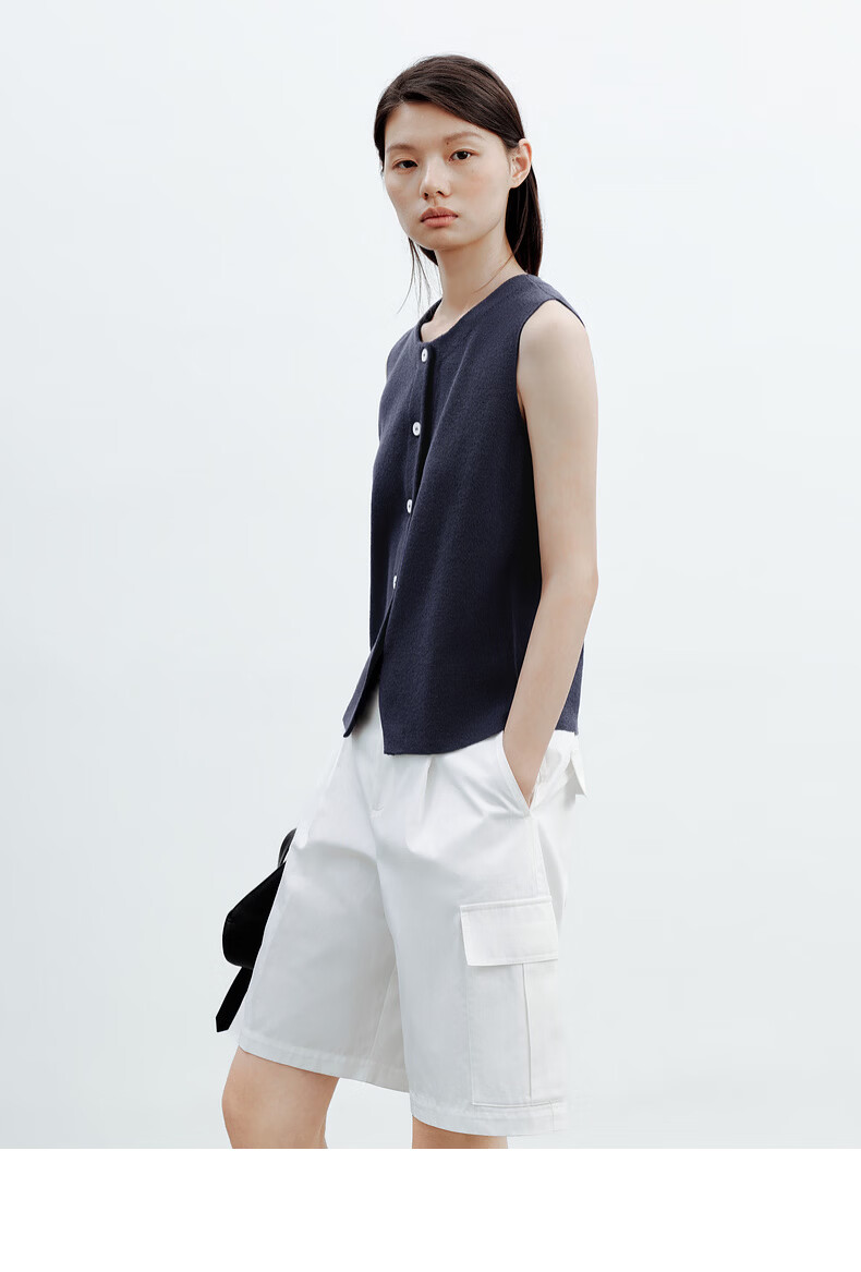H's白色短款西装马夹女26夏季新款高智感微收腰廓形外穿马甲背心 本白 S