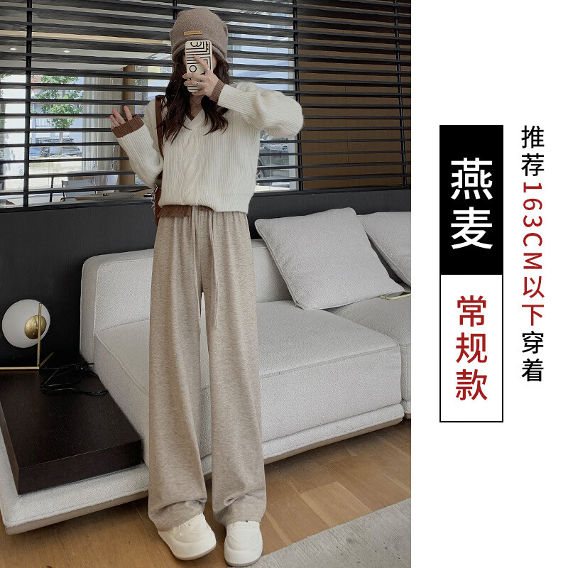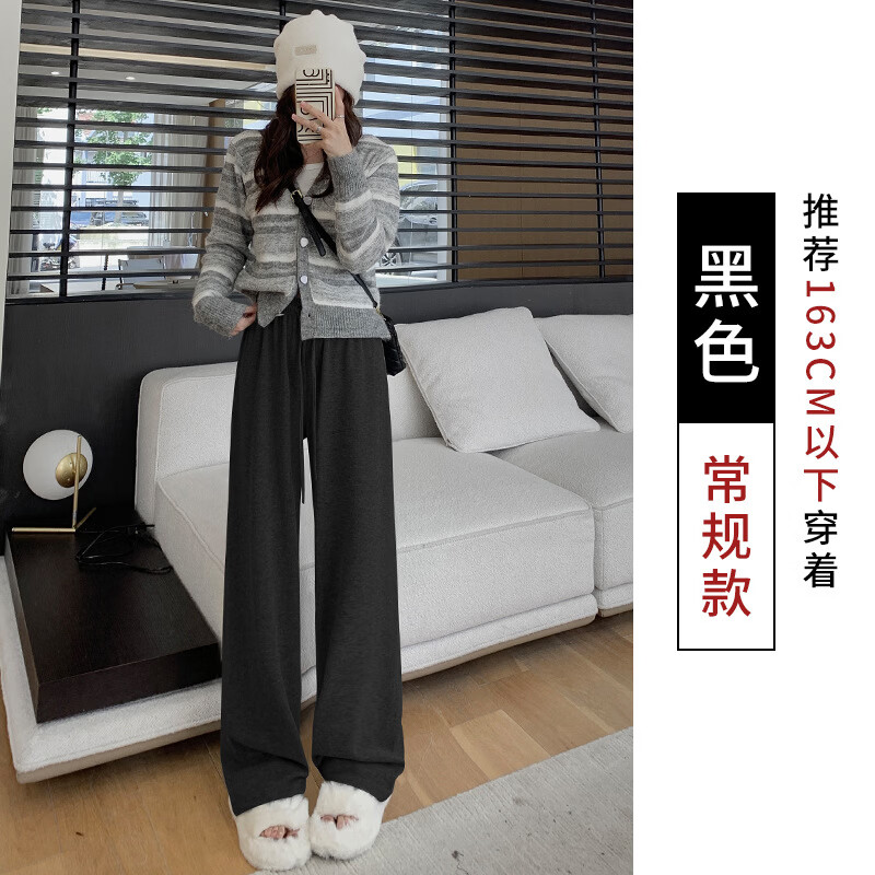 有只绵春季新款针织云朵糯米裤宽松高腰垂感休闲阔腿裤慵懒窄版拖地裤子 【春秋】深灰 常规-无口袋 均码 85-140斤
