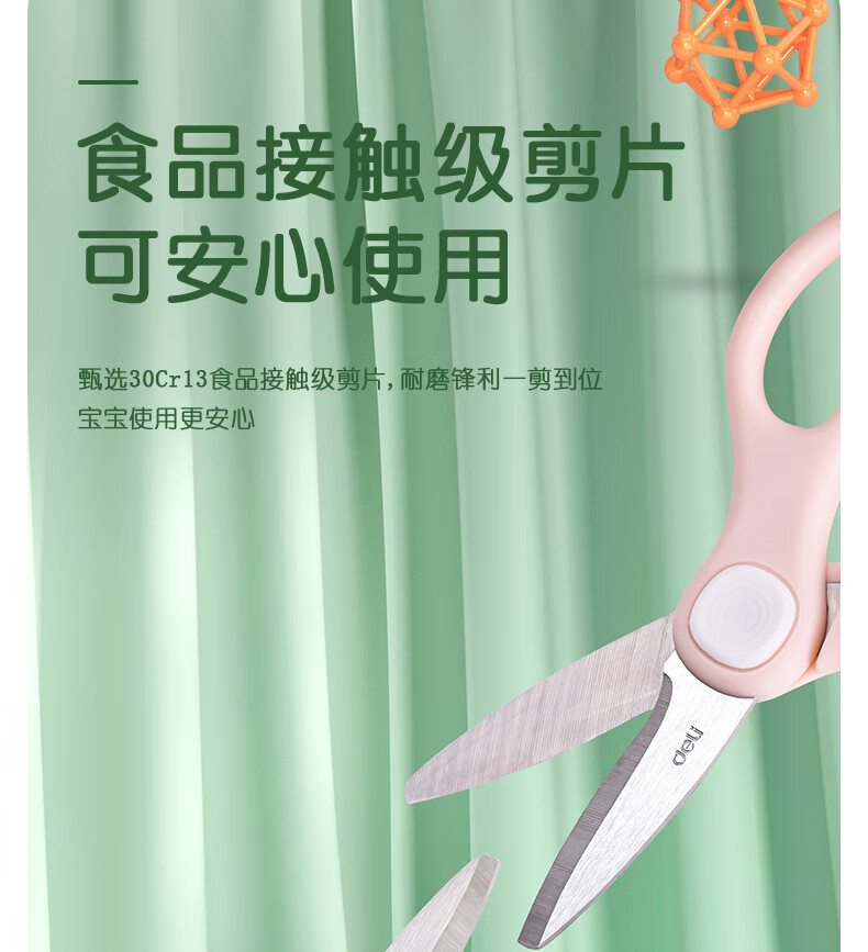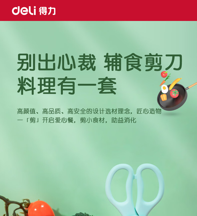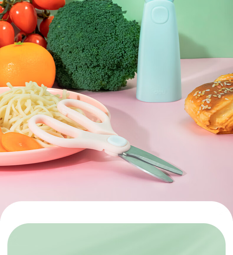 得力(deli)婴童辅食剪刀 儿童手动不锈钢食物剪研磨器 食品级不锈钢辅食工具 77773 绿色
