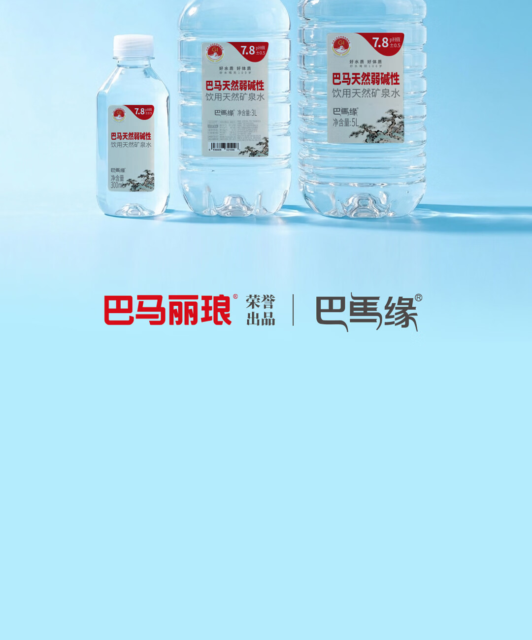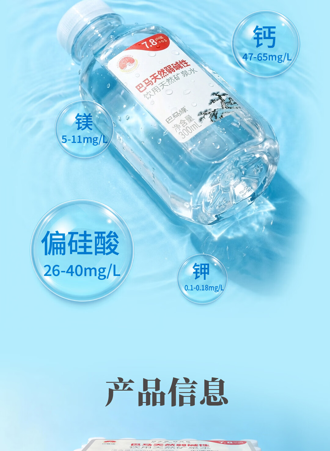 巴马缘巴马丽琅出品天然弱碱性饮用矿泉水300ml*24瓶膜包 山姆同产地