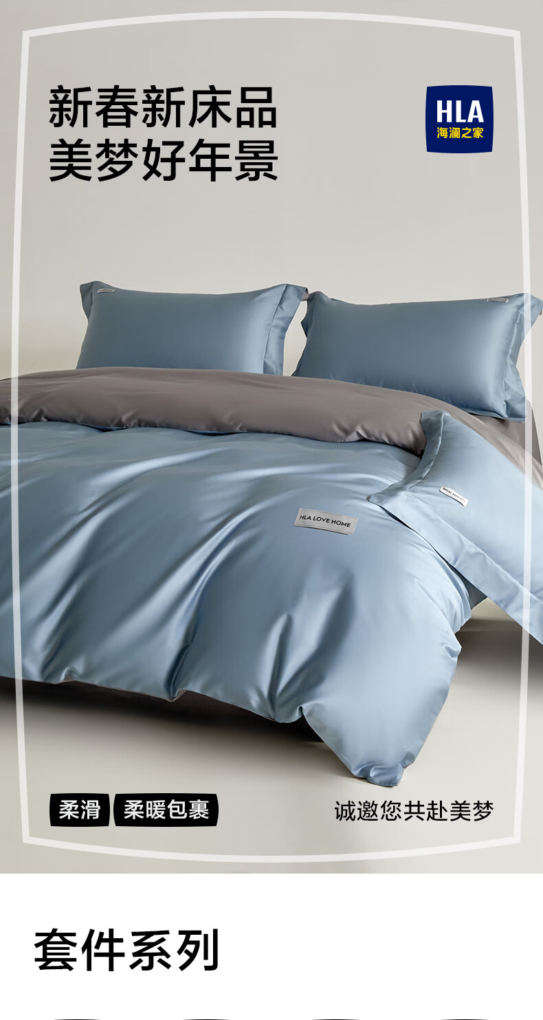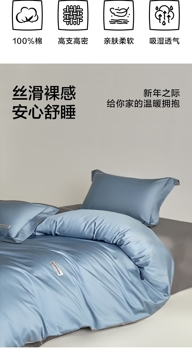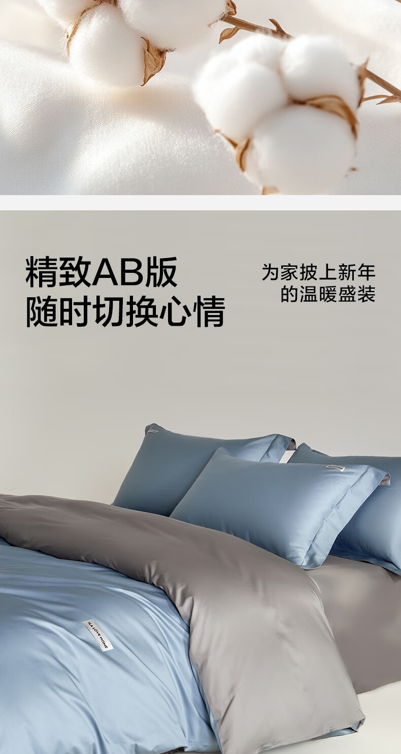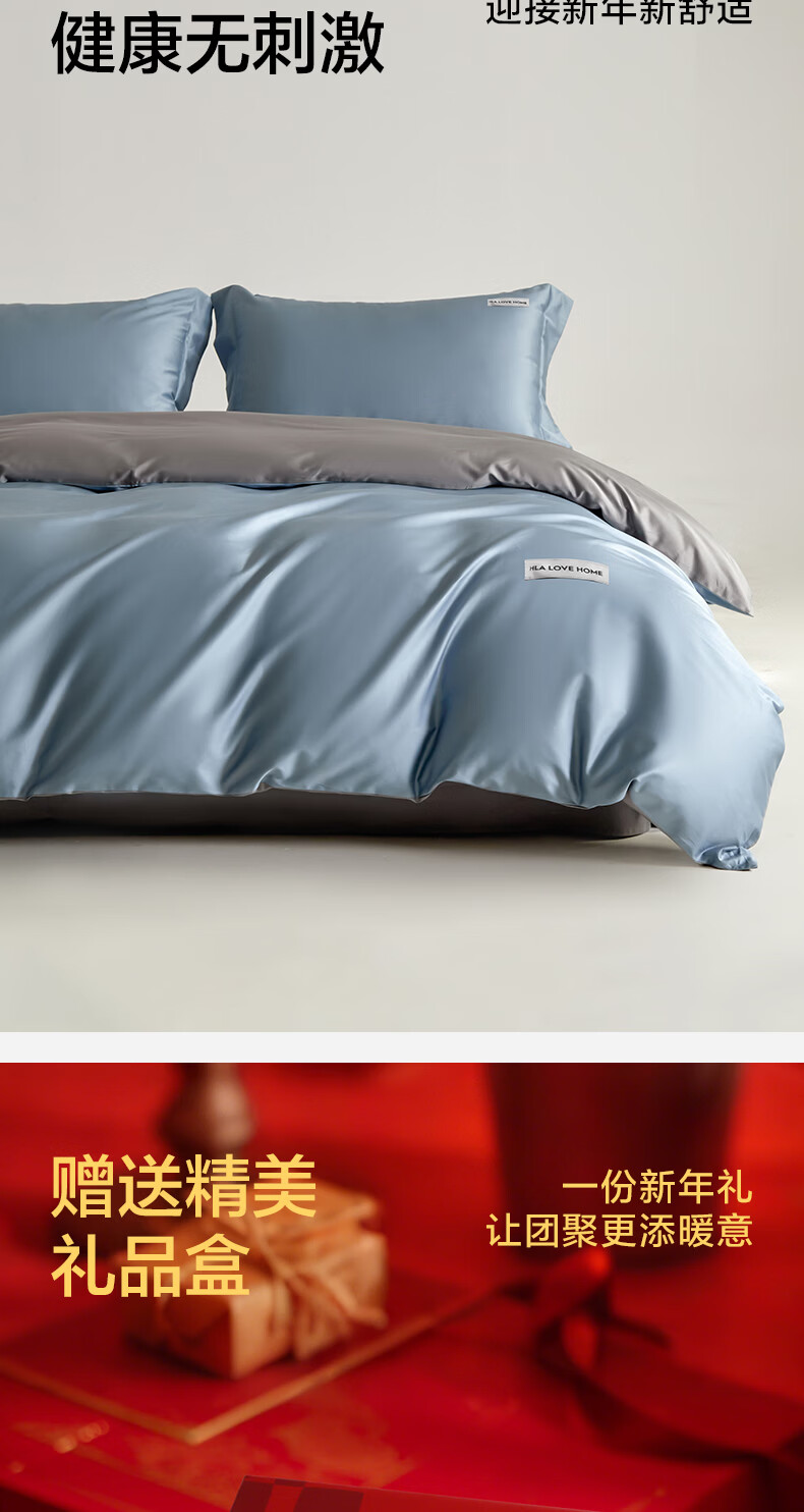 海澜之家(HLA)2026新年礼物60支长绒棉床上四件套高档轻奢礼盒装送员工年会礼品 白桃茶粉【新年礼盒 A类轻奢 60支长绒棉 】 三件套被套150*200 床单款 160*230