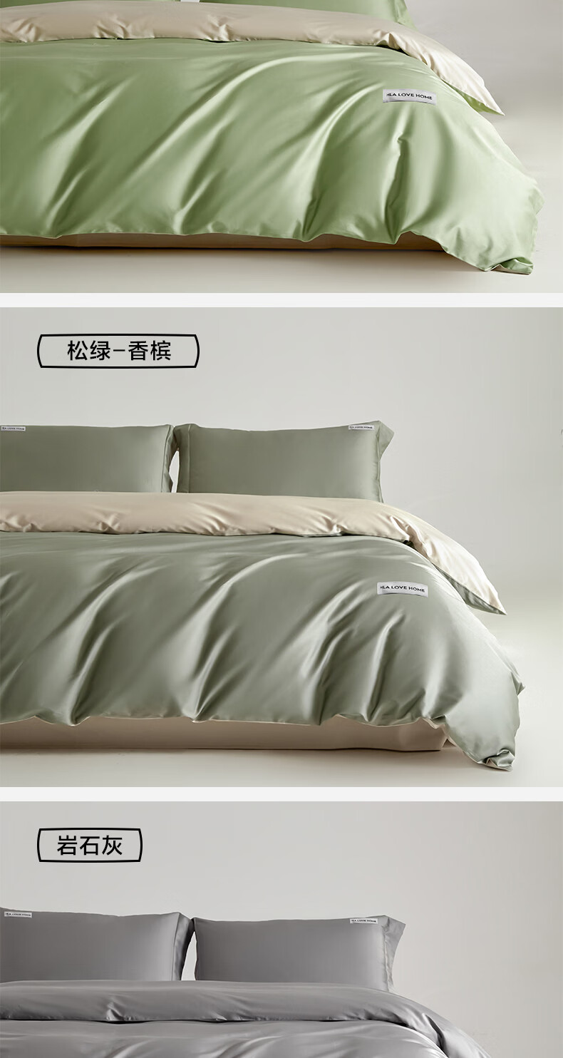 苏萱2026新款热卖水洗冰丝夏被四件套夏季夏凉被空调被可机水洗单双人 亚丁绿+冰川灰 单人夏被-150*200cm