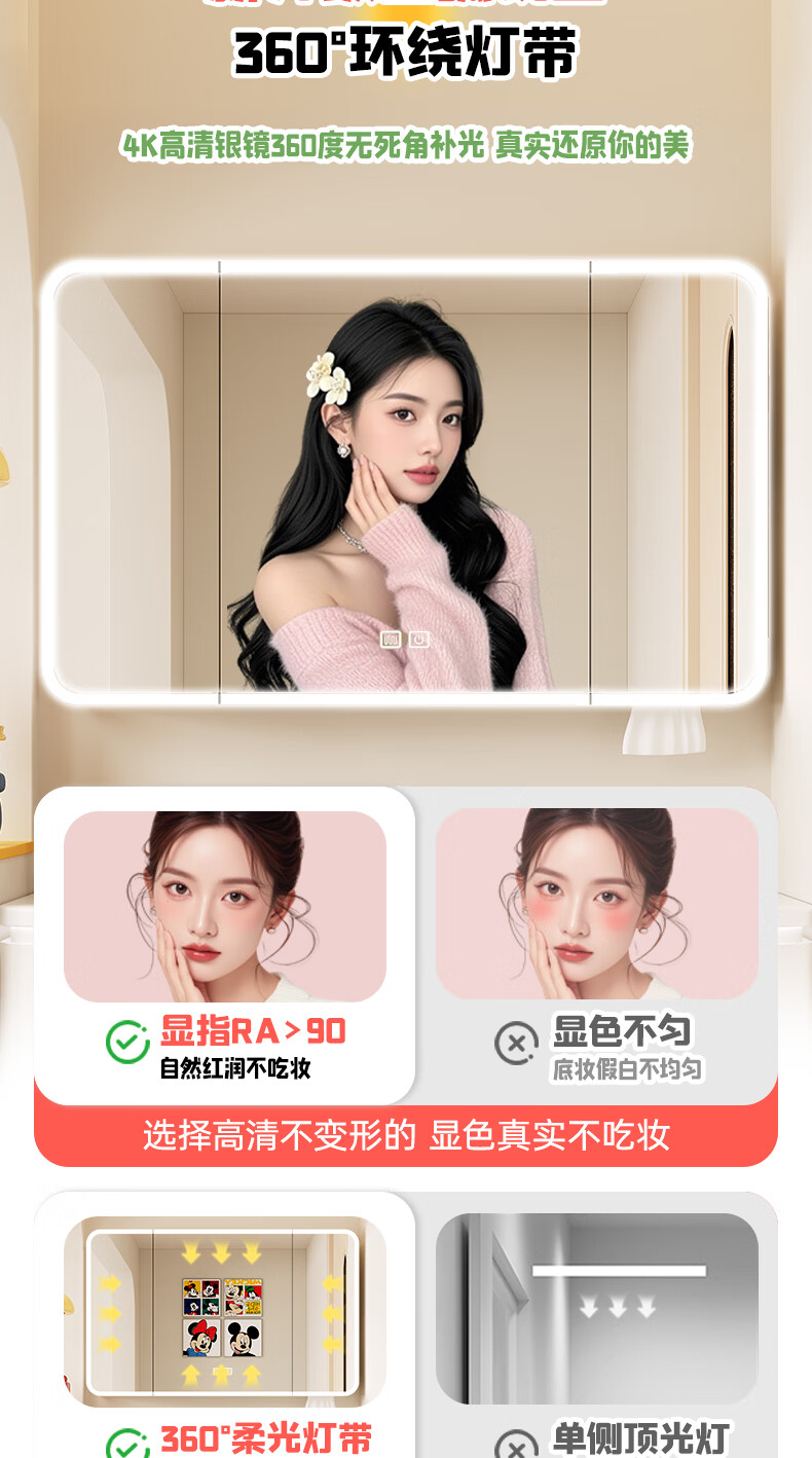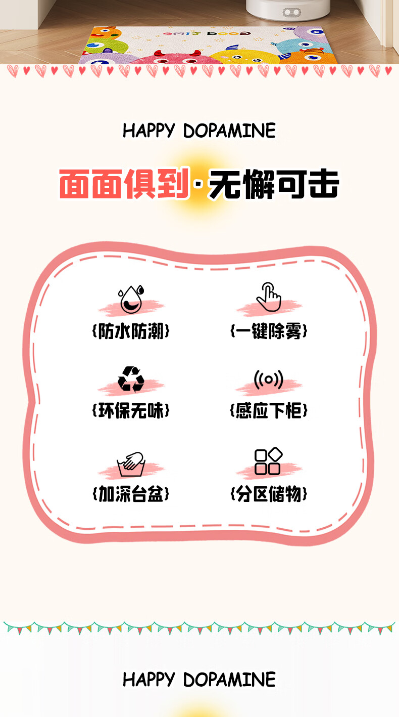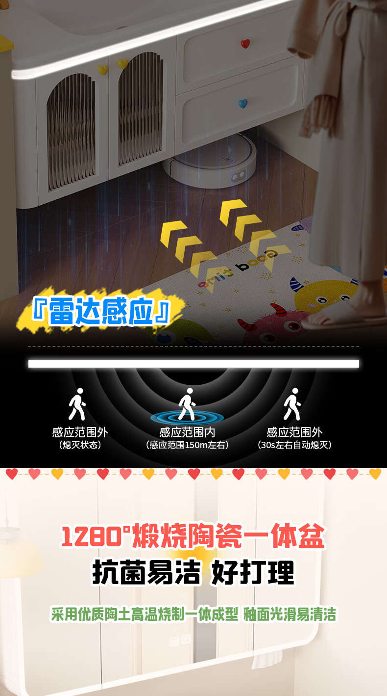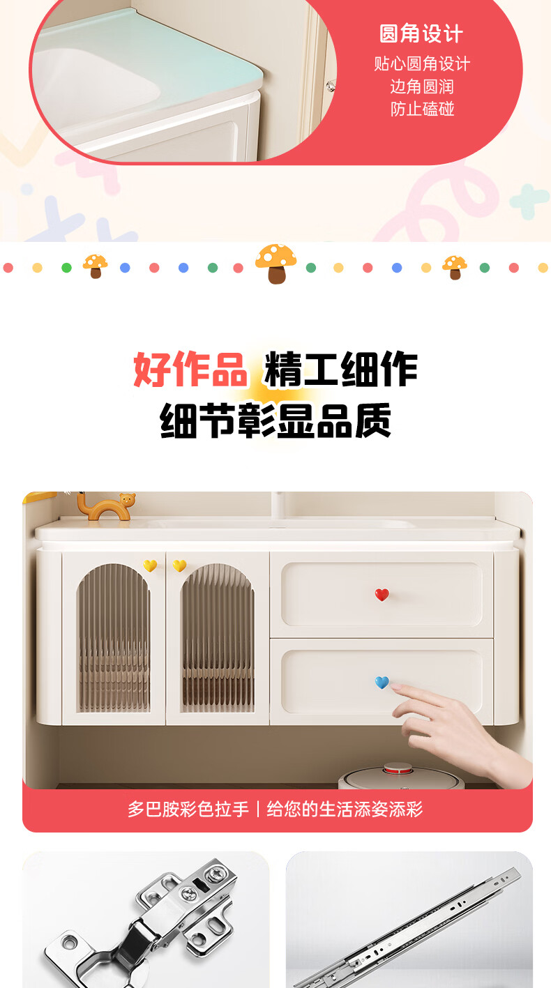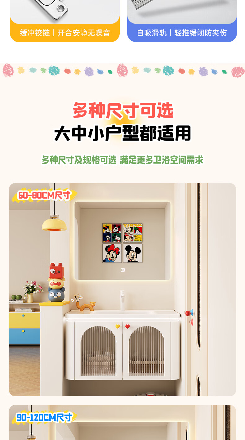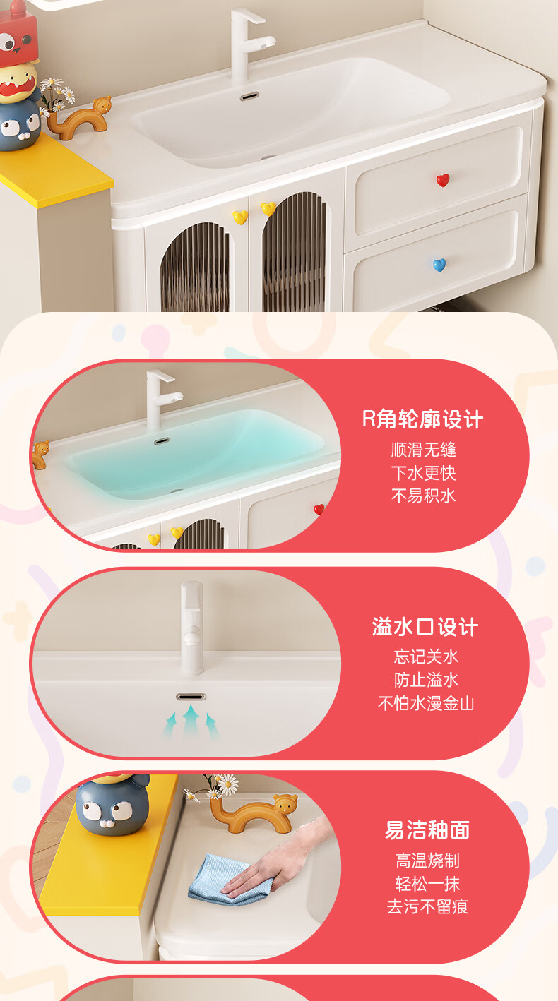 浴美优品多巴胺浴室柜实木陶瓷一体盆卫生间洗手盆洗脸盆柜组合浴柜洗漱台 60cm+升降抽拉龙头+智能方镜 【多巴胺】浴室柜/送安装