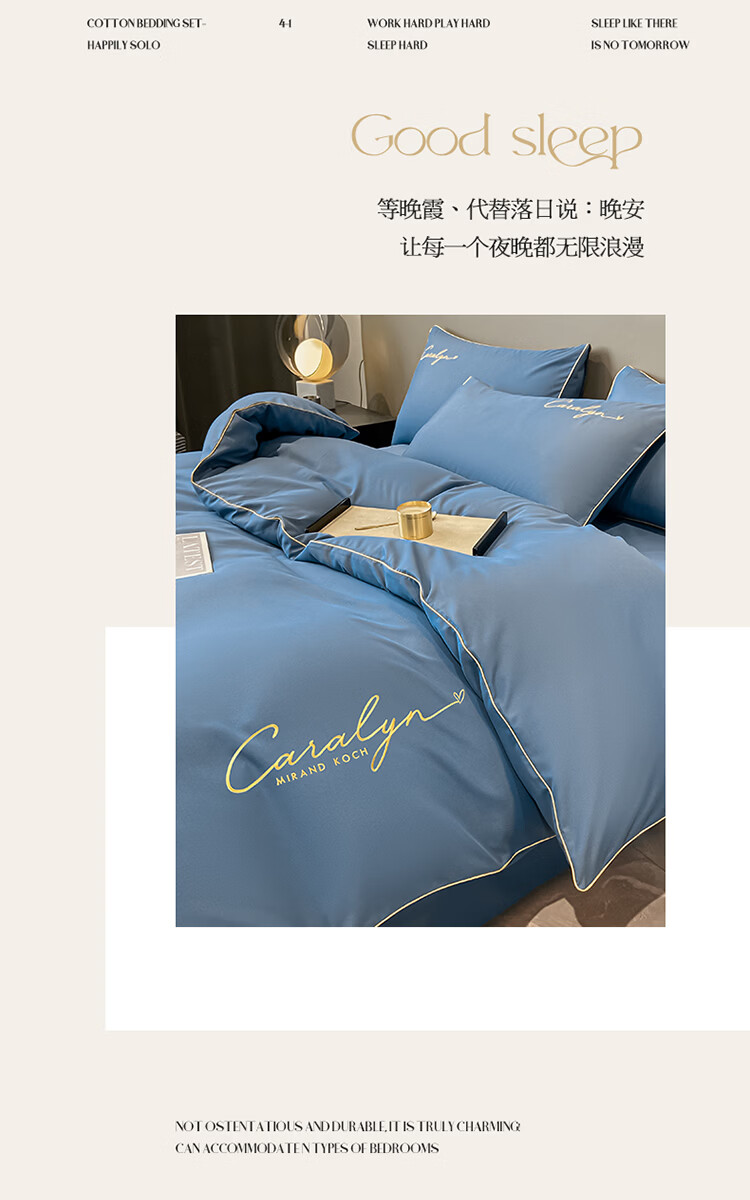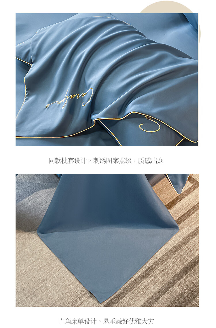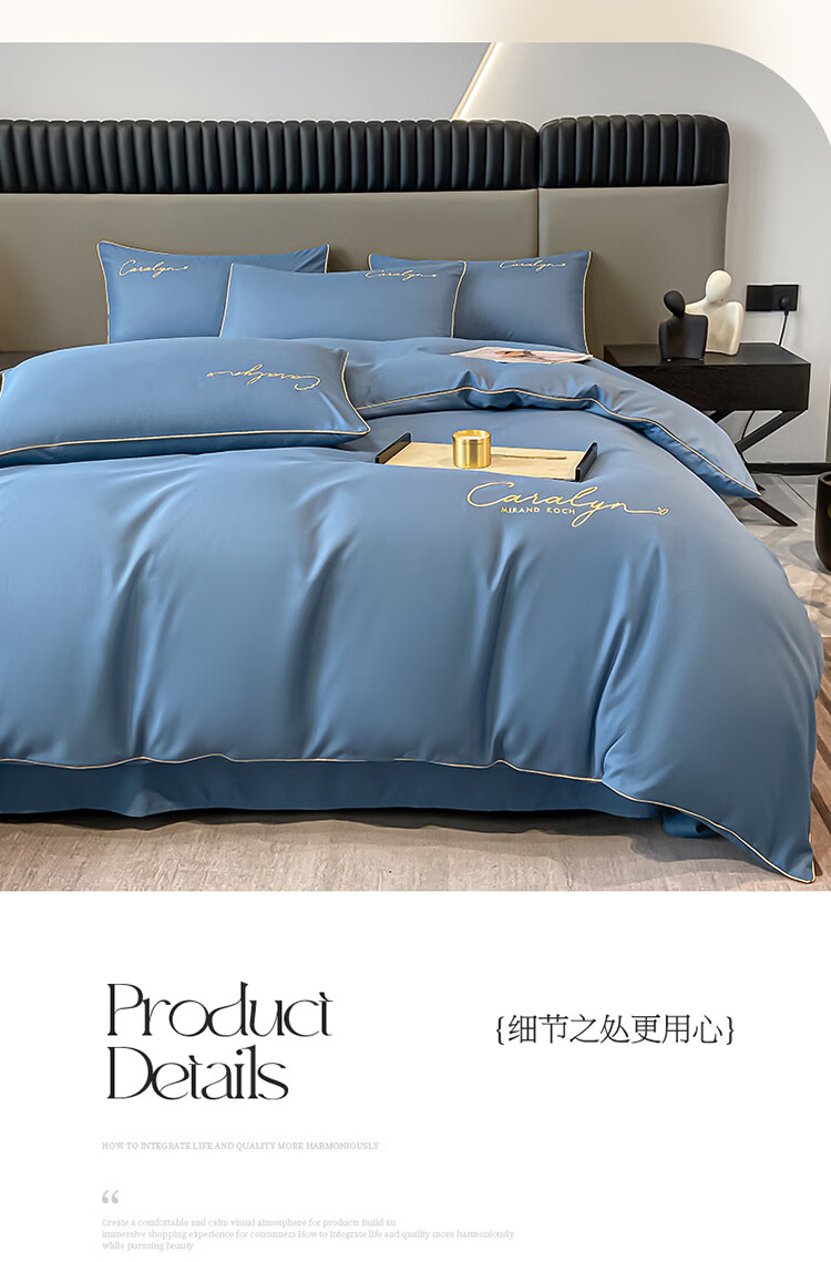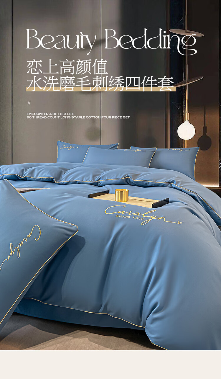 无印良品简约磨毛刺绣春秋被子1.5x2米棉被单人被褥被芯双人被床上四件套 宾利蓝【磨毛刺绣 亲肤细腻】 1.2m三件套床单款被套150*200cm+3斤被子 【春秋被】