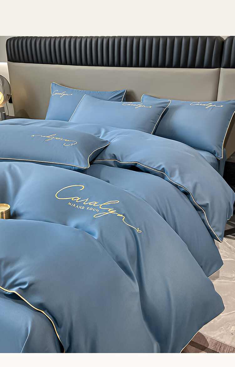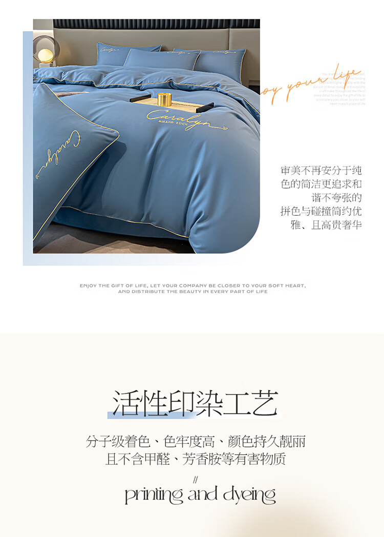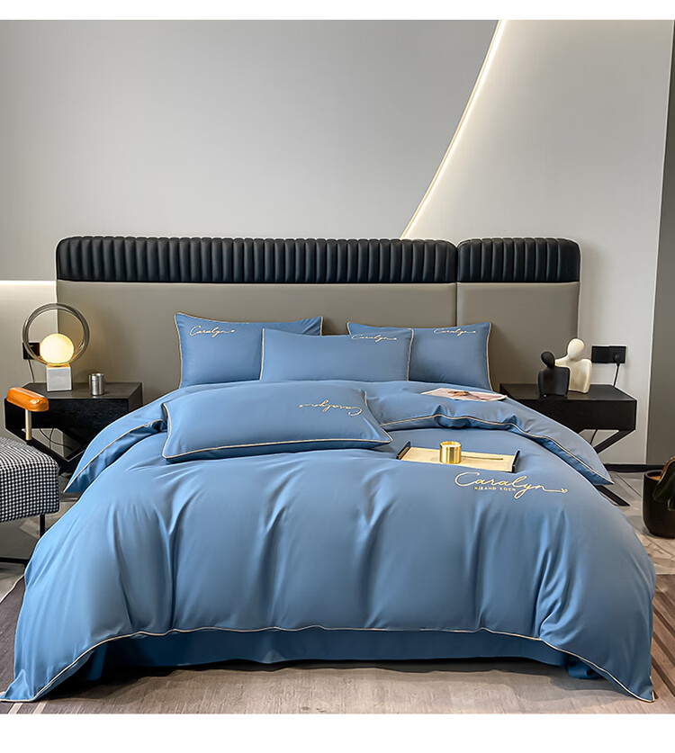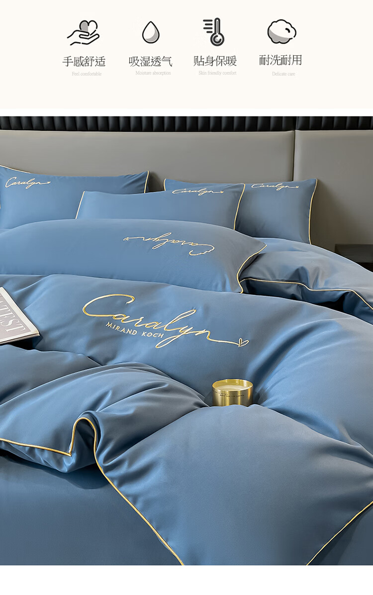 无印良品简约磨毛刺绣春秋被子1.5x2米棉被单人被褥被芯双人被床上四件套 宾利蓝【磨毛刺绣 亲肤细腻】 1.2m三件套床单款被套150*200cm+3斤被子 【春秋被】