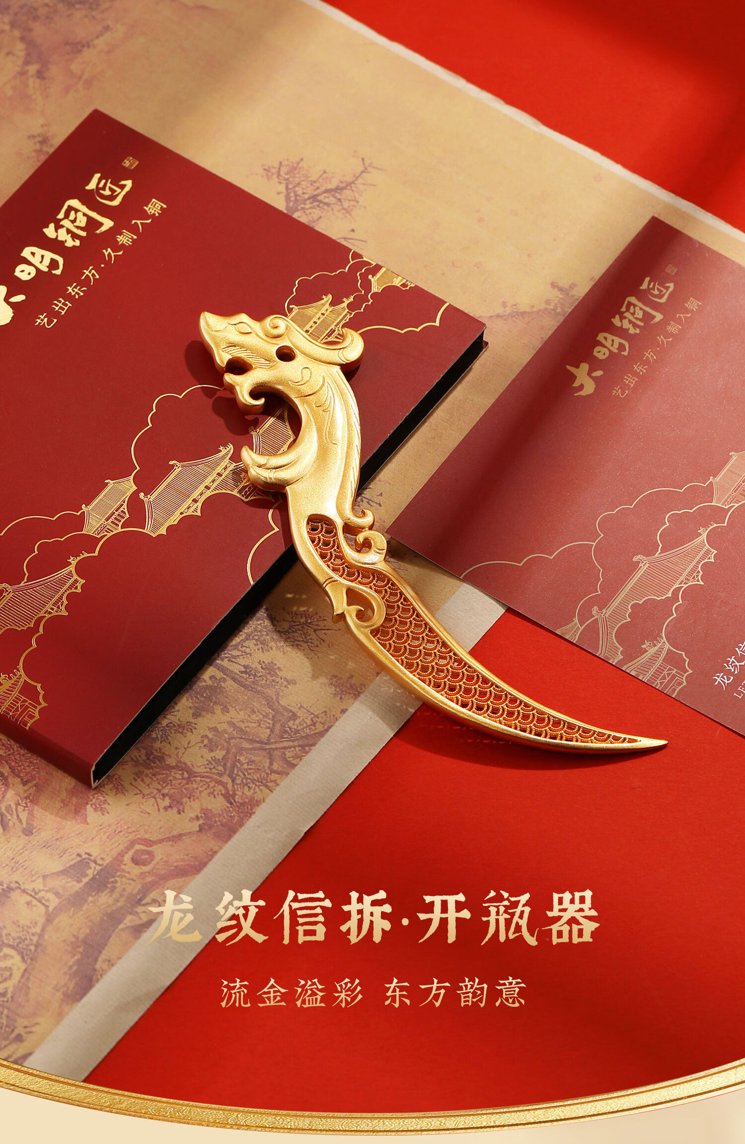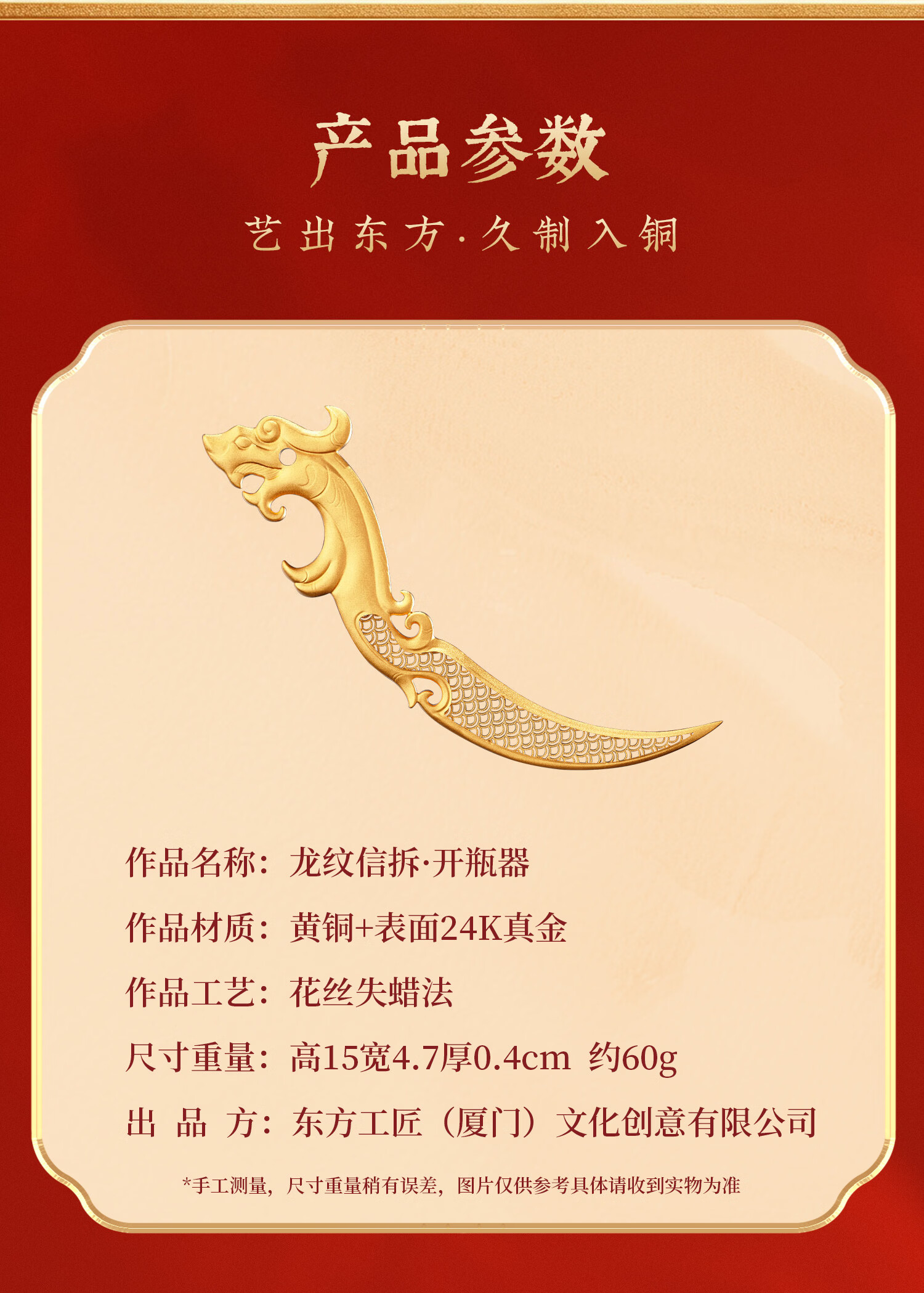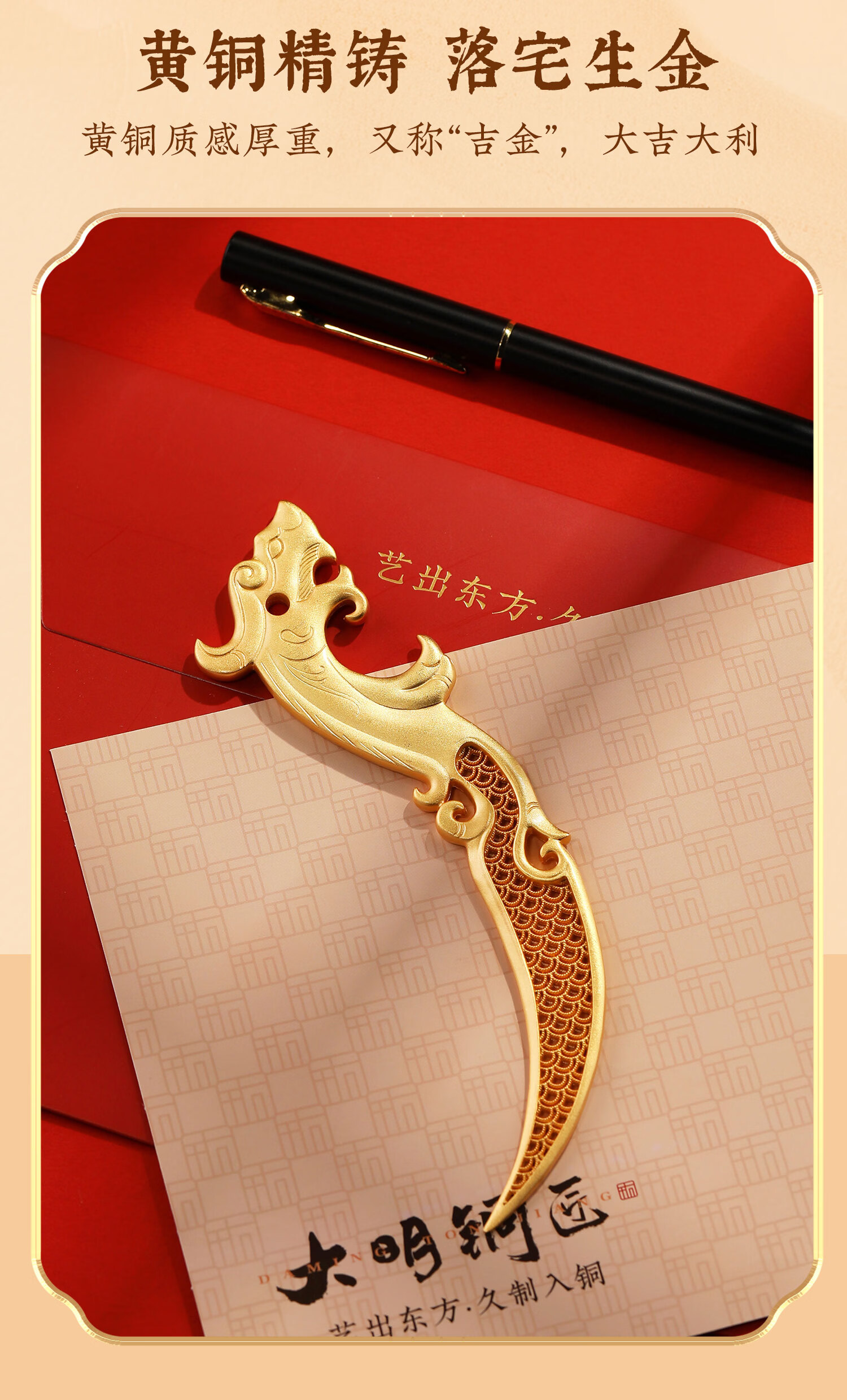 大明铜匠黄铜龙纹信拆摆件开瓶器花丝工艺品书房客厅创意装饰乔迁开业礼物 花丝龙纹信拆高15宽4.7厚0.4cm