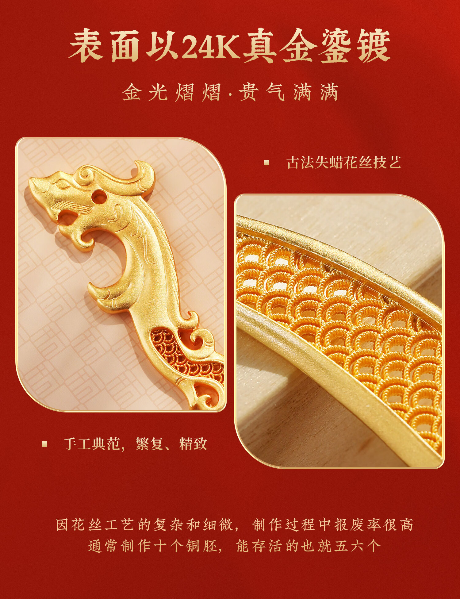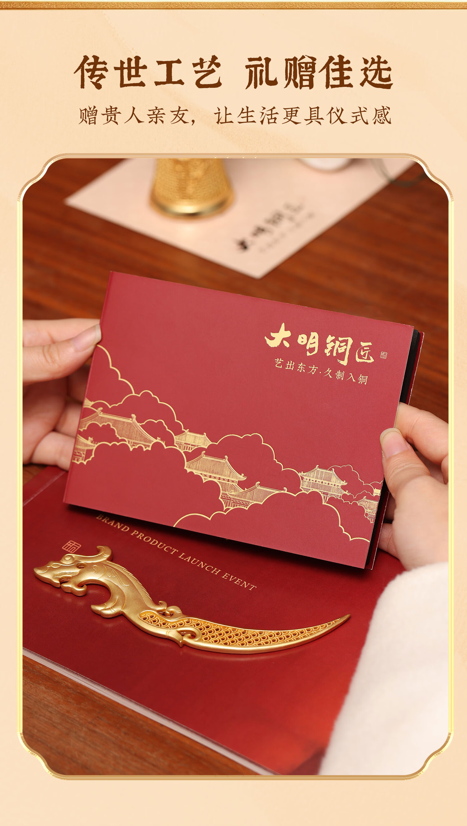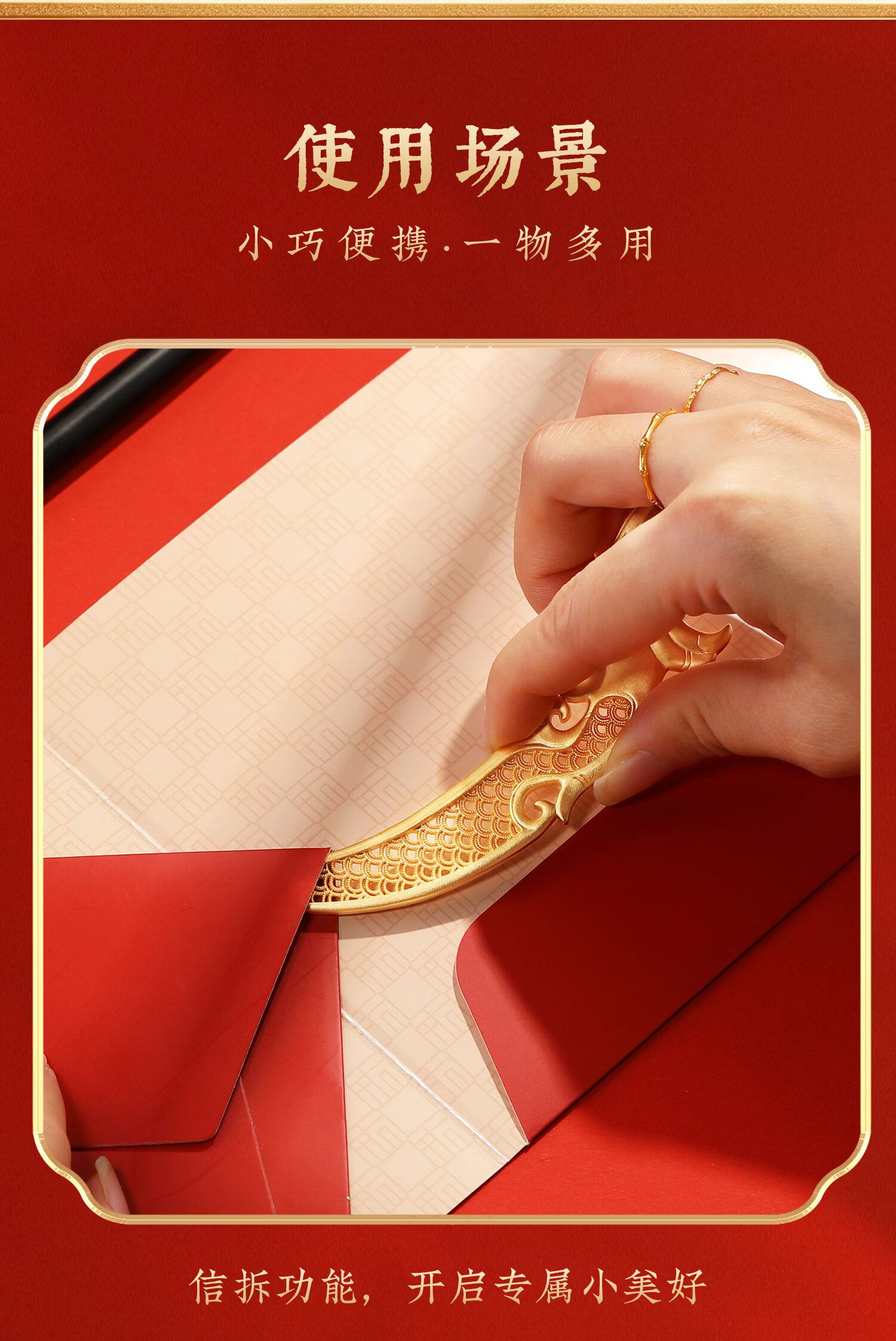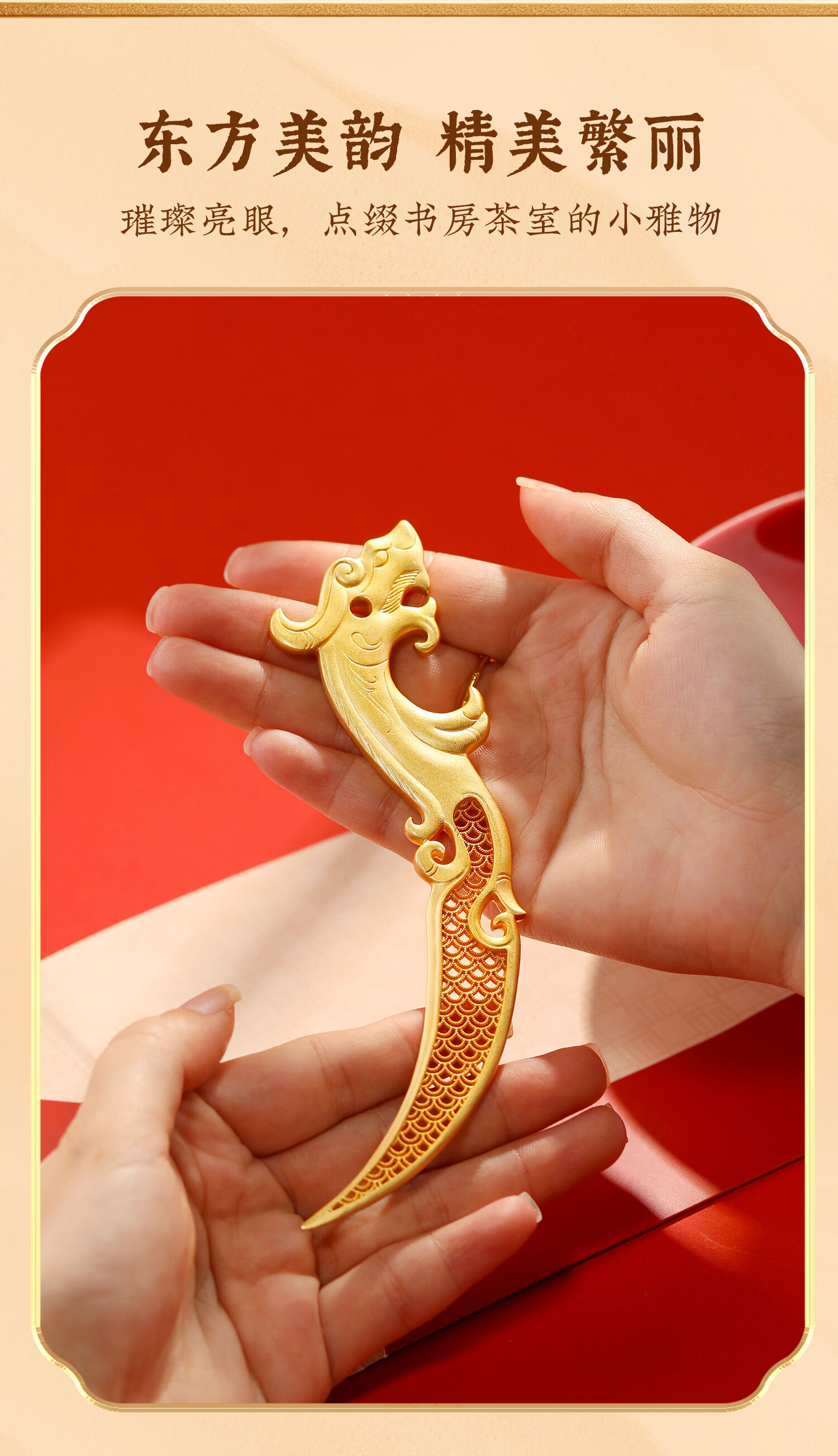 大明铜匠黄铜龙纹信拆摆件开瓶器花丝工艺品书房客厅创意装饰乔迁开业礼物 花丝龙纹信拆高15宽4.7厚0.4cm