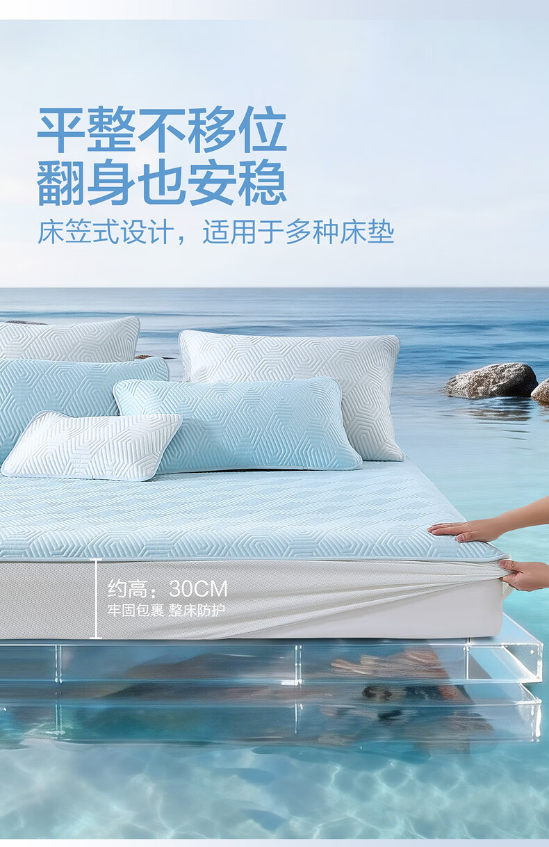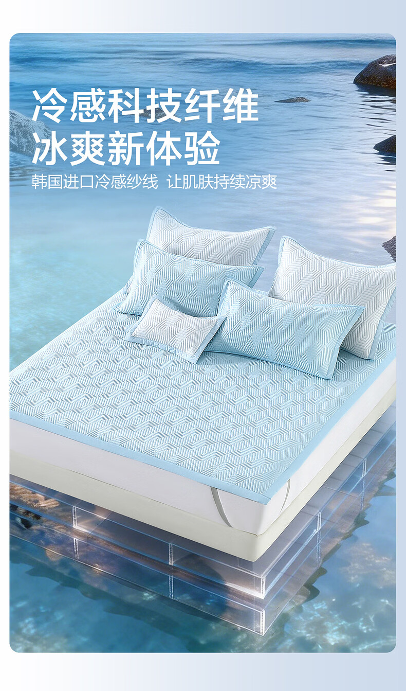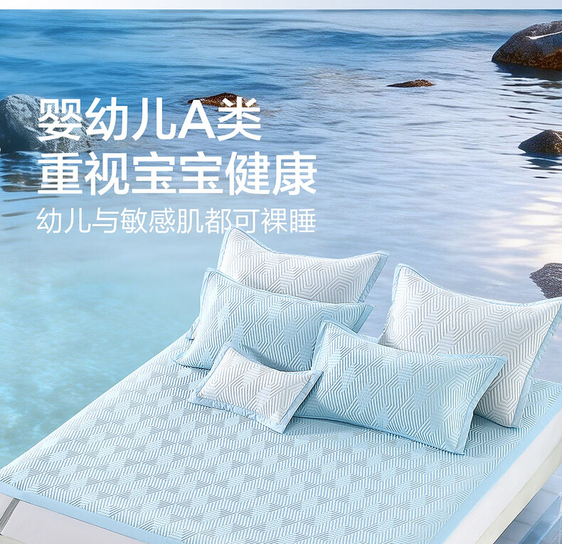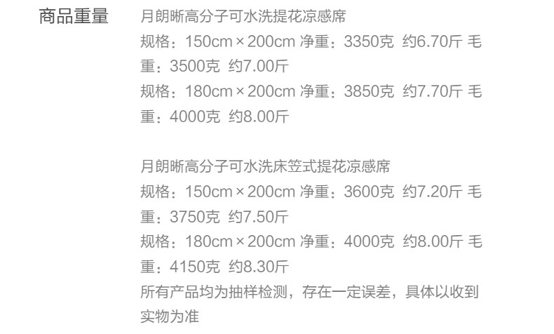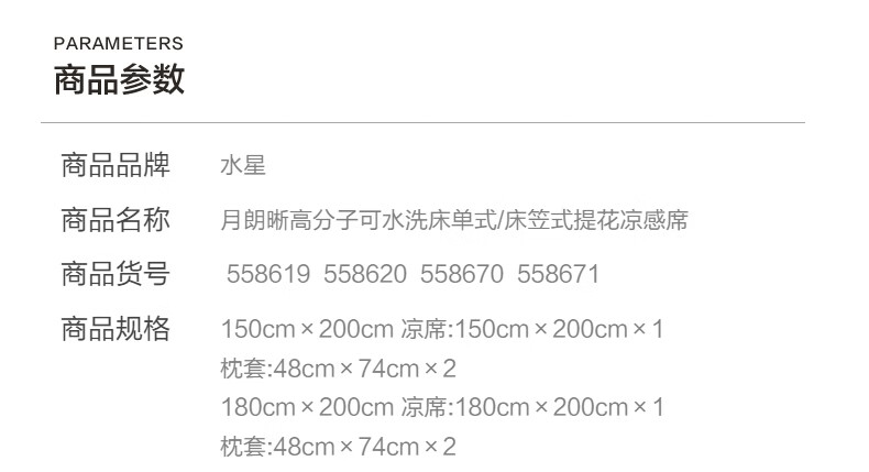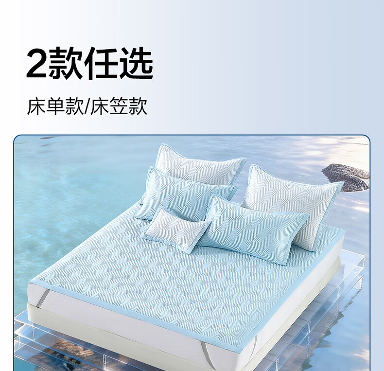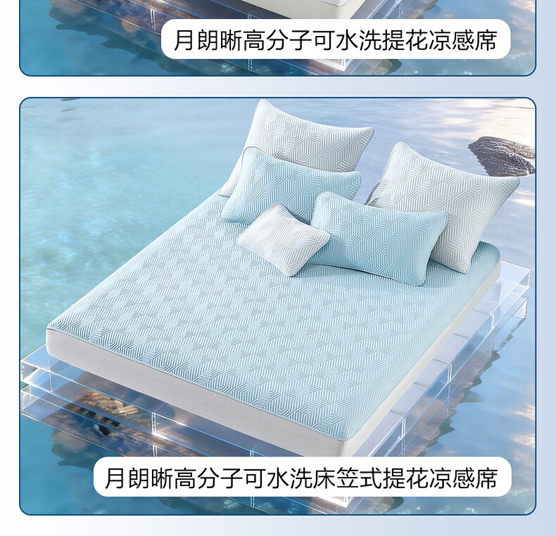 水星家纺月朗晰高分子可水洗床单式/床笠式提花凉感席 月朗晰高分子可水洗提花凉感席 150cm*200cm