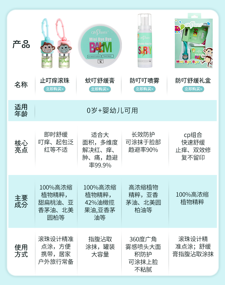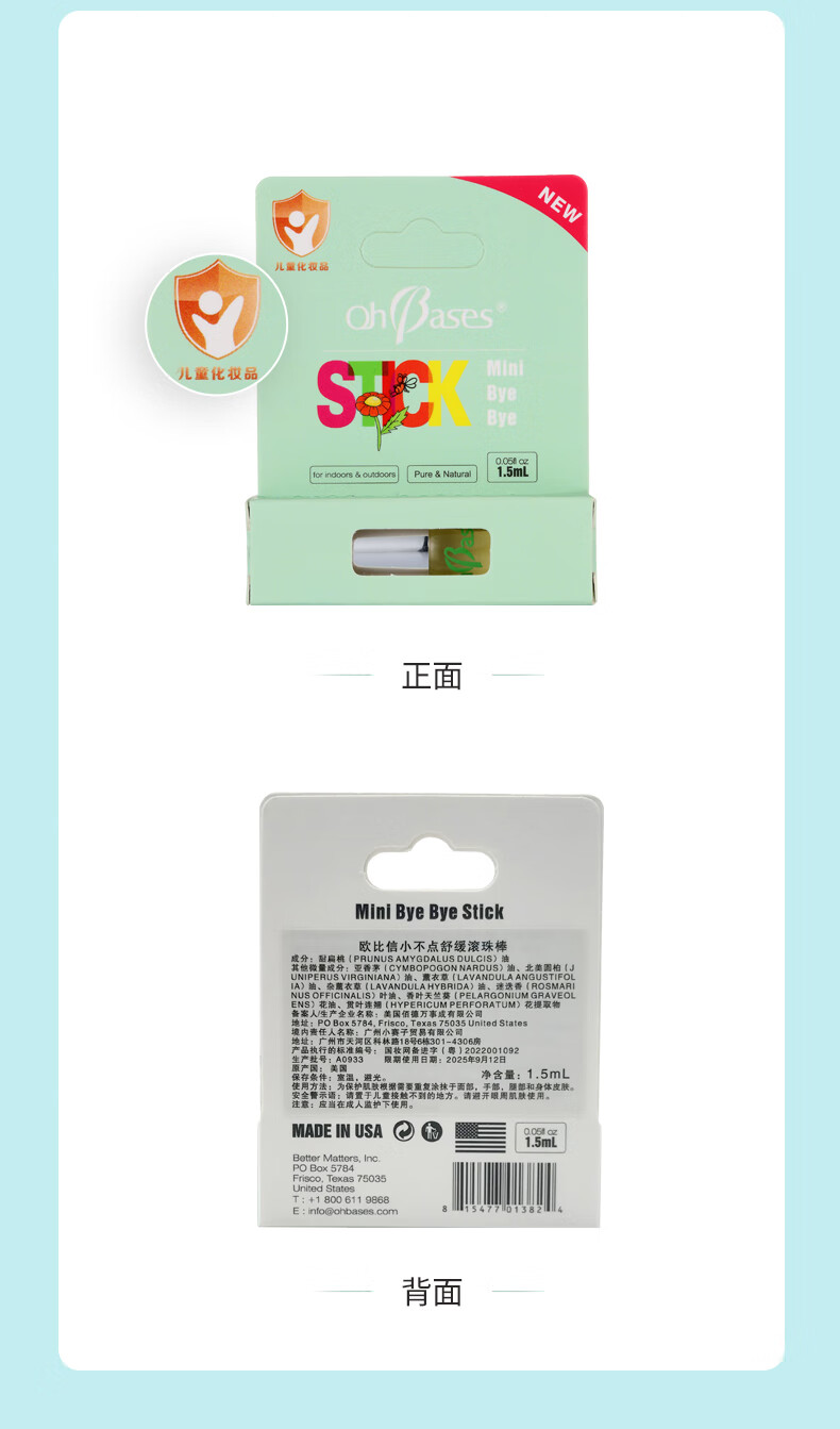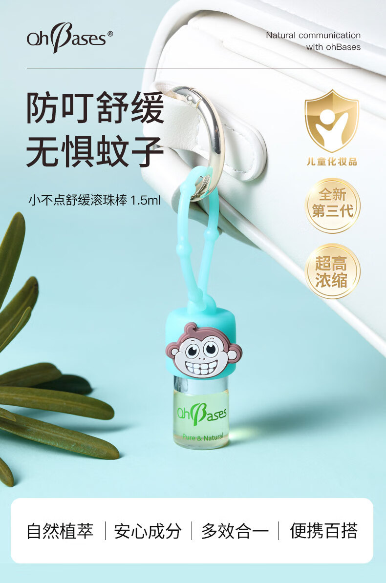 欧比信(OhBases)止痒滚珠小绿珠 蚊虫叮咬舒缓蚊子叮包走珠旅行出游婴儿可用1.5ml