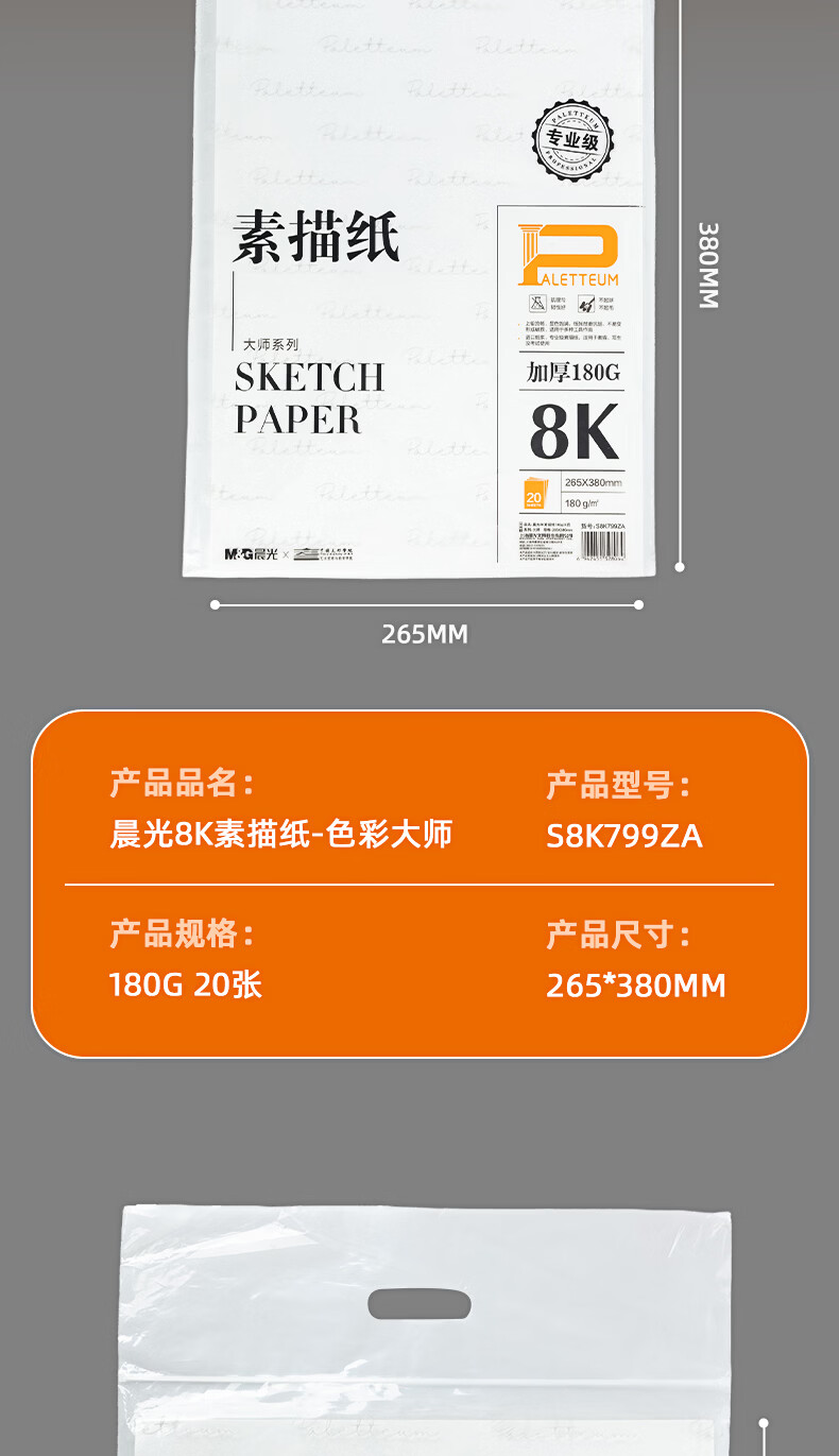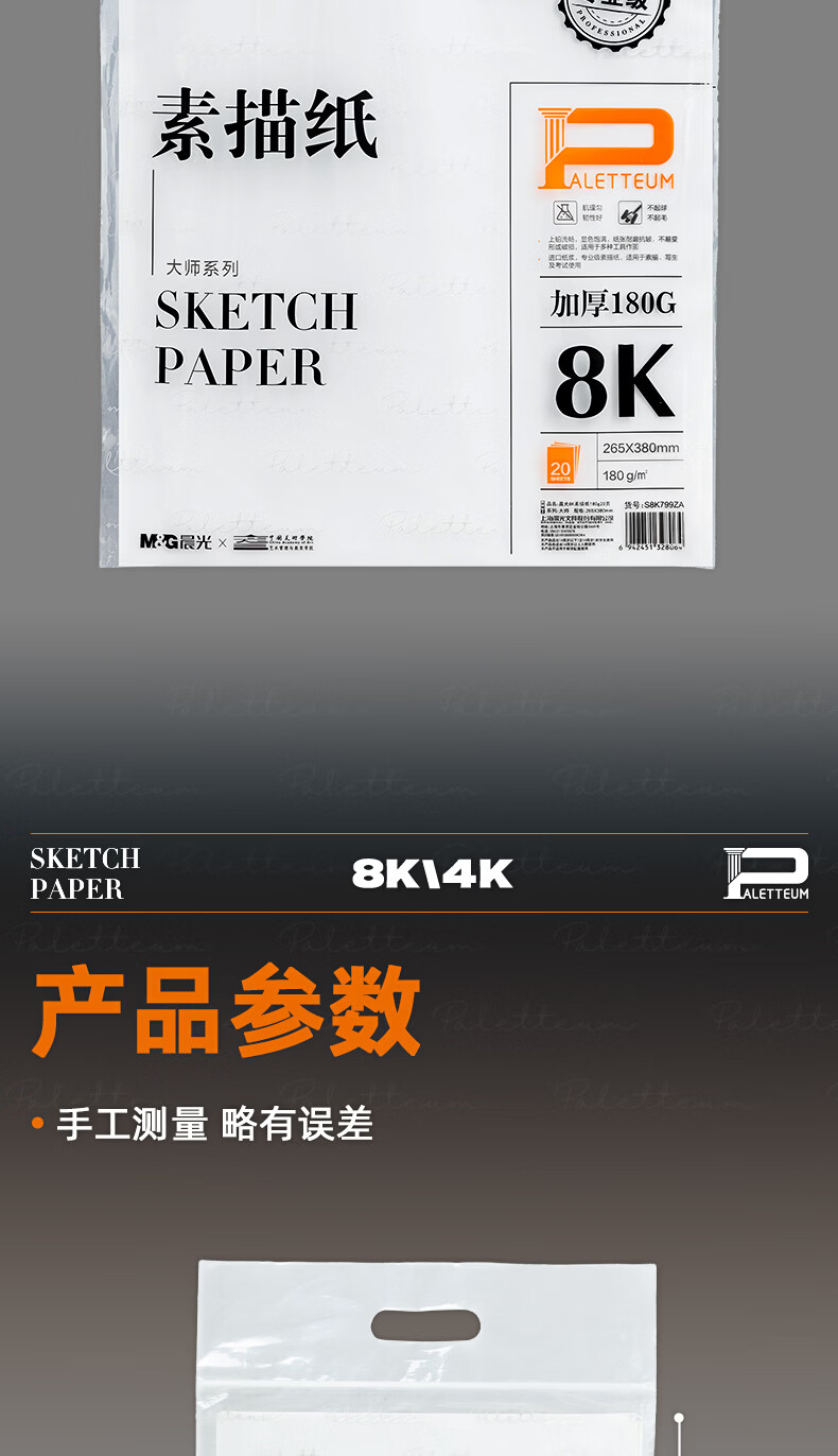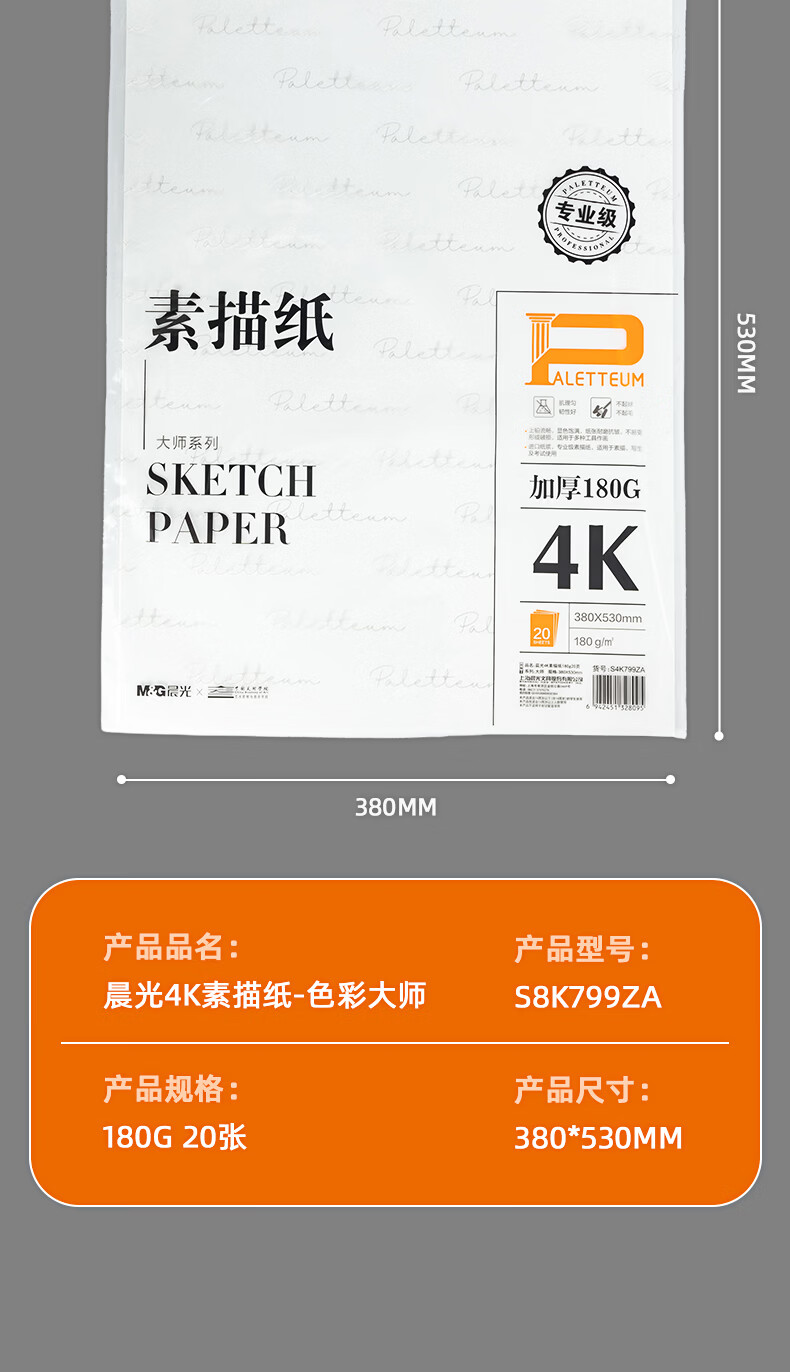 晨光(M&G)文具8K/180g素描纸绘画纸 考试专业加厚美术写生临摹学生初学者速写铅画纸 大师美院联名 开学礼物