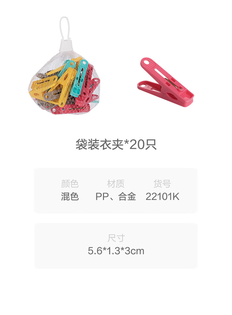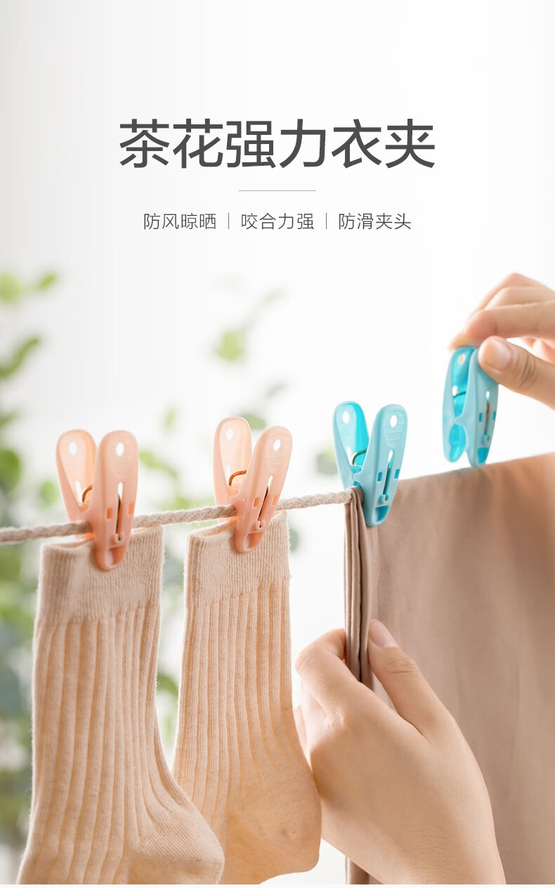 茶花夹子强力衣夹塑料夹晾衣架防风大号衣服被夹晒夹晾衣夹 袋装衣夹*40只