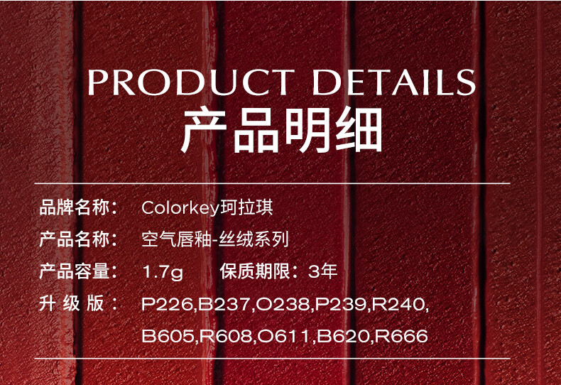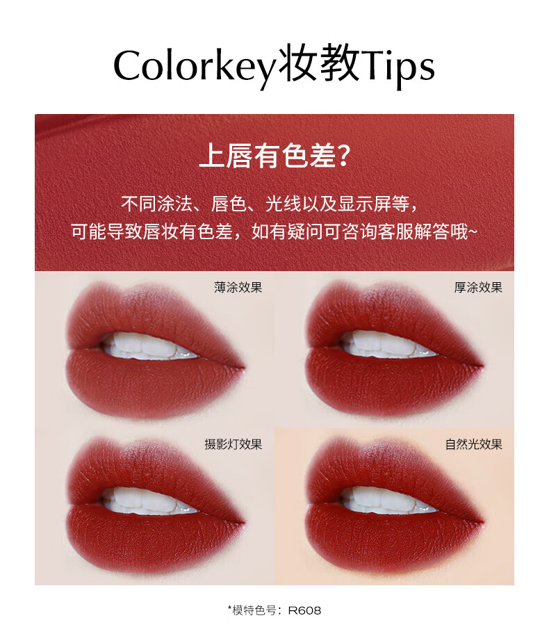 Color Key珂拉琪空气唇釉唇泥丝绒雾面哑光口红女送女友新年礼物R608