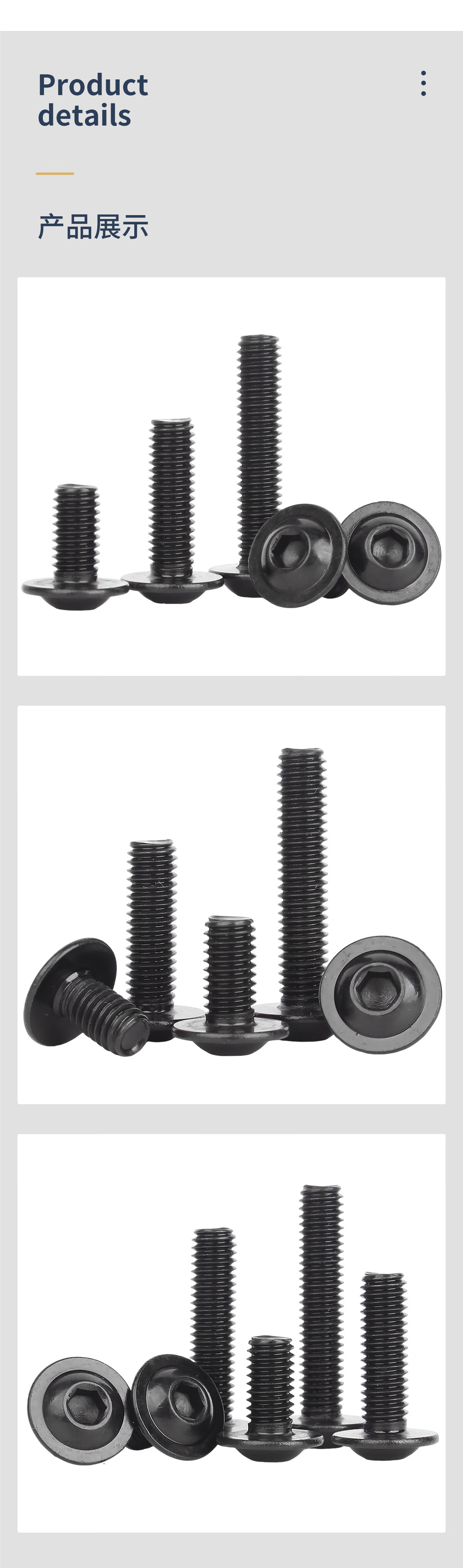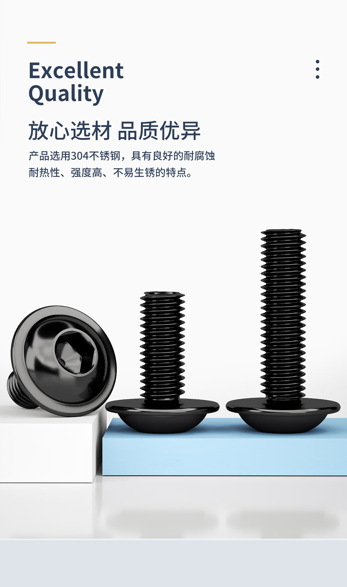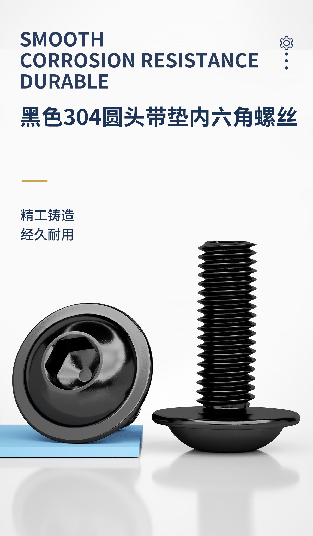 固万基(GUWANJI)304不锈钢黑色圆头内六角带垫螺丝GB70.4法兰螺丝钉螺栓M3M4-M10 M3x4[200个]