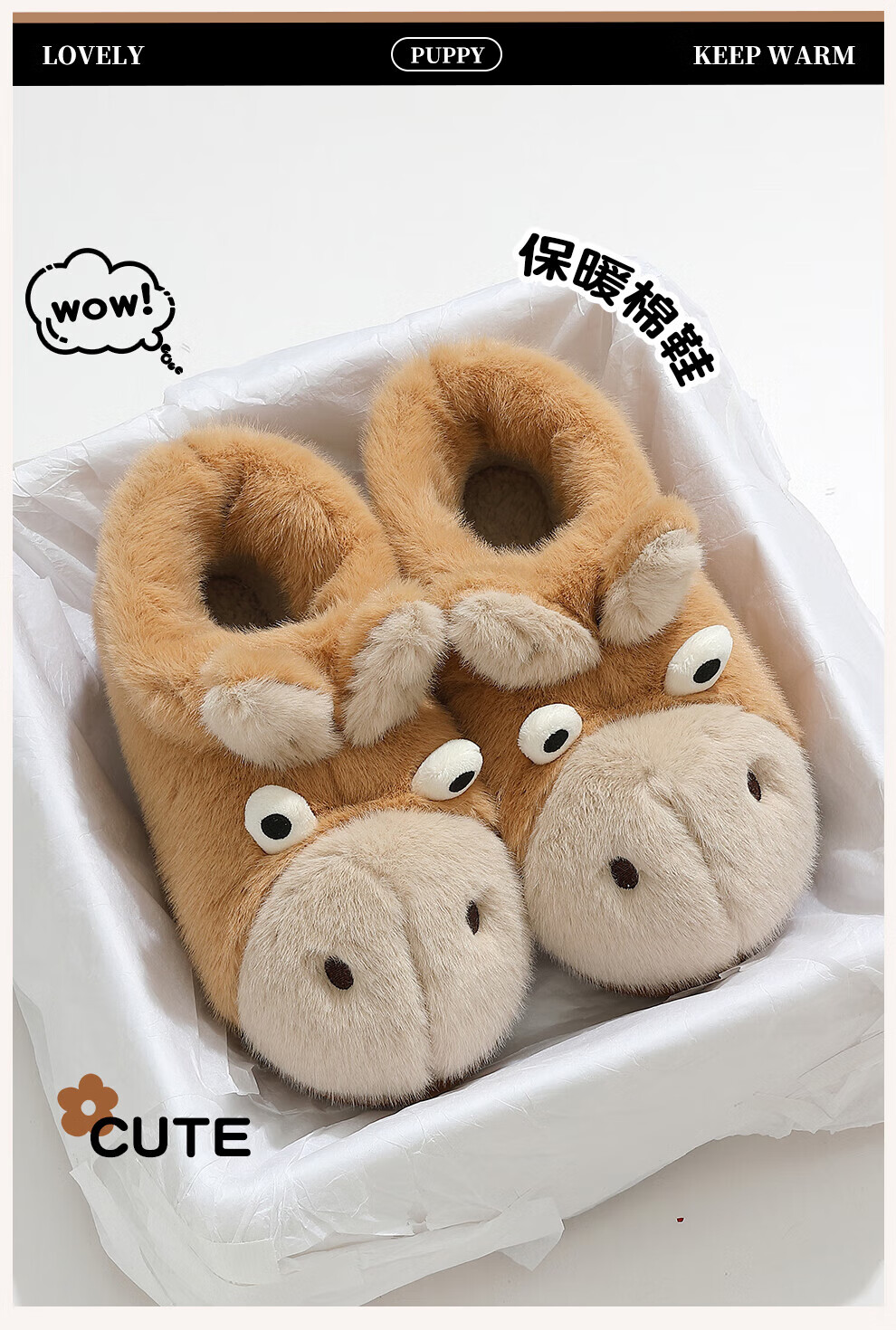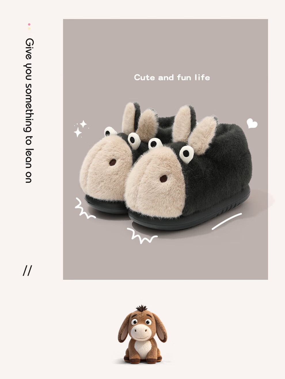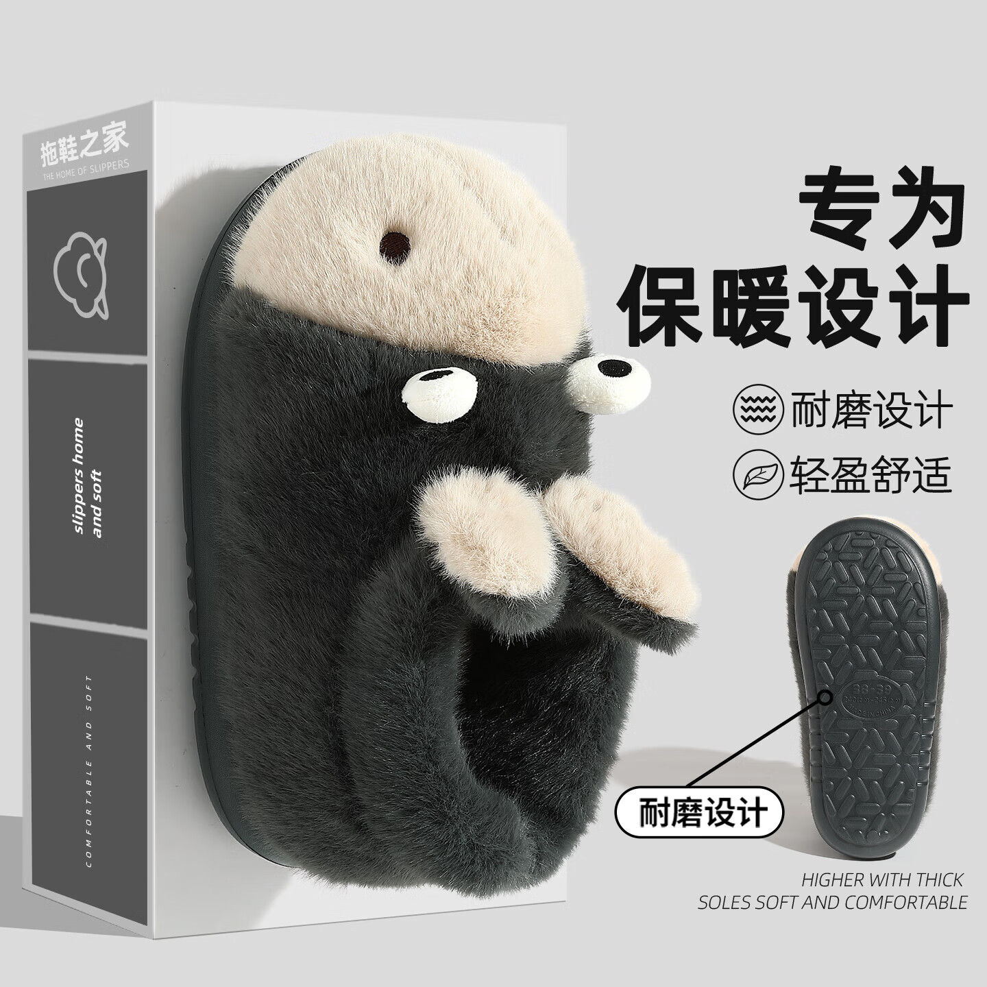 FZT憨憨驴棉拖鞋女款秋冬季2025新款家居室内厚底保暖加绒棉拖鞋男士 深灰 36-37 标准码