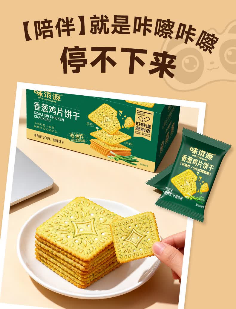 味滋源薄脆饼干香葱鸡片饼干独立包装国货休闲零食 香葱鸡片饼干500g