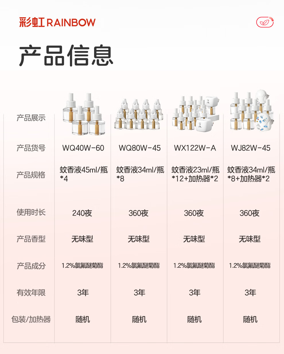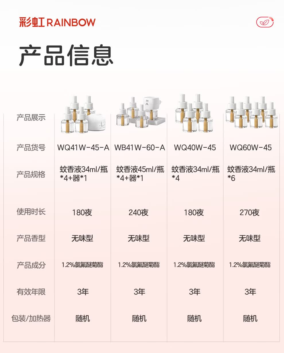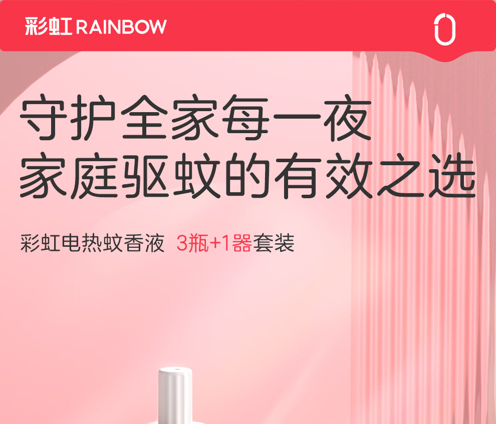 彩虹电热蚊香液驱蚊液(灭蚊液)无味电蚊香液家用加热器随机防蚊液 4瓶补充液(180晚)