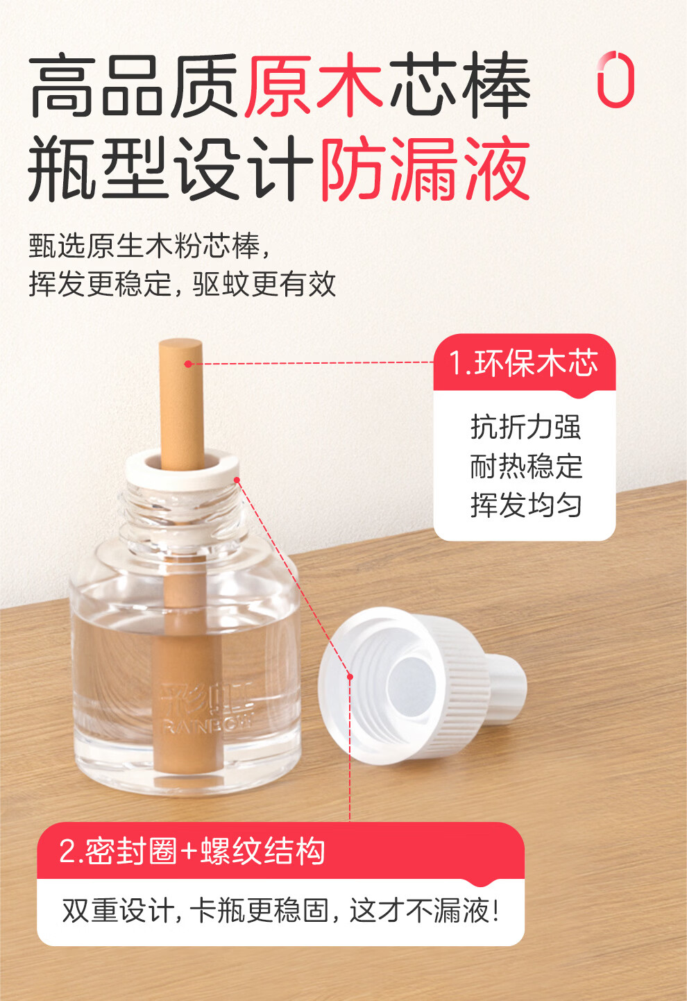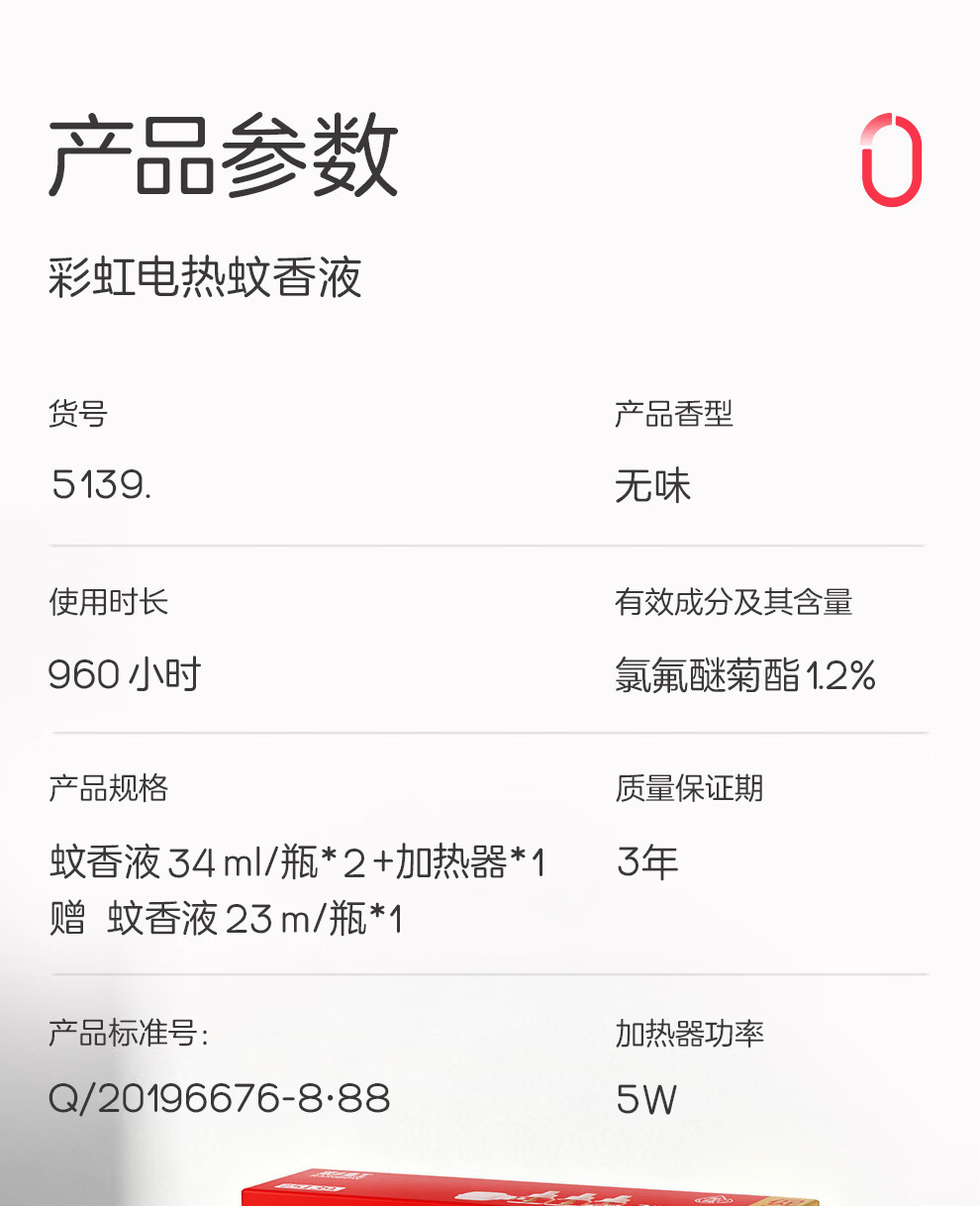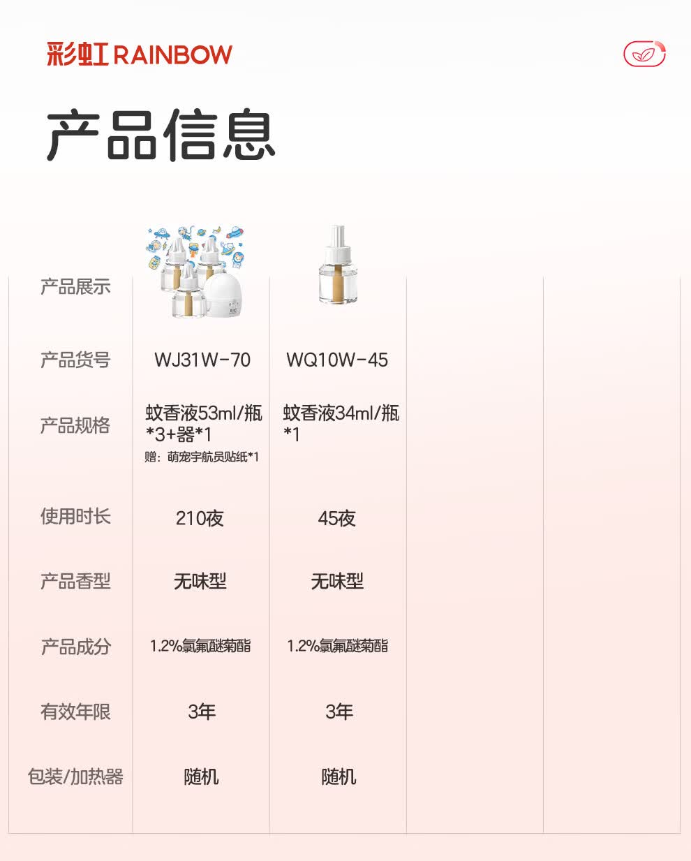 彩虹电热蚊香液驱蚊液(灭蚊液)无味电蚊香液家用加热器随机防蚊液 4瓶补充液(180晚)