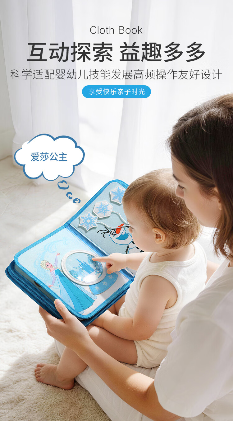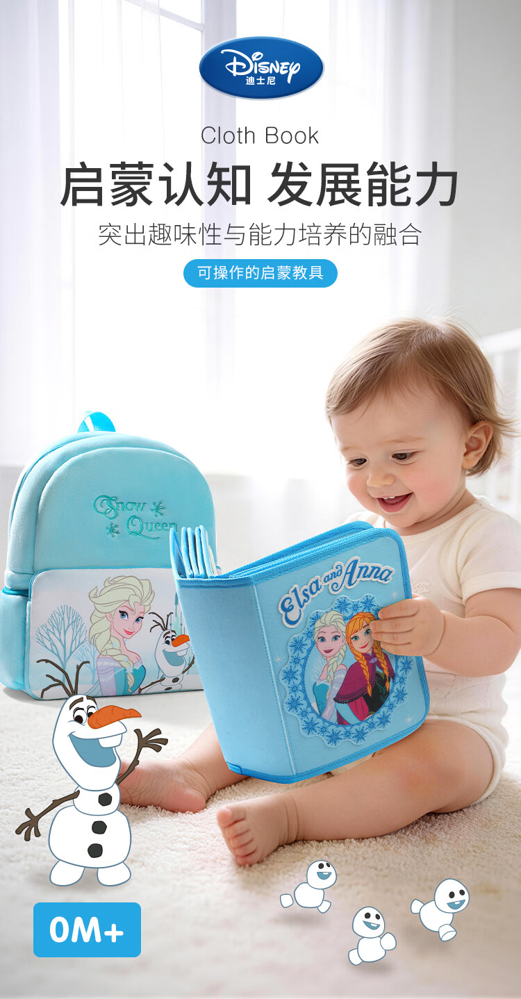 迪士尼蒙氏早教宝宝布书婴儿玩具土豪书新生儿礼盒周岁礼物冰雪奇缘 蓝