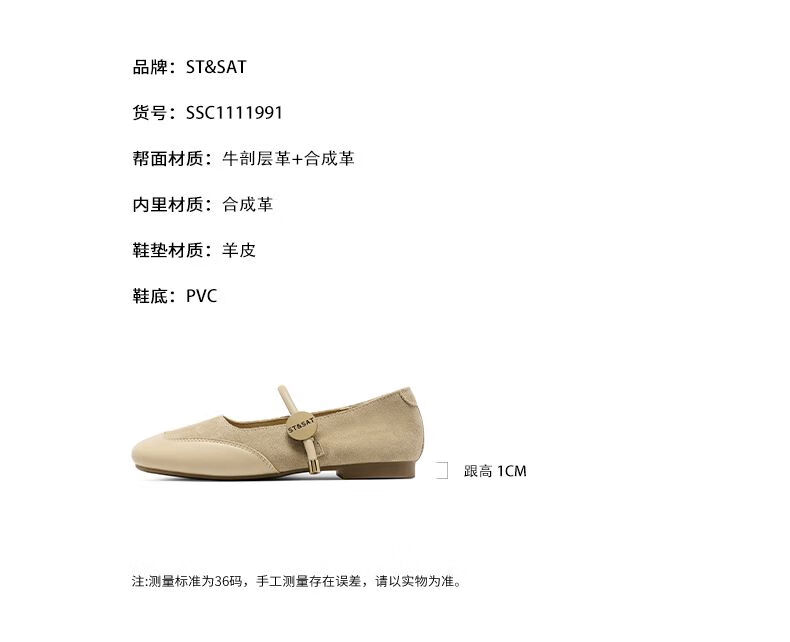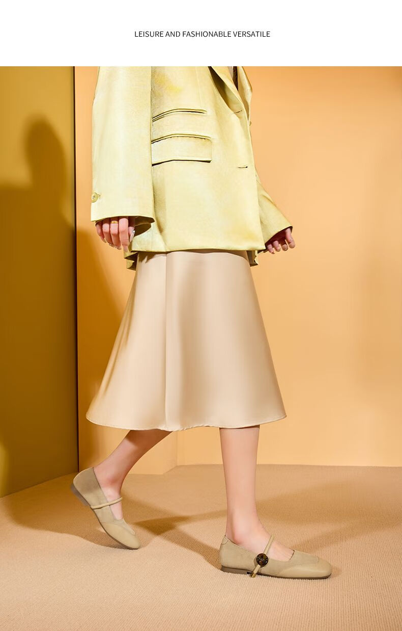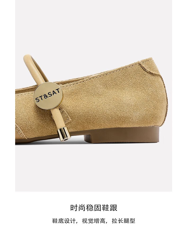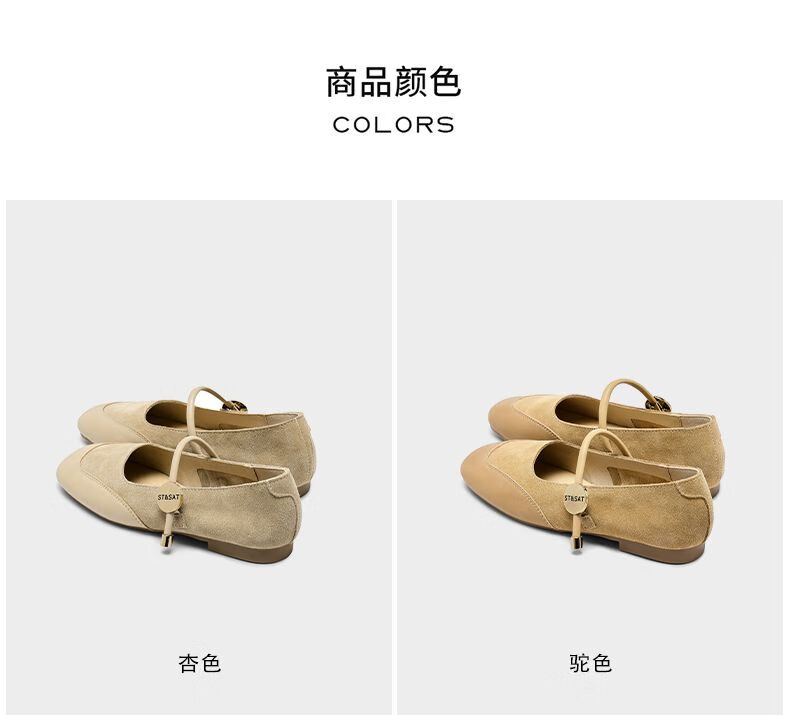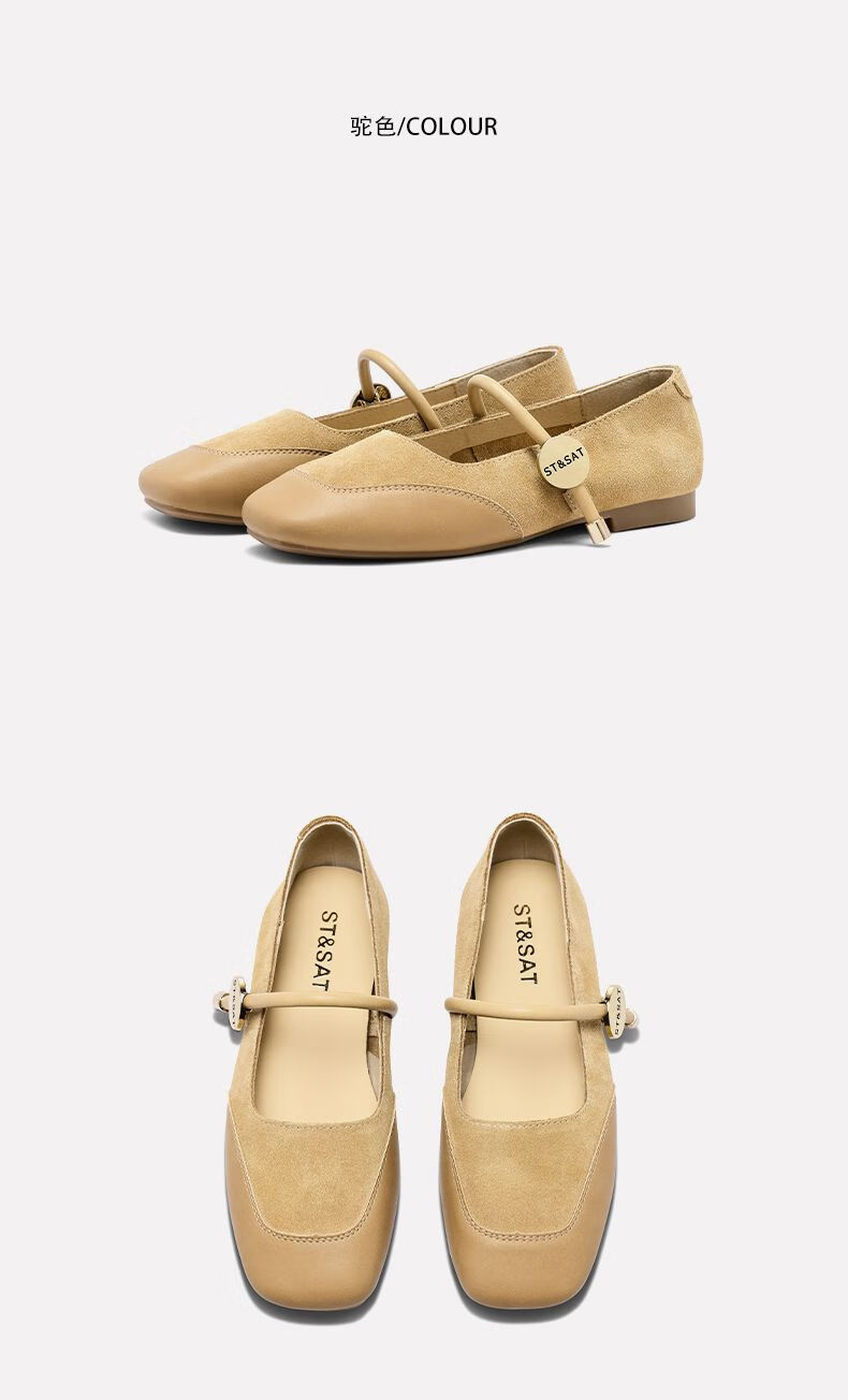 星期六法式复古方头玛丽珍鞋女2025秋季新款浅口平底舒适温柔单鞋 杏色 37
